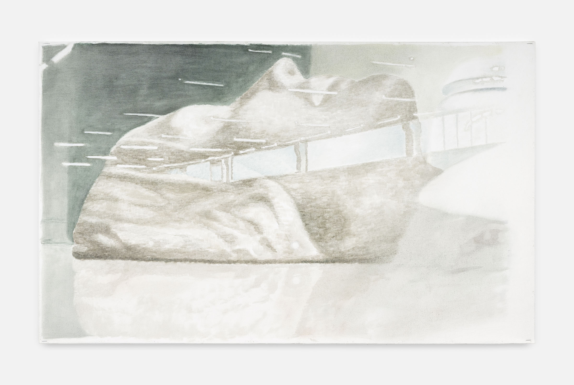 Oil paint that oozes out, gently, only visible if you are able to see. Patterns that eat their way through the membrane of the canvas, take it over, and disappear until they are all that remains. Memories that imprint themselves through the act of holding on to what has already been. It is like a photograph, a transfer one might say, suspended by the decision, as soon as the last stroke was made, embalmed in time from then on. It invites to linger.
