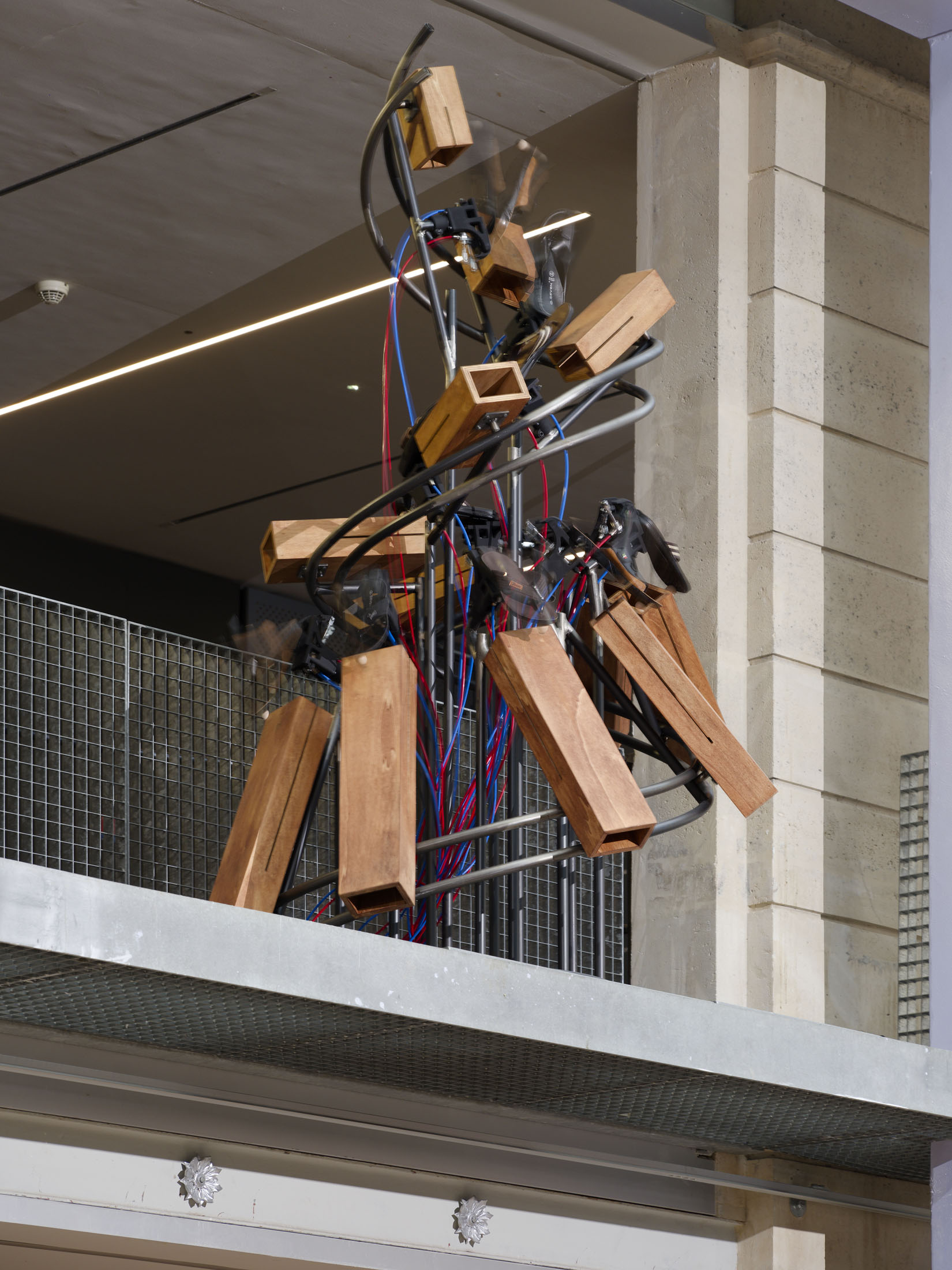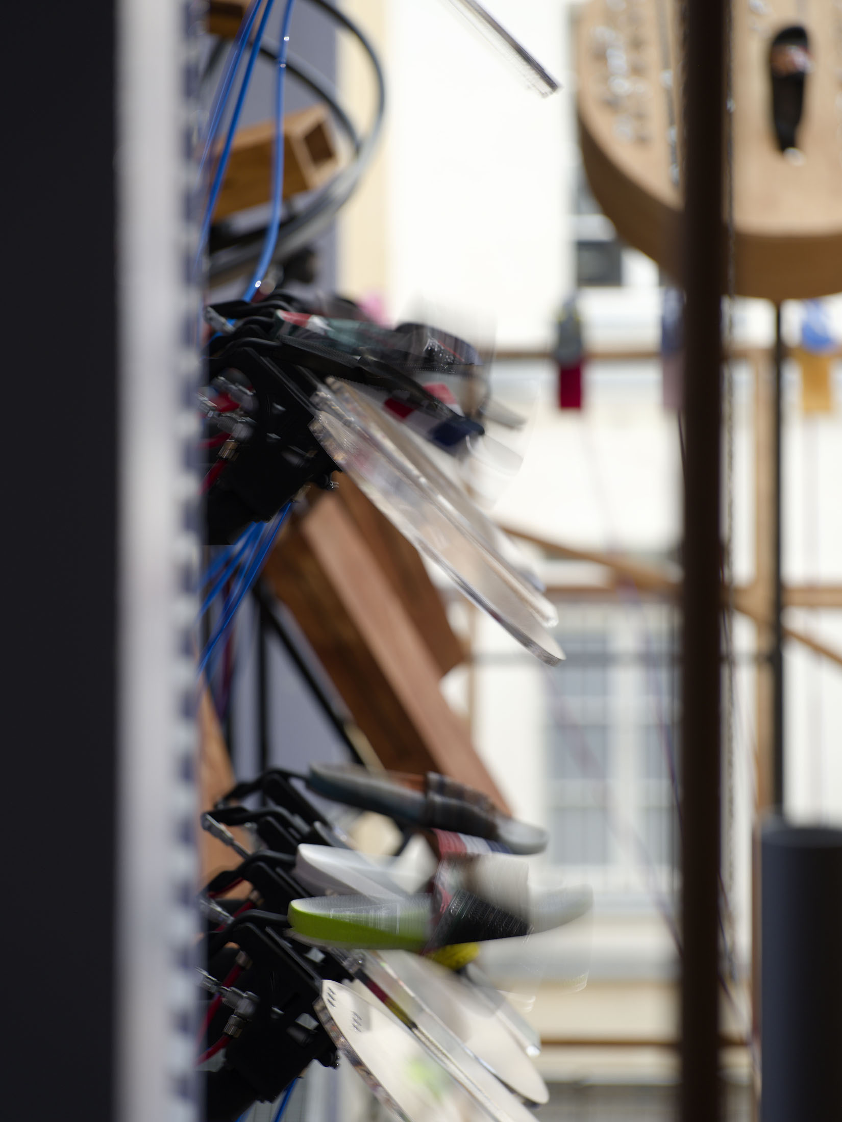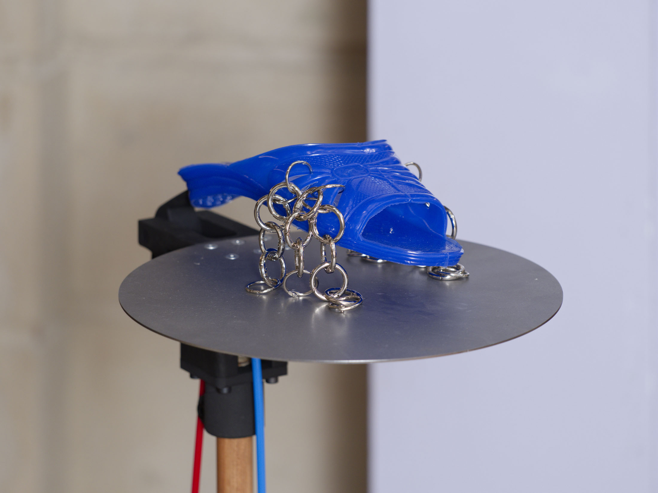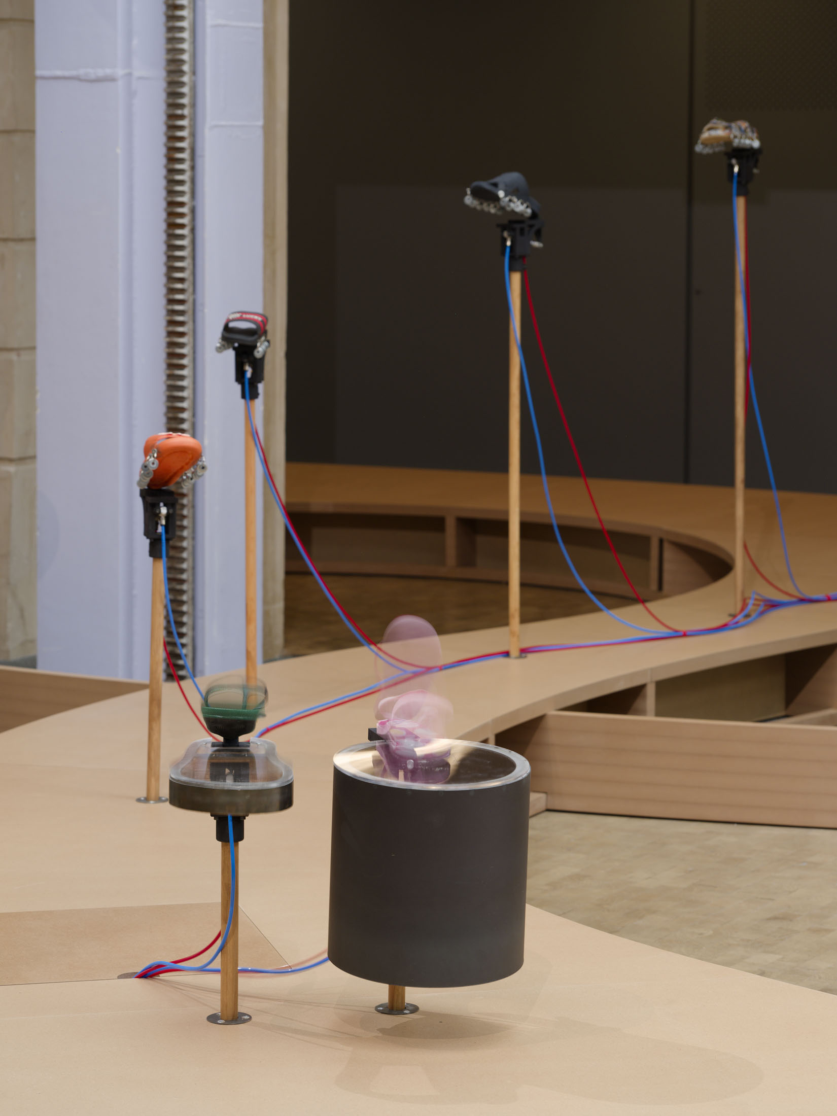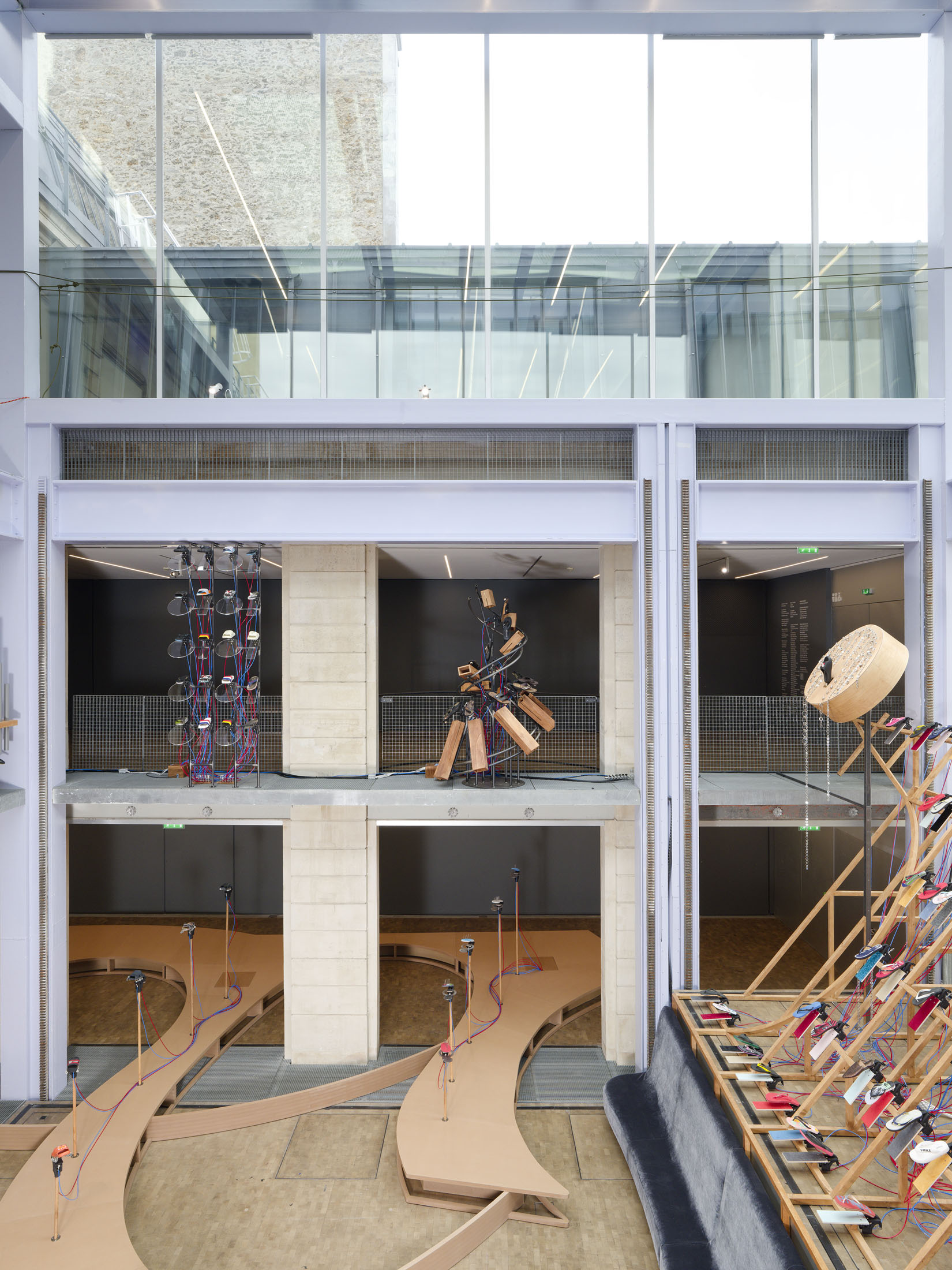 The work’s title plays o the expression “soul-crushing” with the materiality of the sandals’ soles, which both keep time and rhythmically sync up with what can become an overwhelming sonic power. First exhibited at the Fondazione Prada in Milan in 2024–25, Sole crushing has been completely readapted for Lafayette Anticipations with new instruments and a new musical composition. Meriem Bennani invites visitors to wander through the space, absorbing an experience of collective joy or uprising.