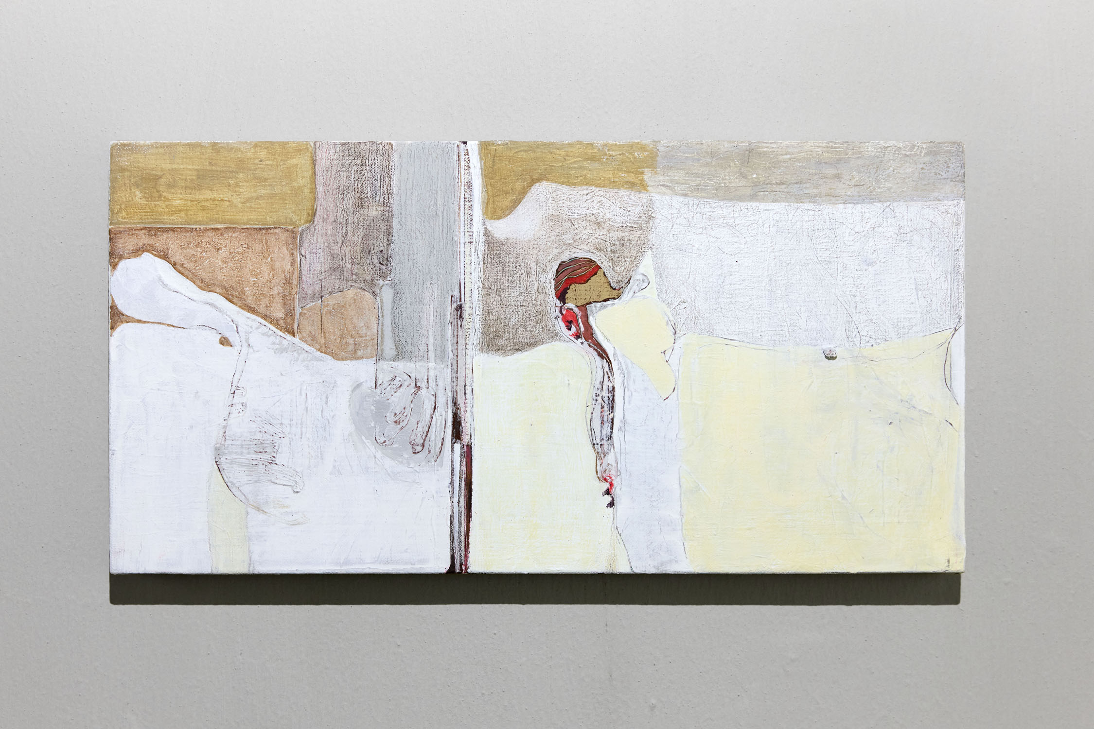 After approximately a decade of being solely dedicated to drawing, Michael has returned to painting, but he has abandoned oil paint (for now). He has been using the commercial paint Flashe and colored pencils on canvas and linen. These material choices are directly connected to time, patience, and sensitivity. Flashe typically has more of a graphic quality, but Michael has managed to manipulate it in an unorthodox manner, allowing him to speak to the tradition of oil painting. Additionally, the drying time gives him a newfound sense of freedom and flexibility. The colored pencils provide methods of treatment in ways that are traditionally and typically not available within the medium. These new paintings also project a level of passion that I often find to be missing in the contemporary discourse; despite, at times, seeming to have a somewhat measured mood or a cerebral centeredness, these pictures hold a lot of love within them. They convey a reverence for the past, a recording of the present, and a foreshadowing of the future.