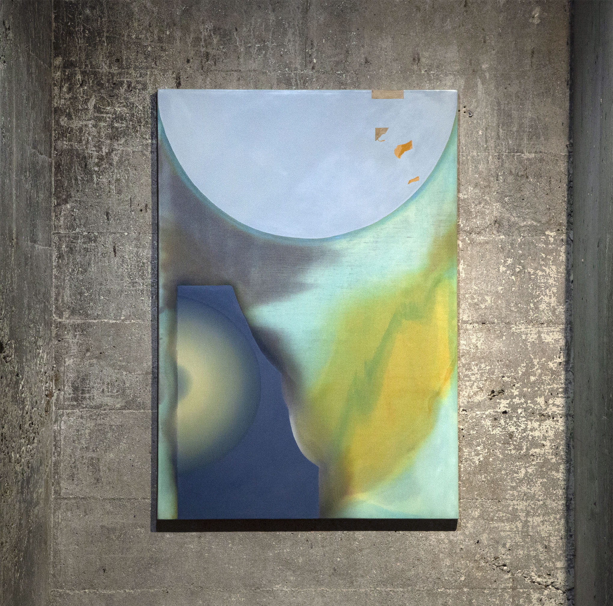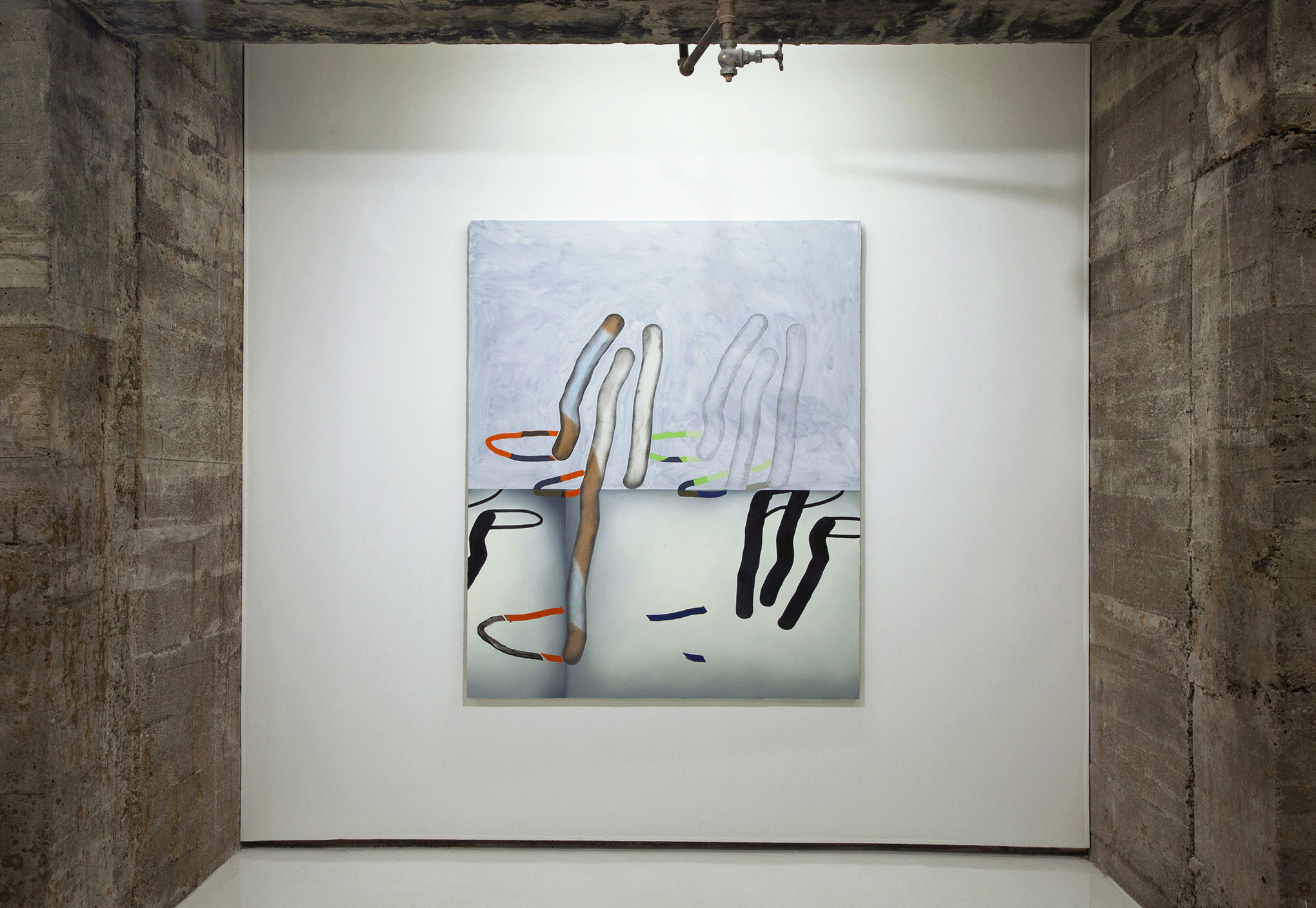 The title of Abramowitz’s show is taken from Kubrick’s 1964 film, Dr. Strangelove, or How I Learned to Stop Worrying and Love the Bomb, a dark comedy that satirizes the nuclear bomb anxieties of the Cold War and the absurdity and paradox inherent in the concept of “mutually assured destruction.” Abramowitz’s new, abstract oil paintings are, for her, a response to the current political turmoil with similar emotional bifurcation. By employing a variety of painters’ spatial conventions and uneasy figure-ground relationships, they reflect the cognitive load of living in multiple simultaneous and conflicting realities, presenting a new landscape.