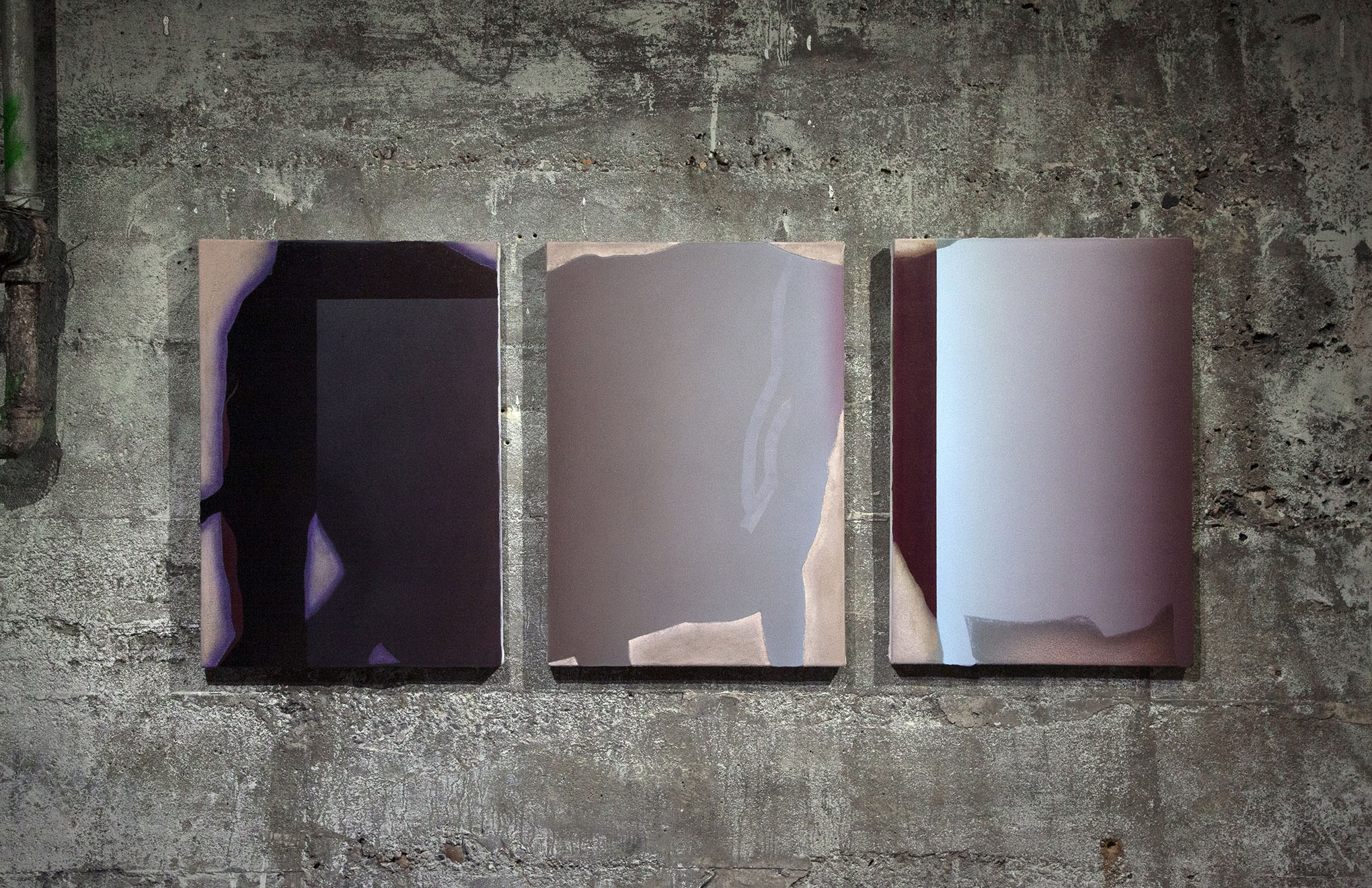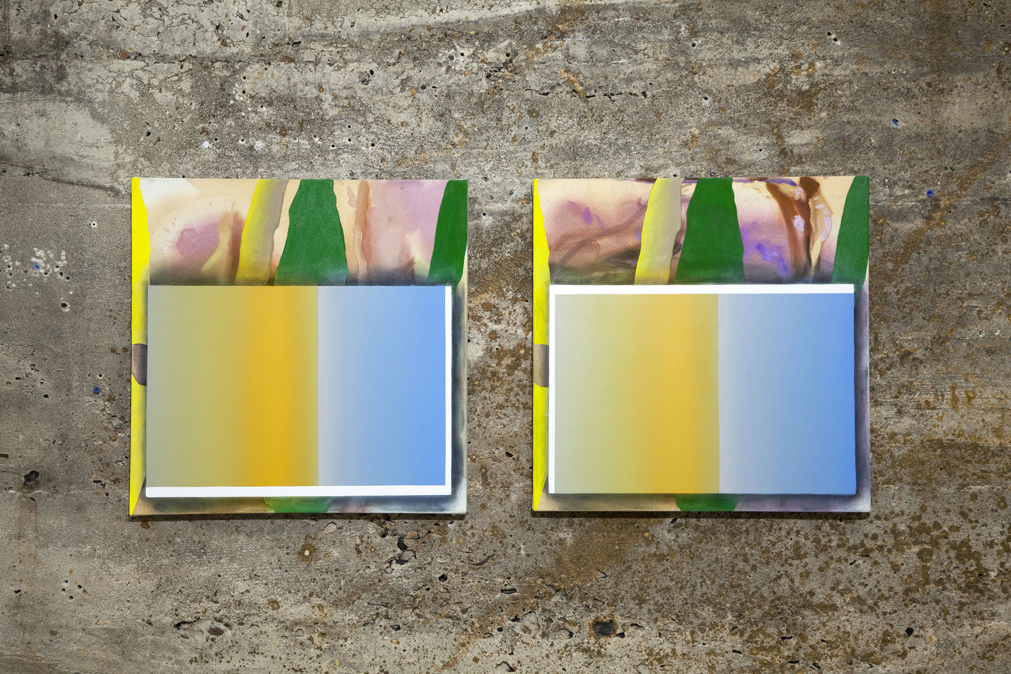 Abramowitz’s paintings for this exhibition address the figure-ground relationship through her technique of priming, with gesso, different areas of each painting’s surface. This creates and accentuates the appearance of cut-outs of positive and negative space. Abramowitz uses traditional painting methods and hand painted trompe l’oeil treatments to highlight the interfaces between illusion and physicality thus linking concepts of reality and the self.