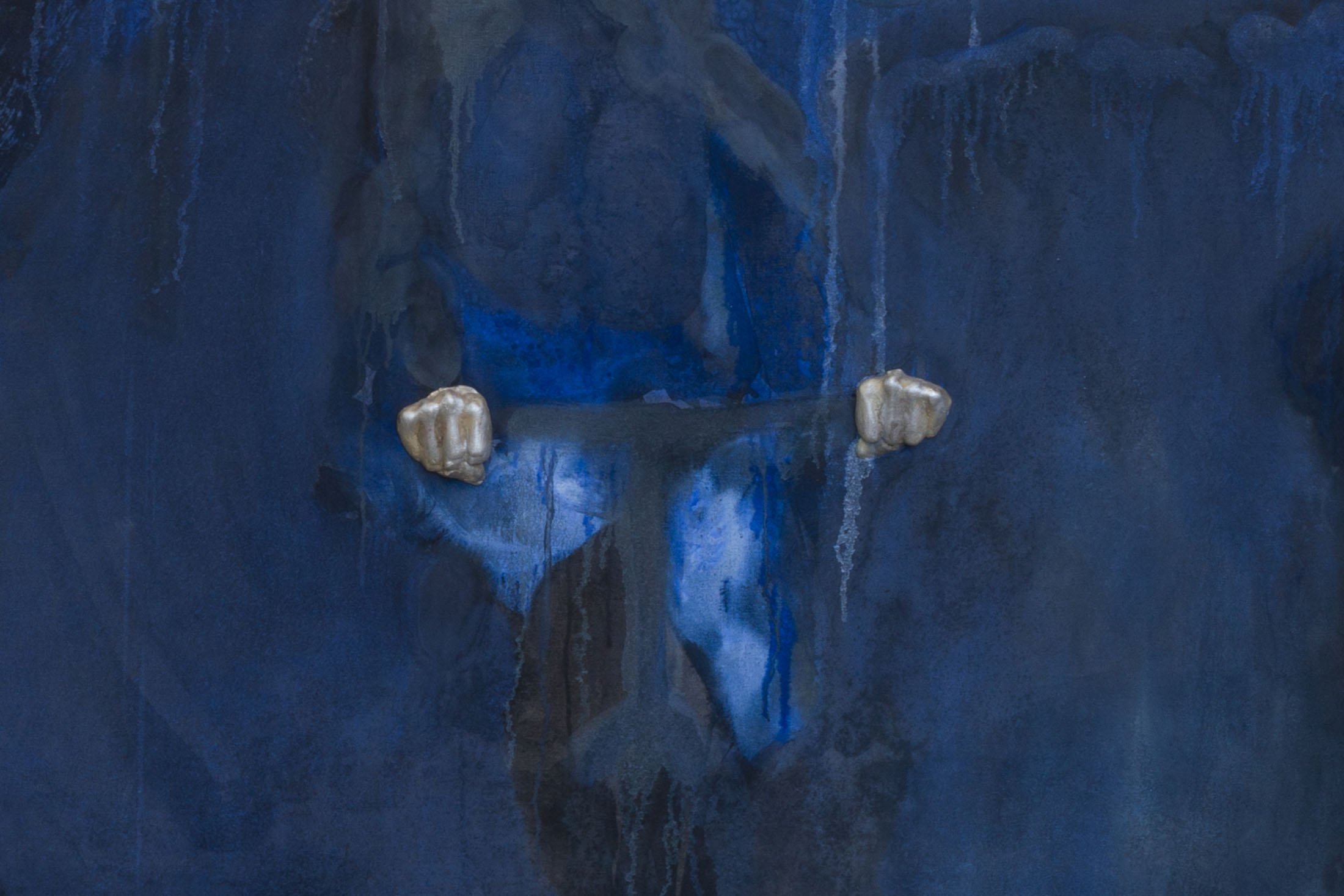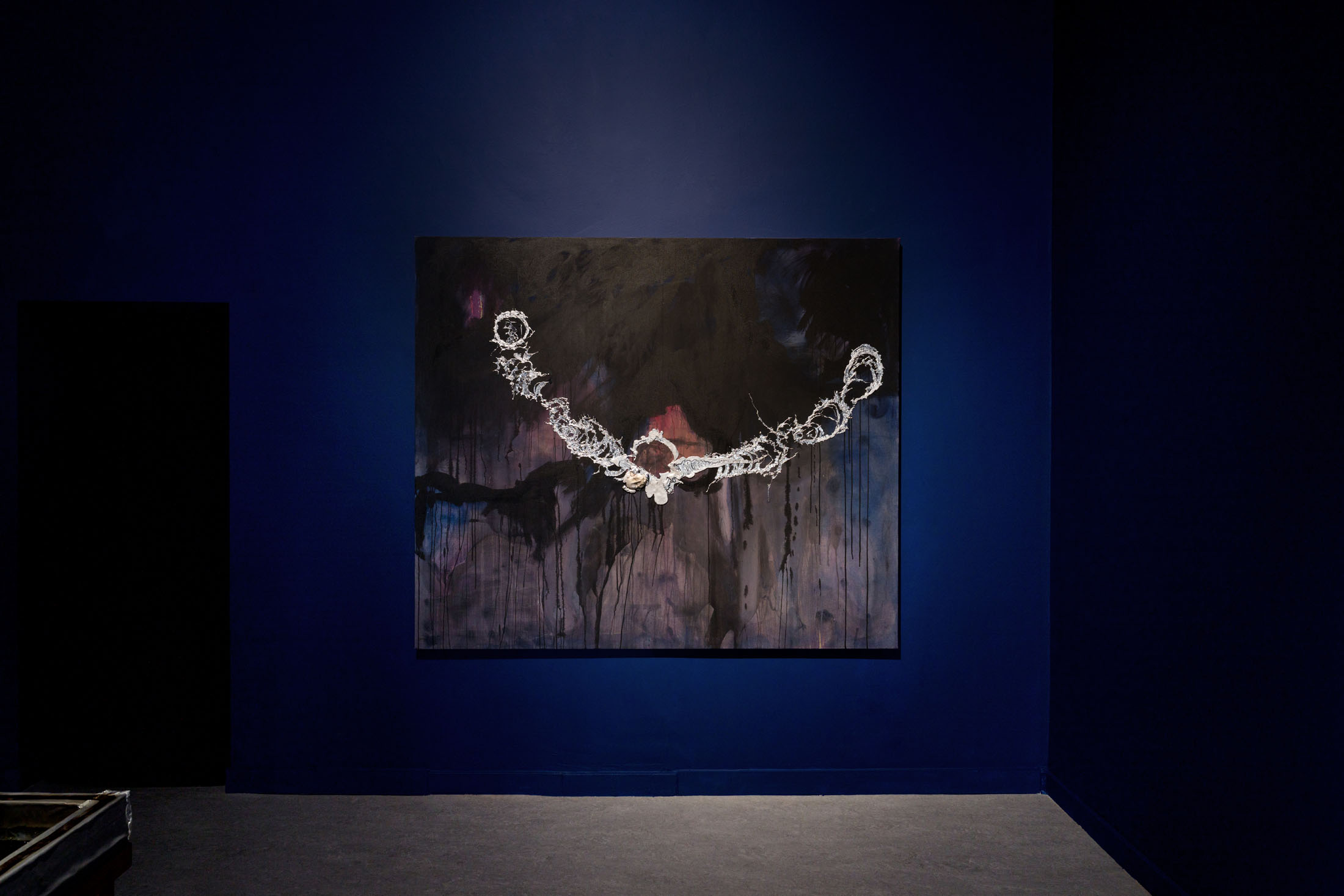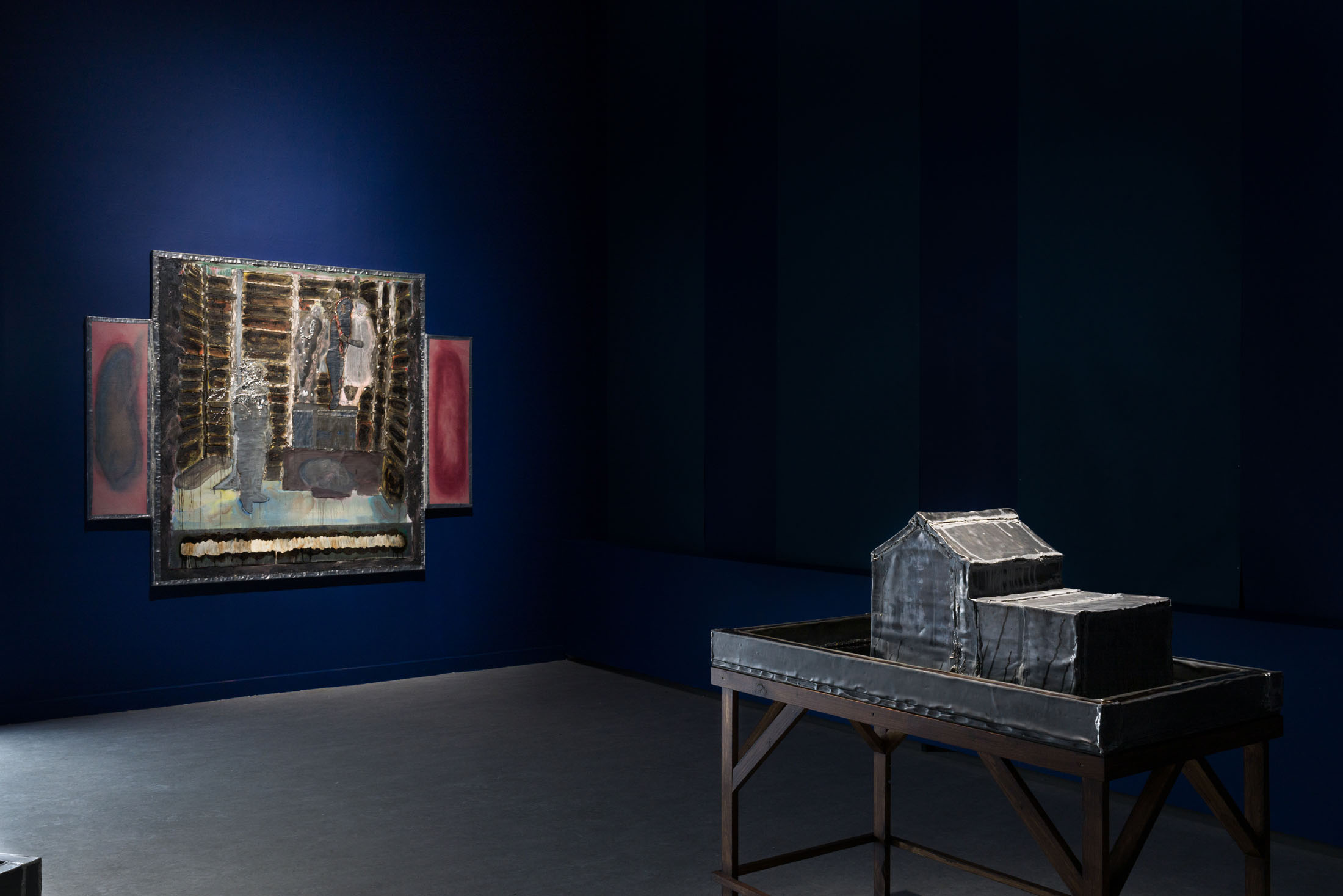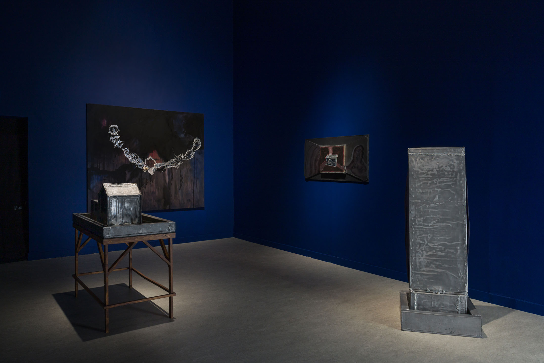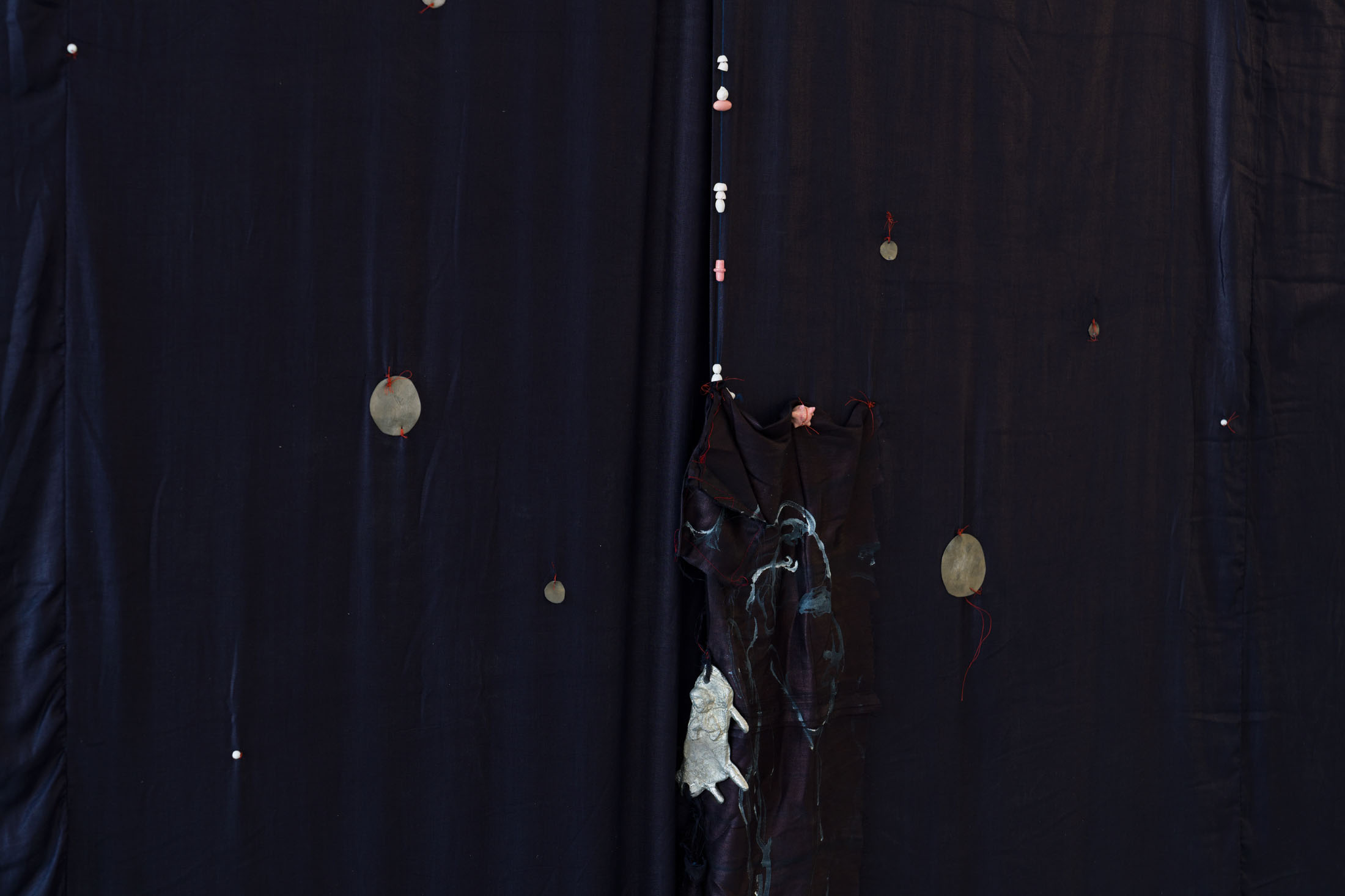 As the grandson of a Moroccan miner, Eddib explores the legacy of migration and labor in the region. He focuses on the invisible and intimate: the mystical, the domestic, and ritual. Taliswoman emphasizes the power of feminized spaces and protective practices that are often passed down by women. Eddib draws on Amazigh and Sahrawi ritual practices to imbue his art with talismanic properties, particularly through the use of traditional protective materials such as lead, tar, and indigo cloth. His work transcends mere documentation and invites you to navigate between presence and absence, between loss and what remains.