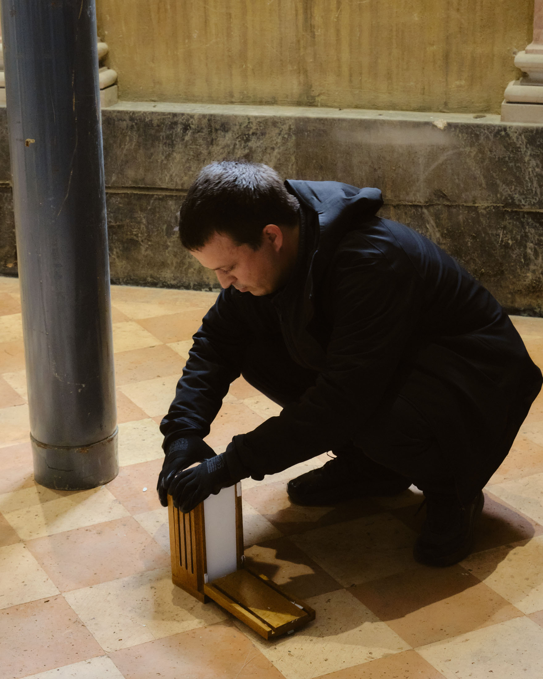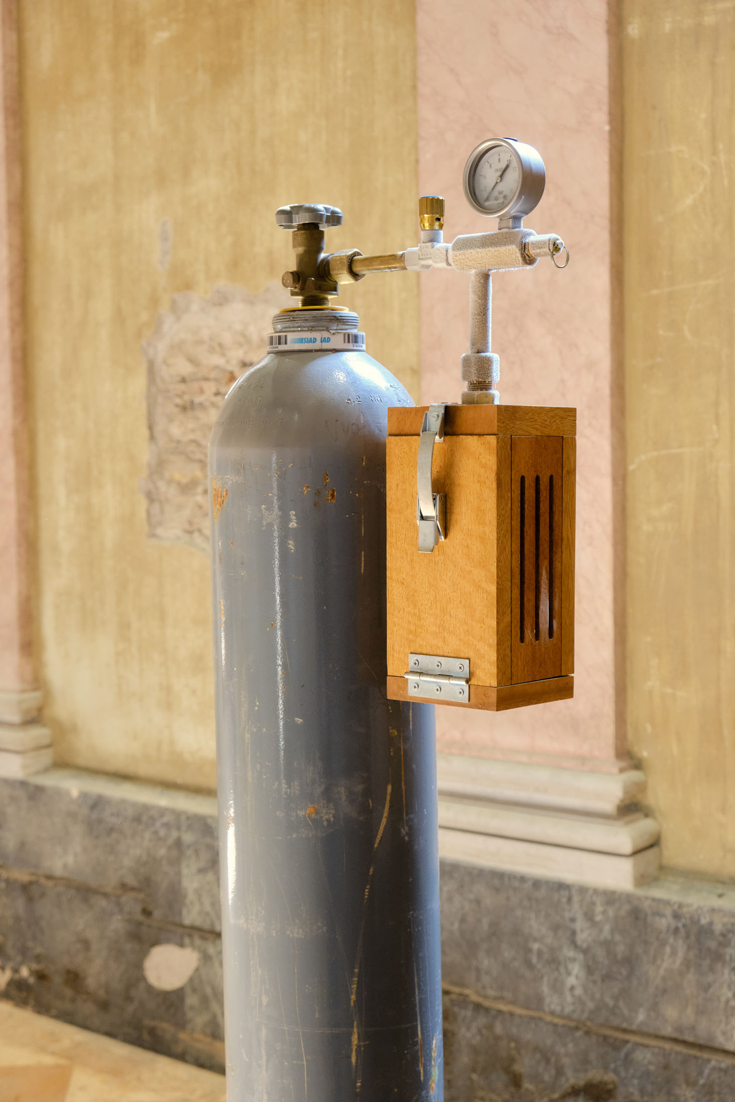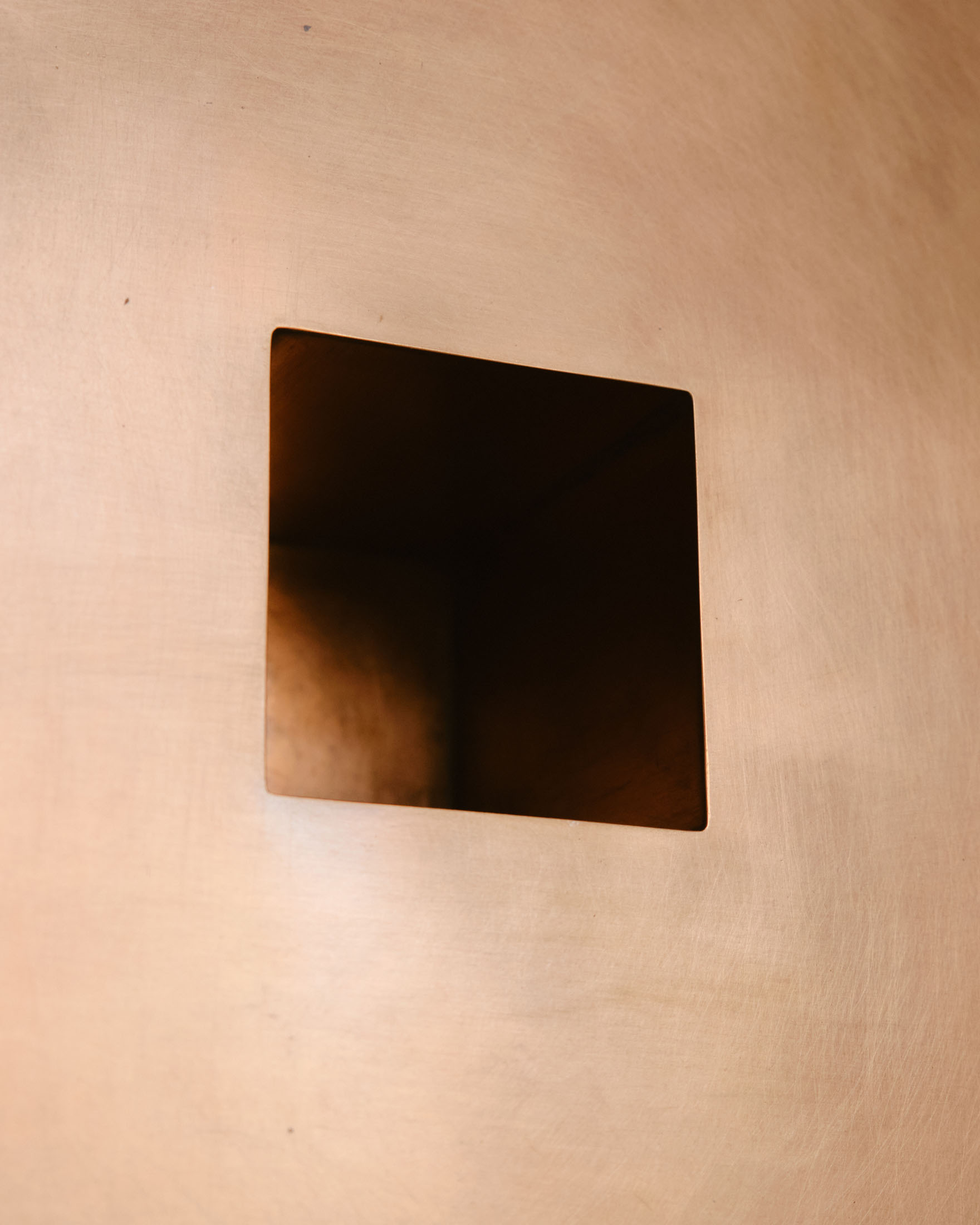Placed in a hollow at the top, around where the head of the goddess should emerge, this seems to evoke a transfiguration of the sacred into the profane, without renouncing the idea of transcendence of the original rituality. Once a day, the transfiguration shows the symbolic and evocative nature that goes beyond the object itself, leading to changes in the bronze itself over the course of the exhibition through oxidative effects.