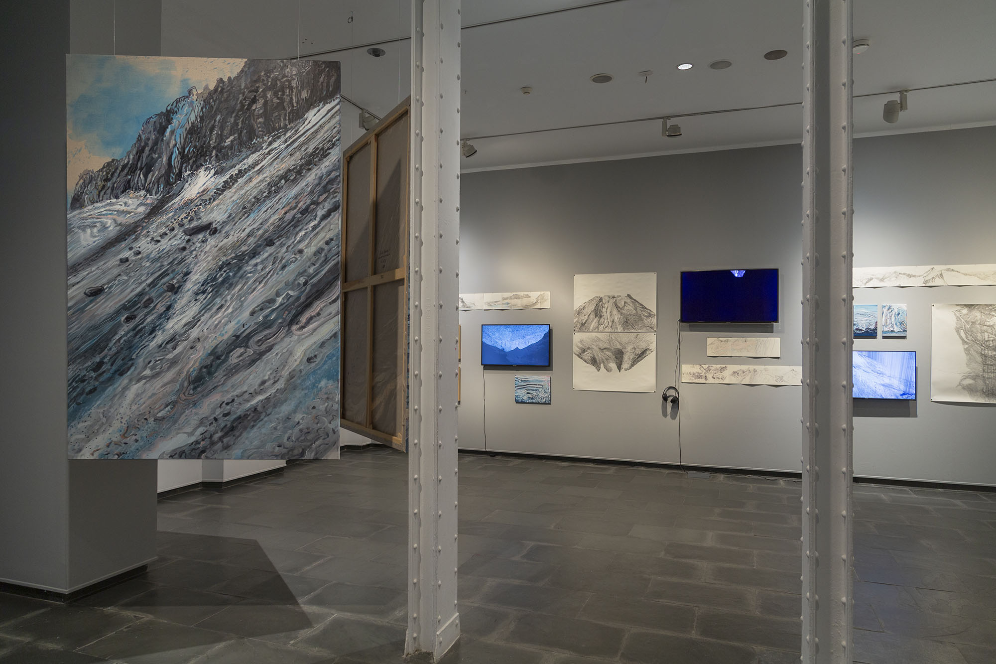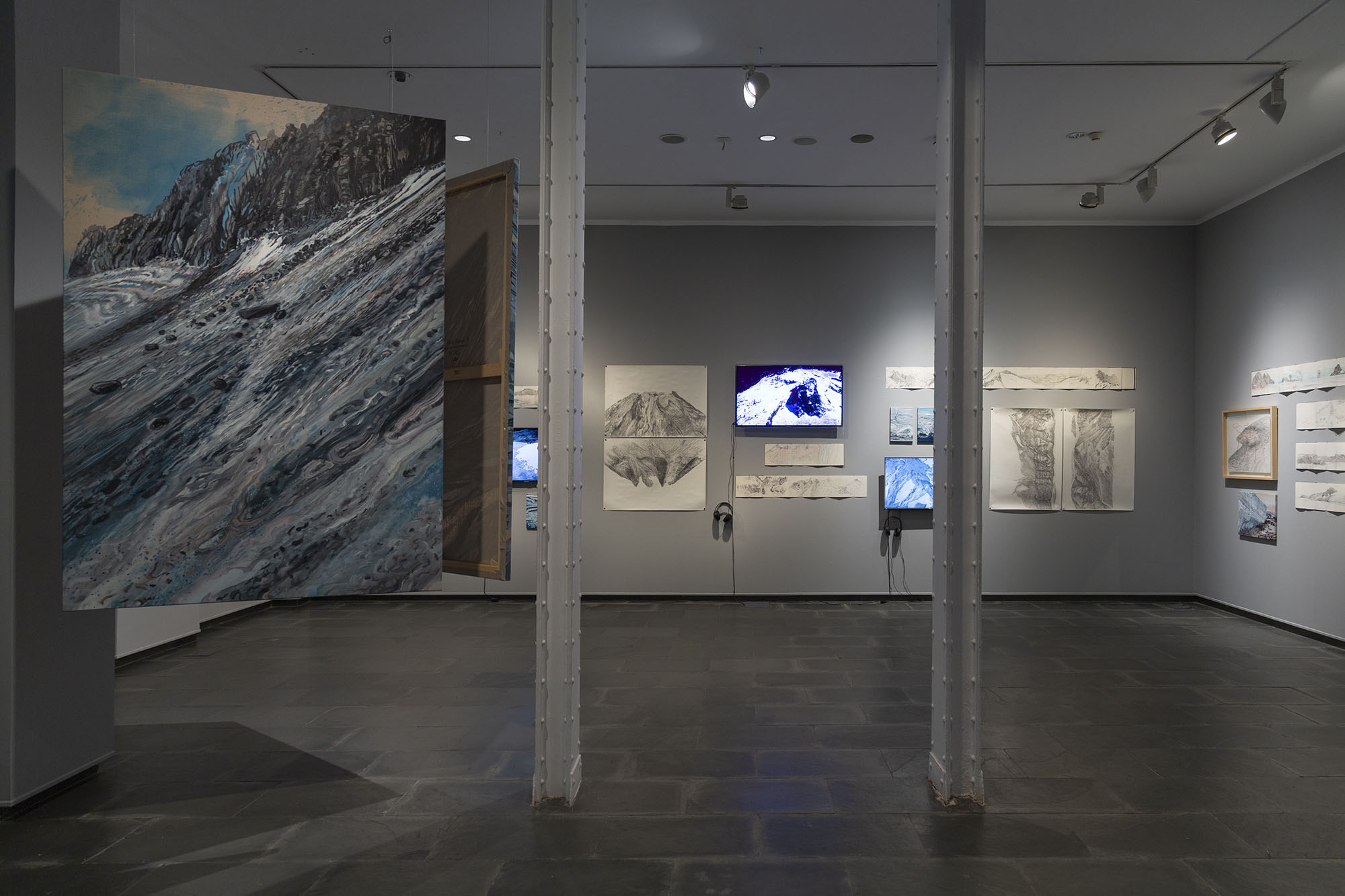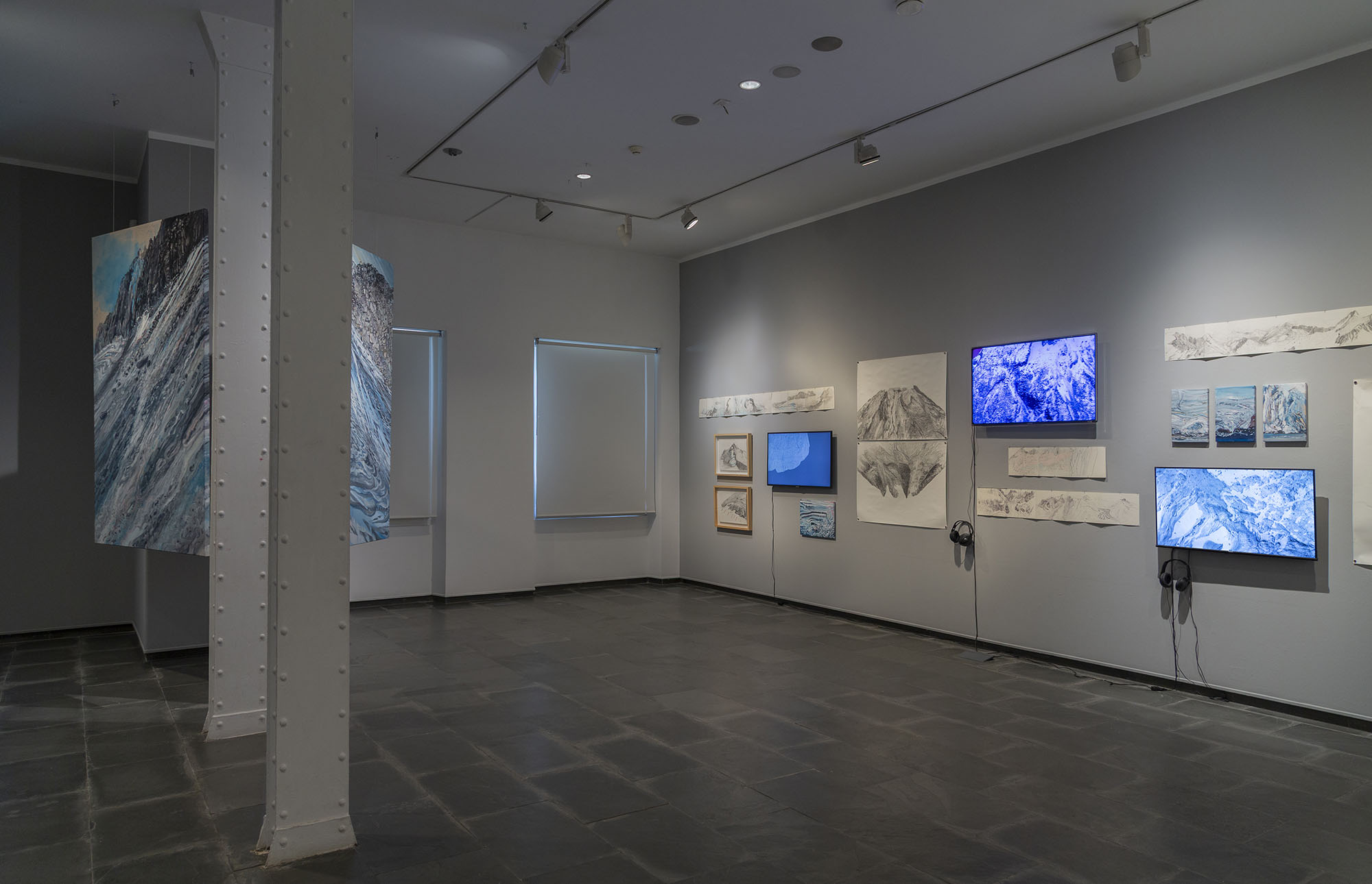 For this reason the exhibition has been conceived as a sensorial place that celebrates the emotion and the mystery of the glacier while warning us of its fatal disappearance. For this reason also the exhibition is an adamant collection of persistencies, the chronicle of something alive, an imaginary meseta surrounded by enigmatic and baffling summits.