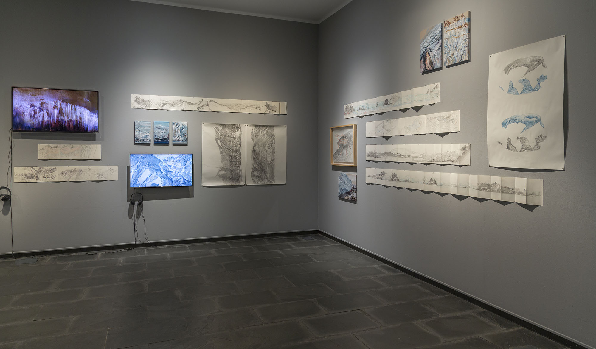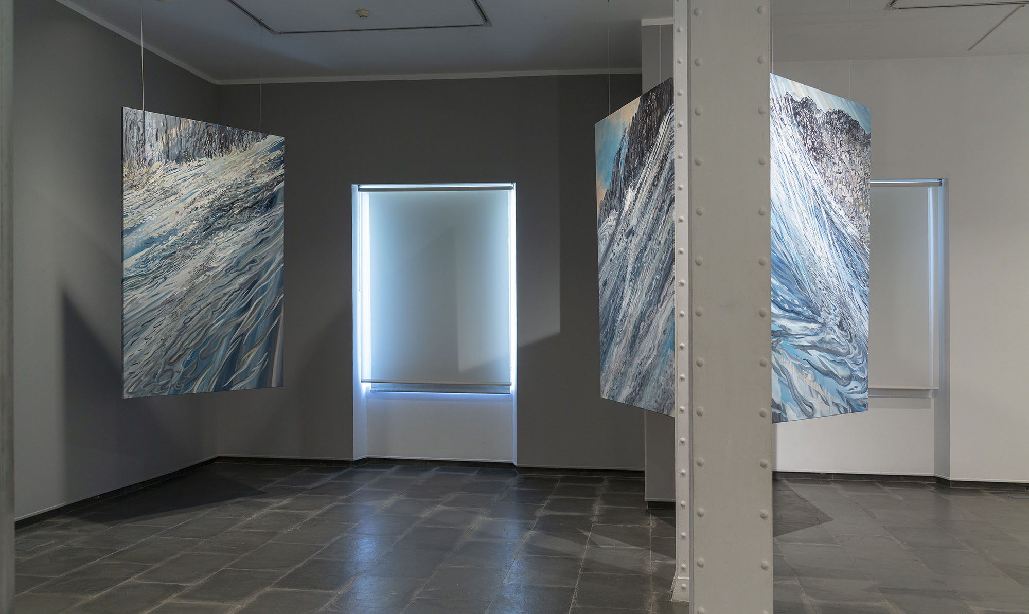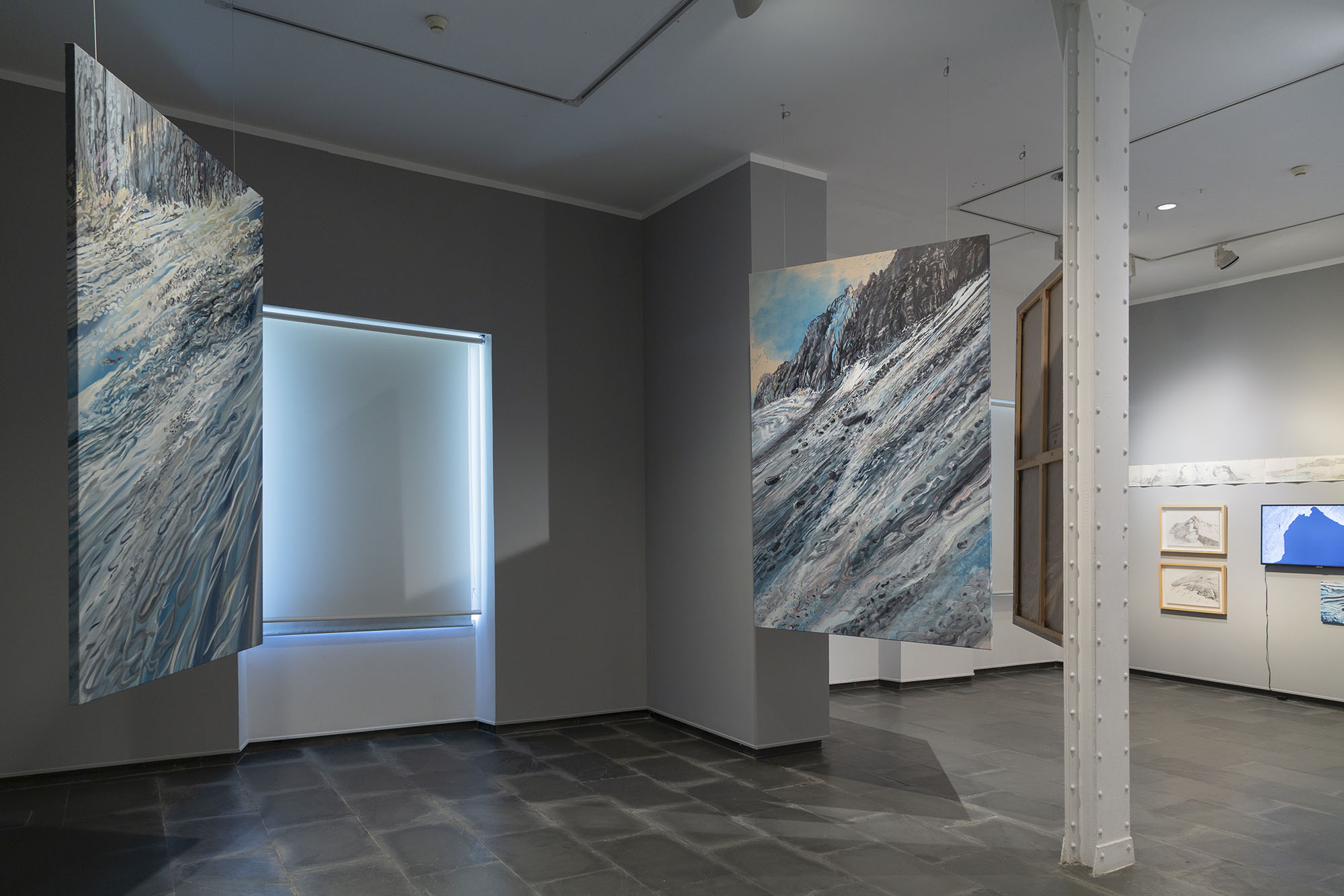For this reason the exhibition has been conceived as a sensorial place that celebrates the emotion and the mystery of the glacier while warning us of its fatal disappearance. For this reason also the exhibition is an adamant collection of persistencies, the chronicle of something alive, an imaginary meseta surrounded by enigmatic and baffling summits.