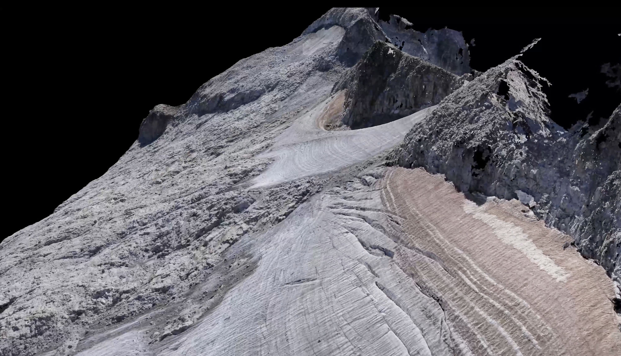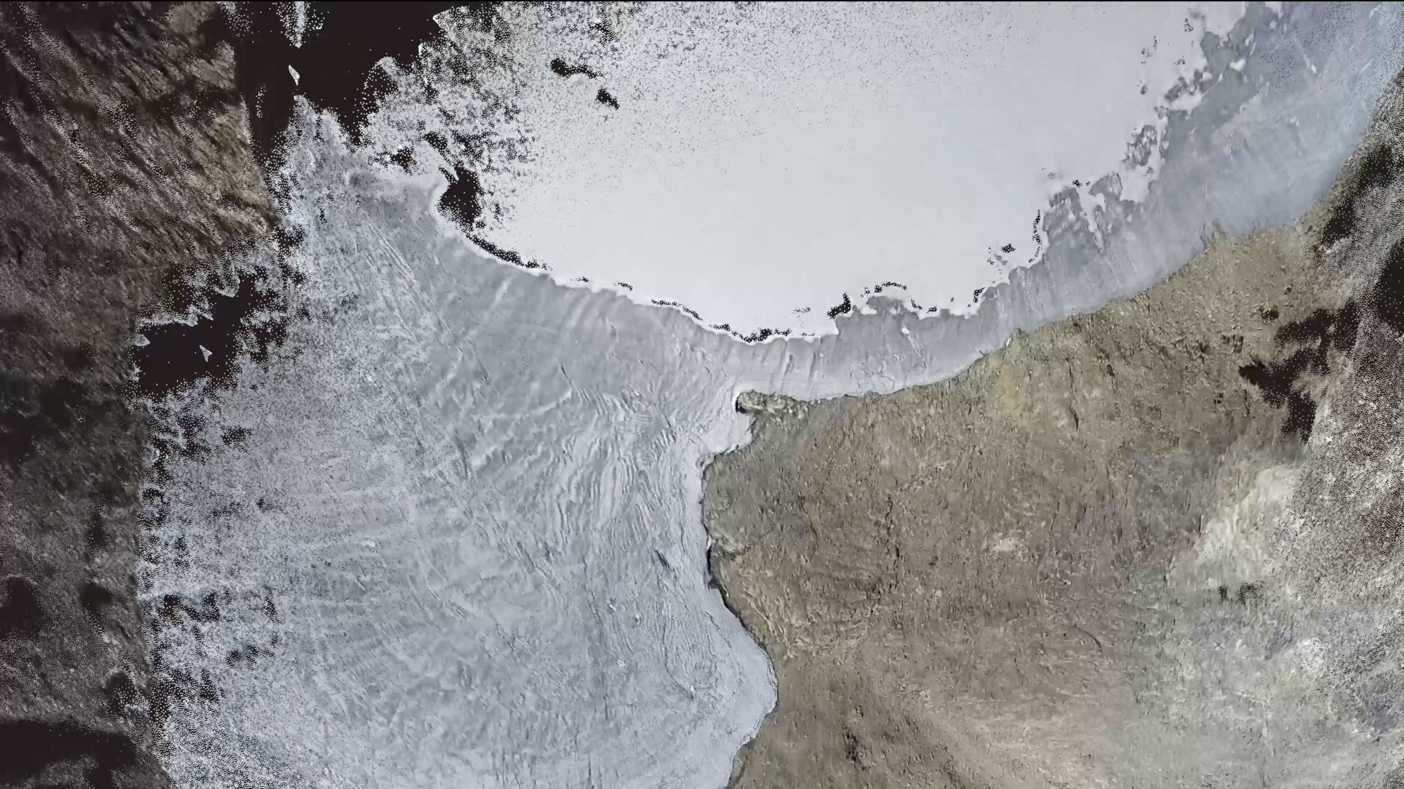 The videos use photogrammetry: images of the mountains taken by drones at different times are modeled in 3D. Natalia then films the resulting model giving it the movement and character of a map. The result is both hypnotic and pliant that also incorporates the voids and visual errors in the images. The little loops of the Aneto, the Dulima and the Antarctic provide a tactile, almost corporeal image that appeals to the senses and goes beyond the remoteness of the satelite mapping. However in some of the videos the spaces resulting from the technical faults overlap with another kind of void that is more real and more dramatic. As we contemplate the images taken in different lapses over the years we can clearly see how the glacier mass is rapidly disappearing. The accidental magic created by the mixture of visual errors presents an unwelcome revelation by showing us the true topography of the territory.
