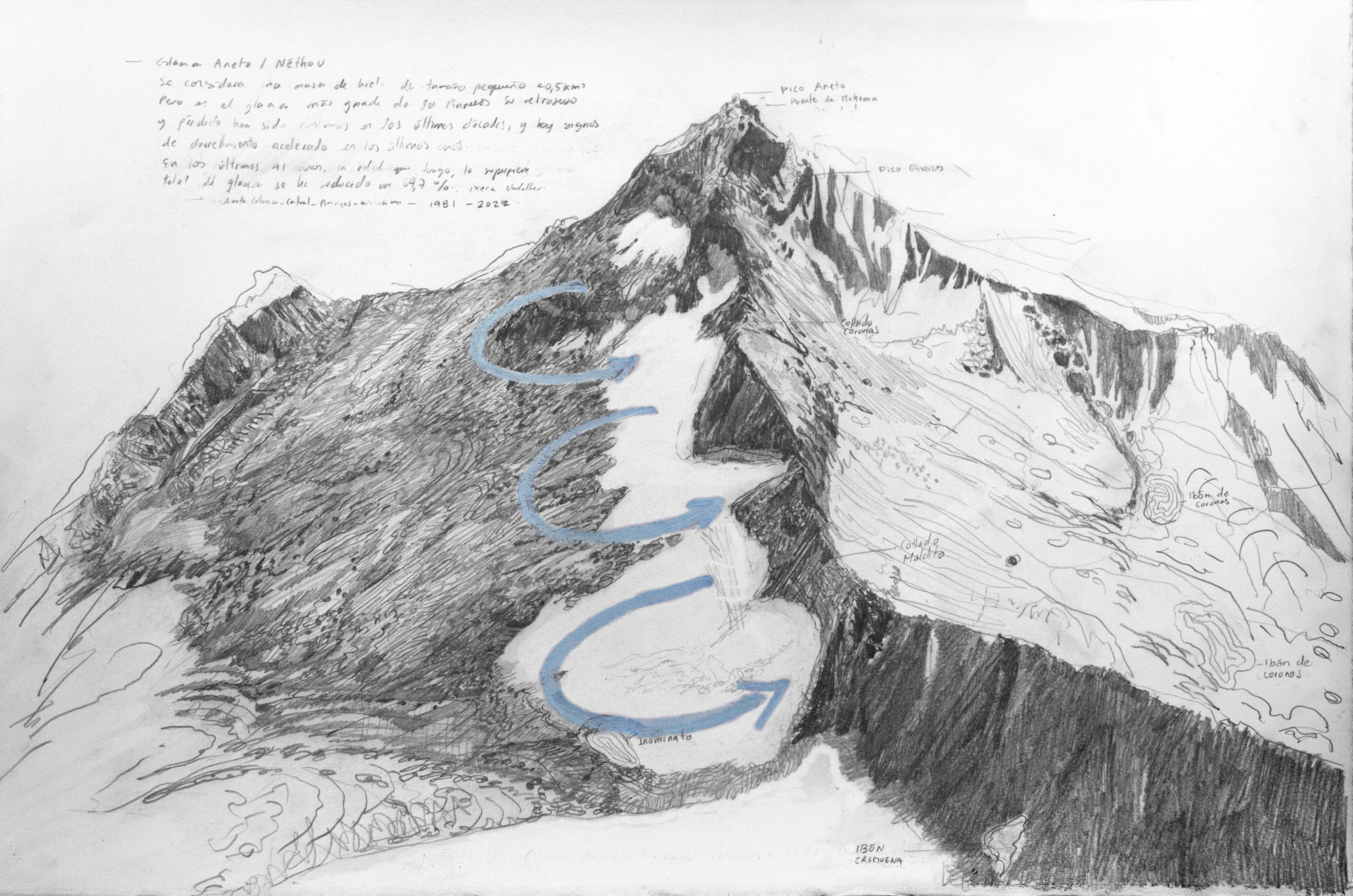 For a decade now Natalia Castañeda has been working unremittingly on her encounter with the mountain, and especially with glaciers, those huge masses of water in movement and now in retreat. The rapid loss of the cryosphere is drastically reducing water resources while at the same time the paleo-environmental information stored in the ice is disappearing. Glaciers are like time-capsules that hold climate history and as a result, they hold the history of the world.
