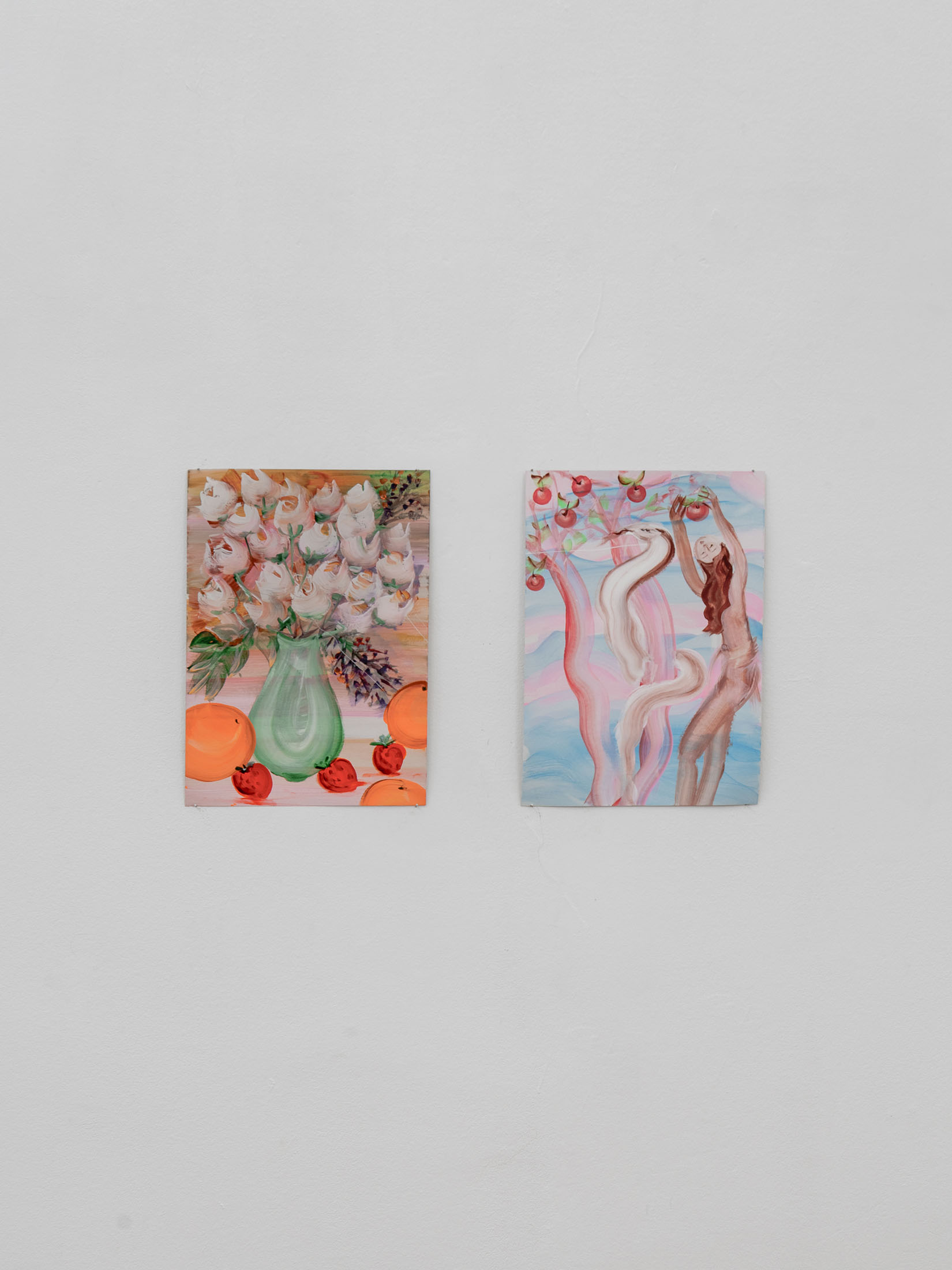Perception is not a neutral act; it is shaped by historically and culturally defined parameters (Rancière). Thus, the visual experience confronting the viewer is always-already encoded by specific systems of power and aesthetics. In this context, the paintings of Nato Sirbiladze and Sophia Umbra offer a deconstruction of the aesthetic surface. Seemingly innocent decorative forms— flowers, angelic motifs, modular characters, stylized shapes—are transformed into political signs that question the neutrality of aesthetic perception itself.