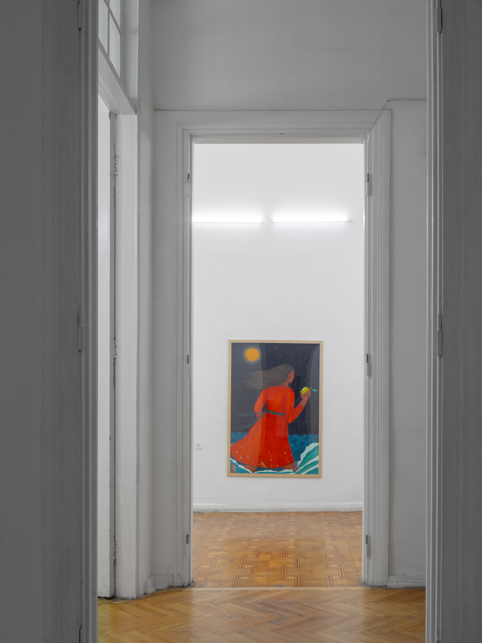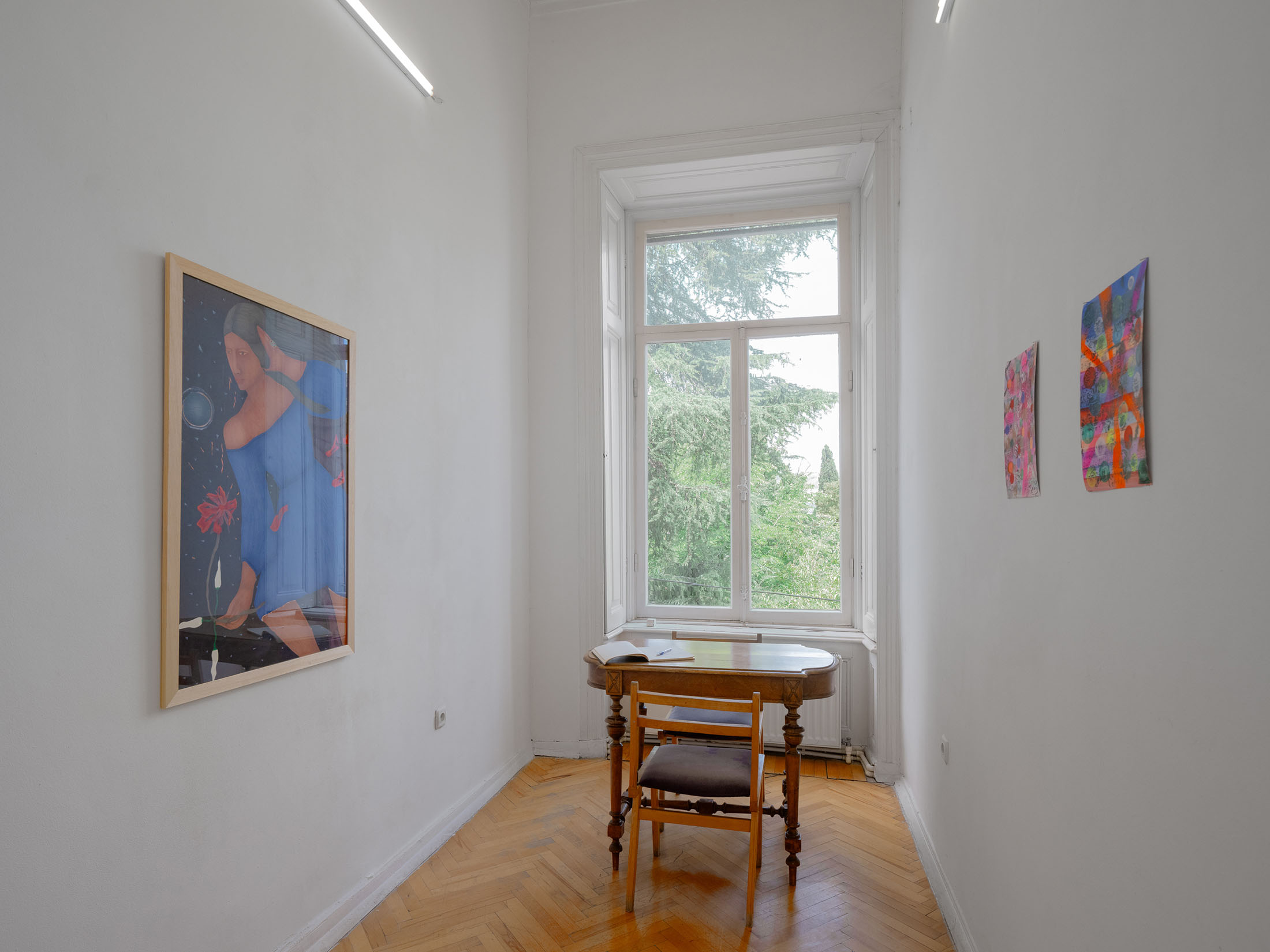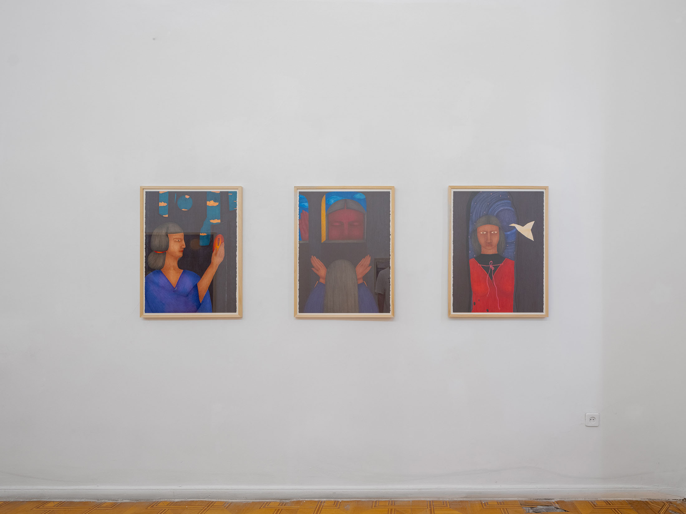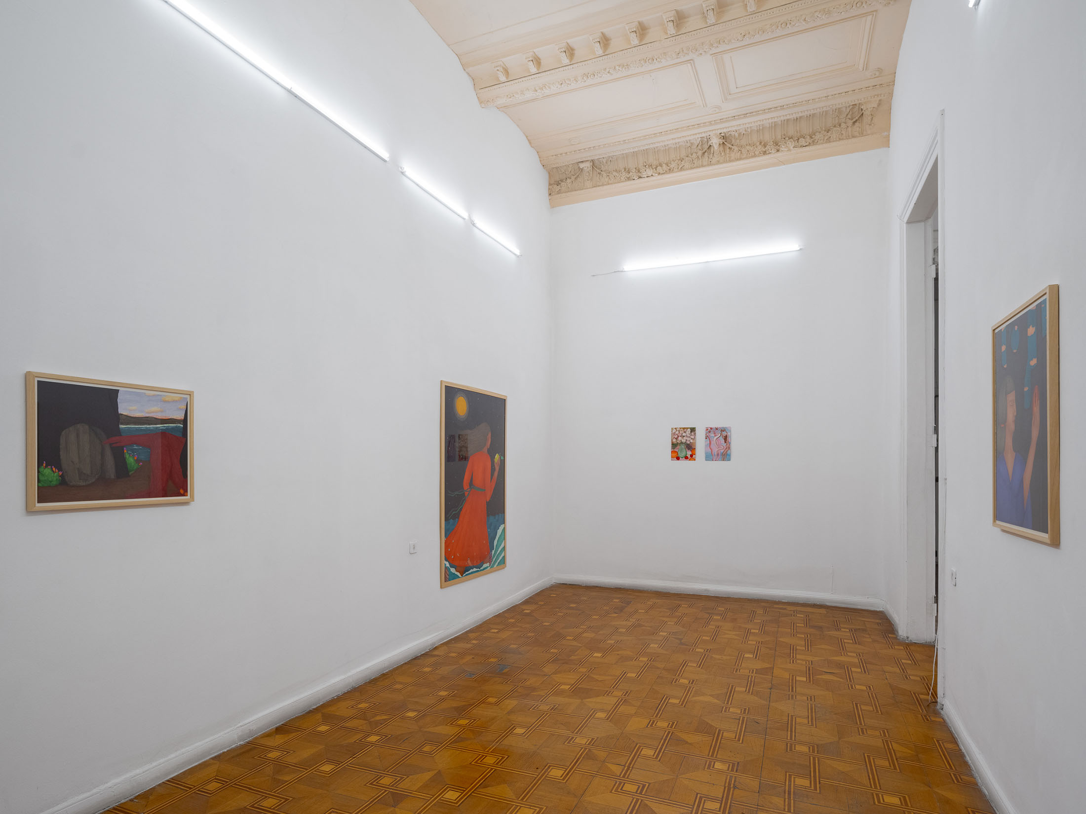 In Nato Sirbiladze’s compositions, the depth of night is gradually replaced by soft, atmospheric light. Her figures nearly dissolve the boundaries between body and environment, while translucent, open spaces and forms rendered in soft contours give the impression that light is now entering from the outside.