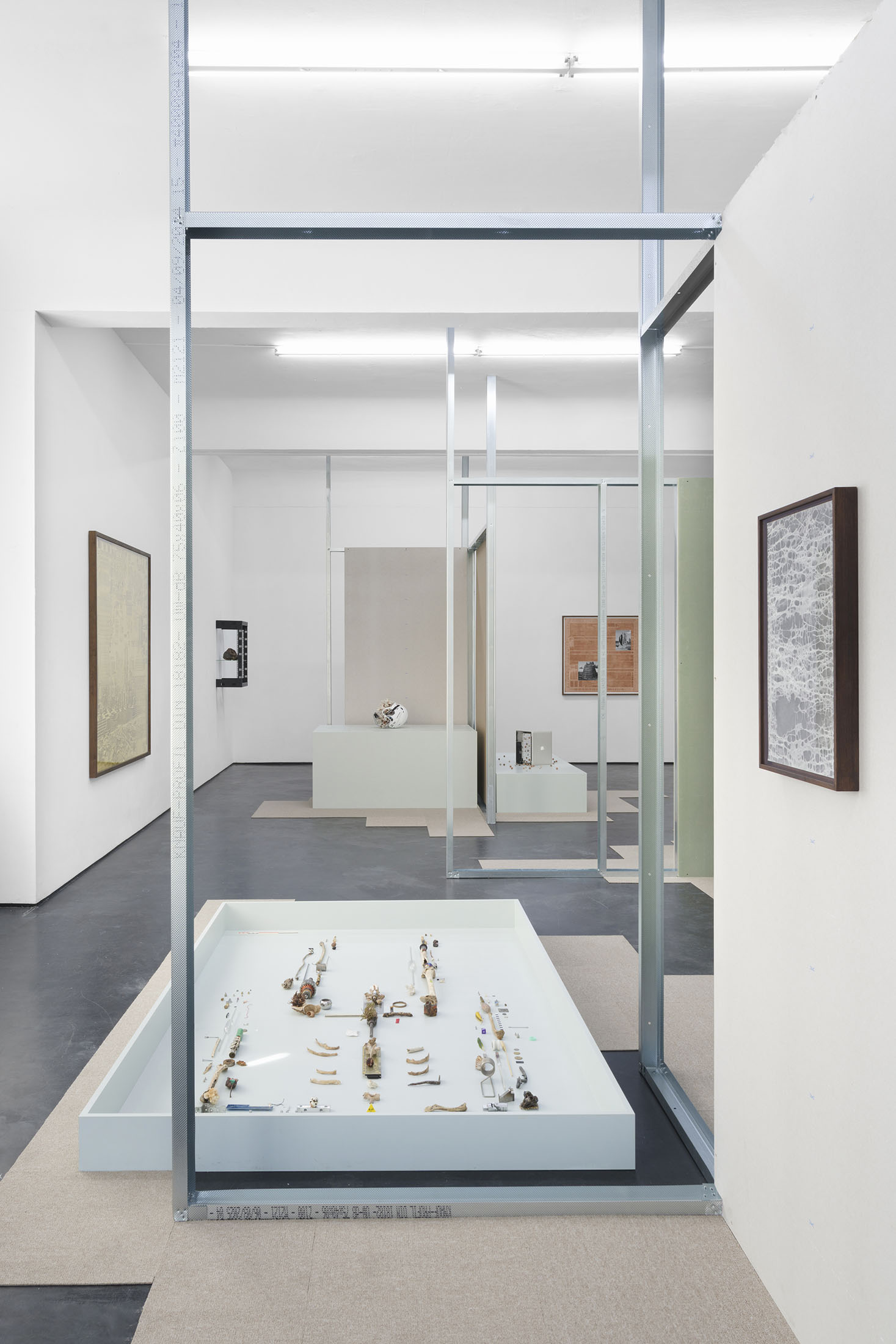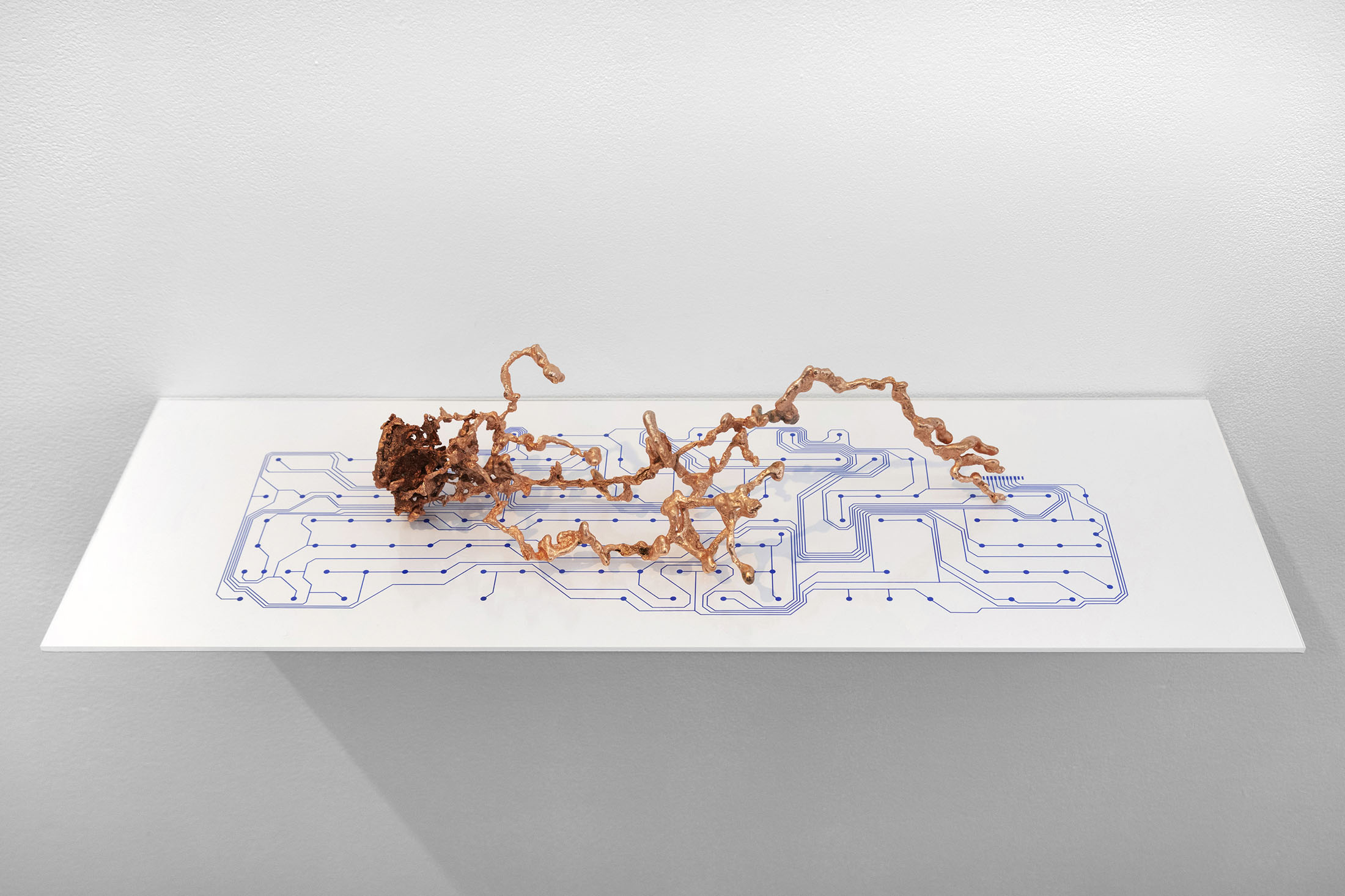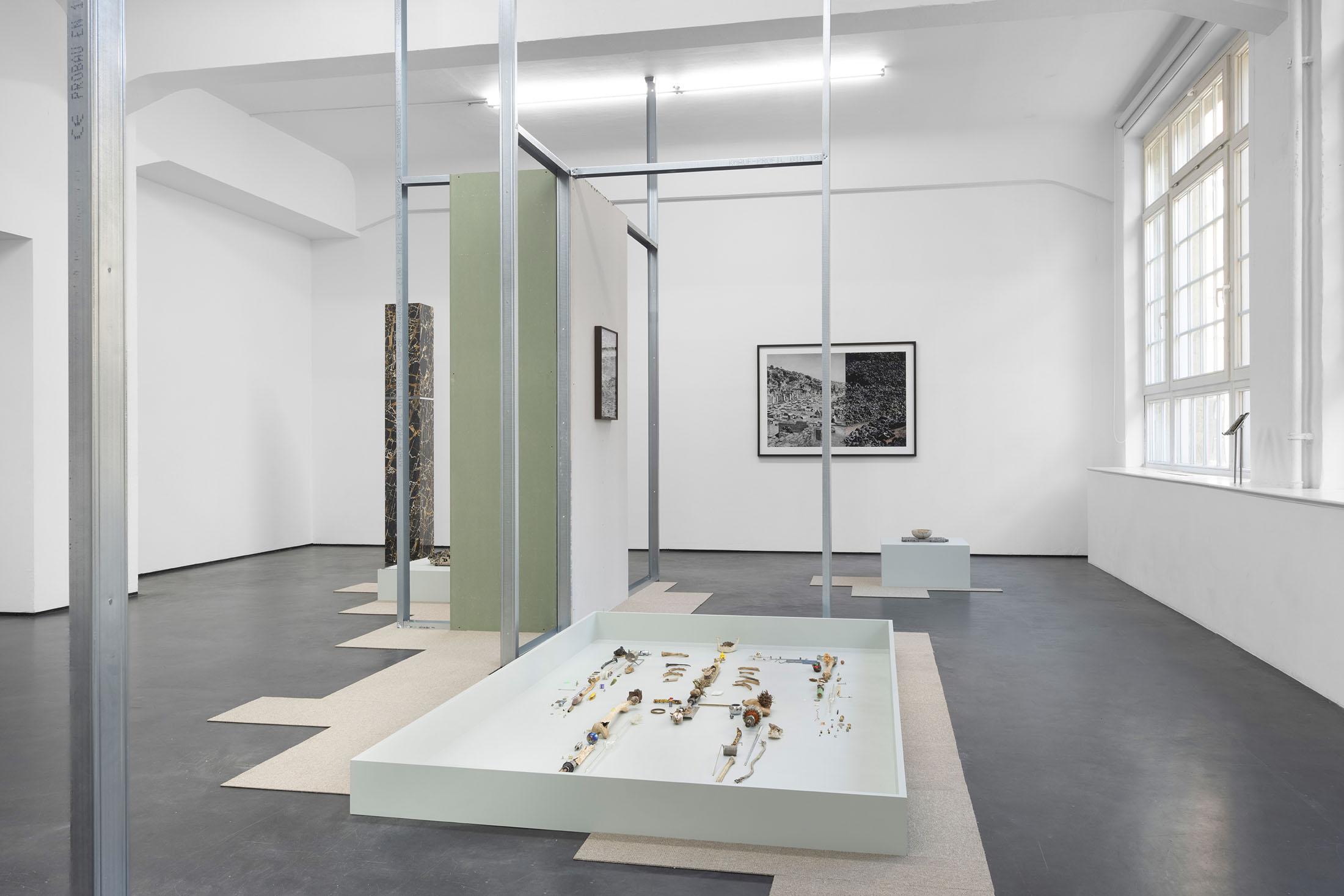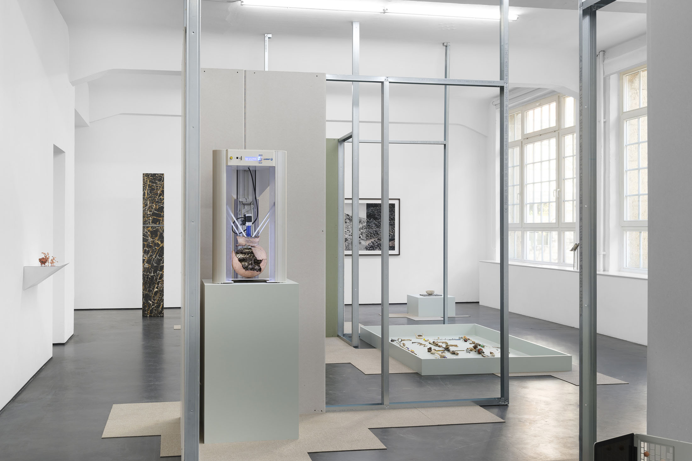 In his solo-exhibition fluid minds showcasing his latest body of work, Nicolás Lamas orchestrates an environment where distinctions between the organic and the synthetic, the cognitive and the material, dissolve into complex, interwoven dynamics. The maze-like installation is not a stage for passive observation, but a terrain of processes—partial, unstable, and constantly reorganizing. It evokes not merely an archaeological dig, but a space where the act of excavation itself becomes speculative: an inquiry into the unstable present and its entanglements with what has come before and what might follow.