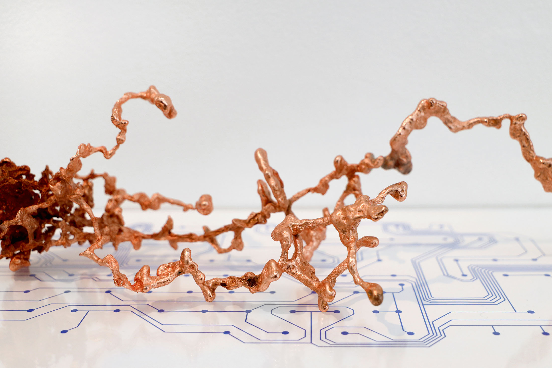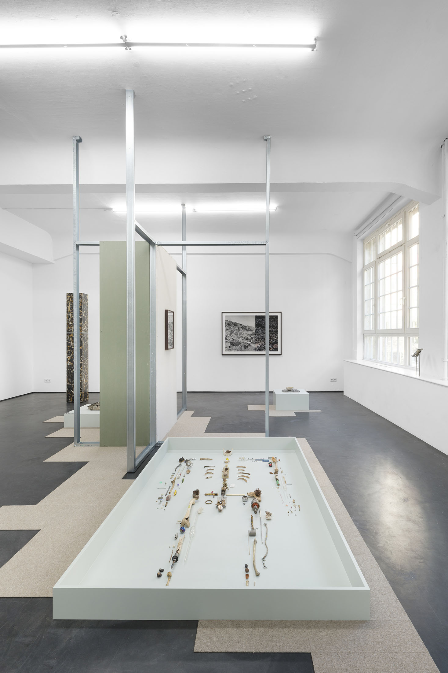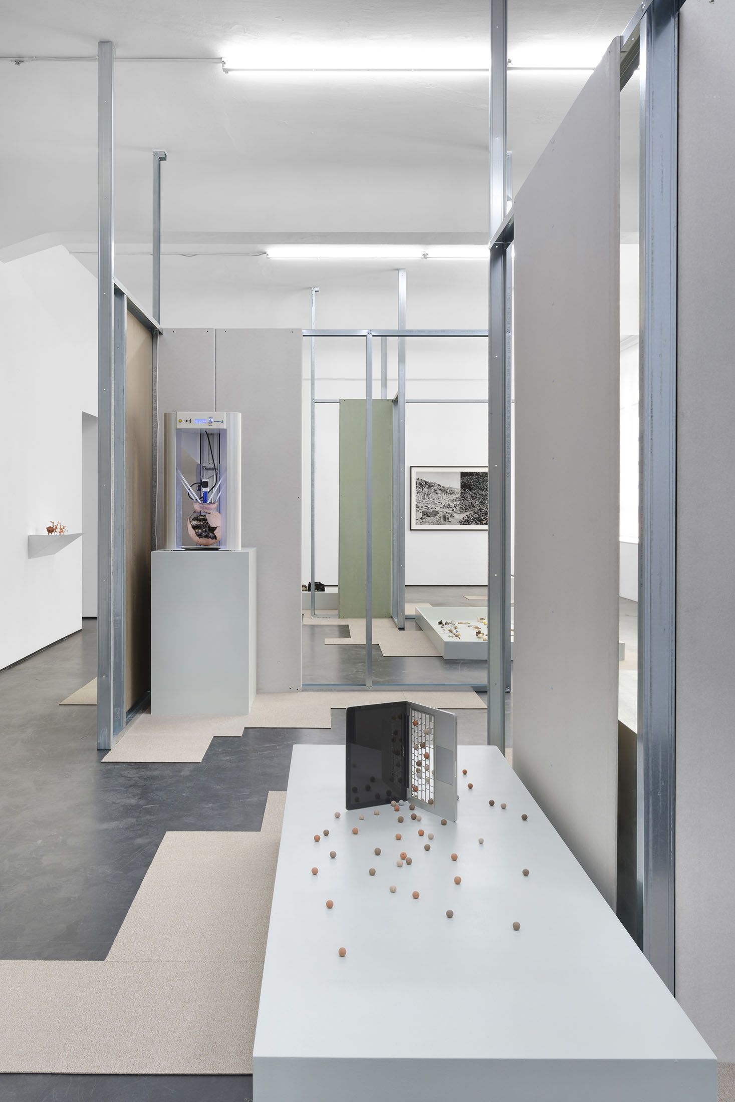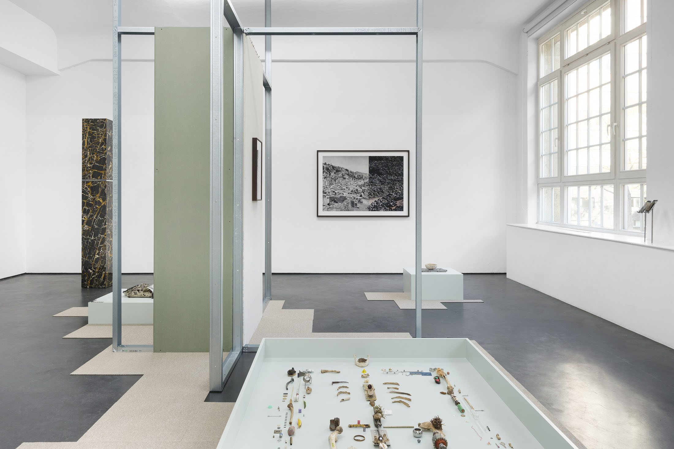 In his solo-exhibition fluid minds showcasing his latest body of work, Nicolás Lamas orchestrates an environment where distinctions between the organic and the synthetic, the cognitive and the material, dissolve into complex, interwoven dynamics. The maze-like installation is not a stage for passive observation, but a terrain of processes—partial, unstable, and constantly reorganizing. It evokes not merely an archaeological dig, but a space where the act of excavation itself becomes speculative: an inquiry into the unstable present and its entanglements with what has come before and what might follow.
