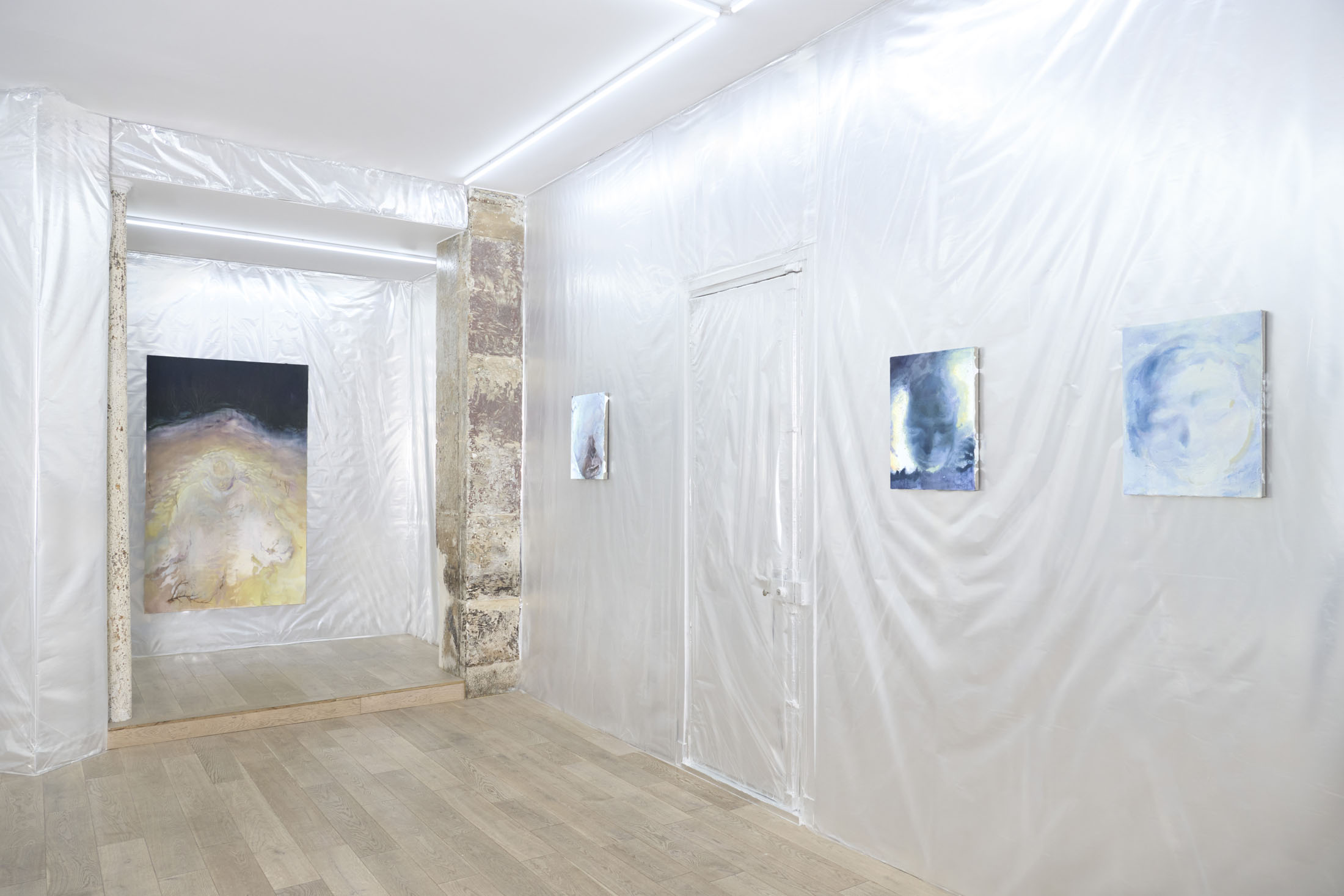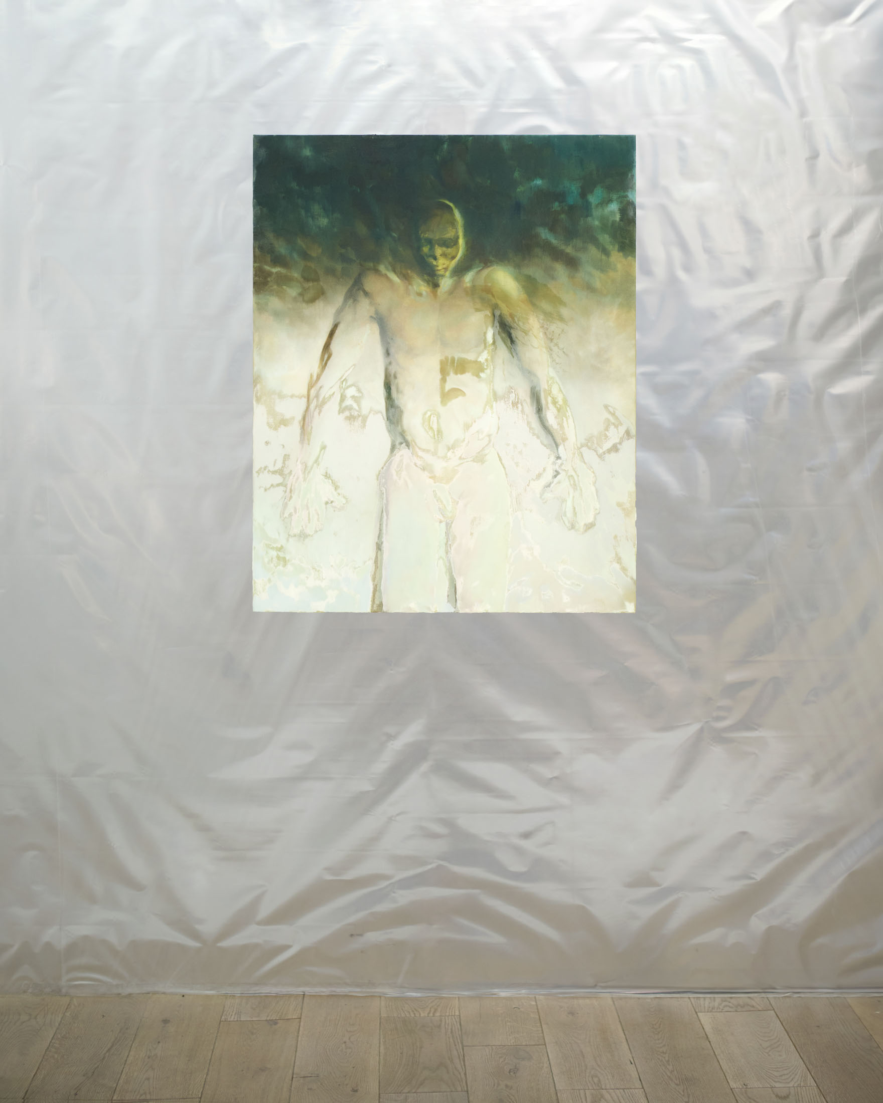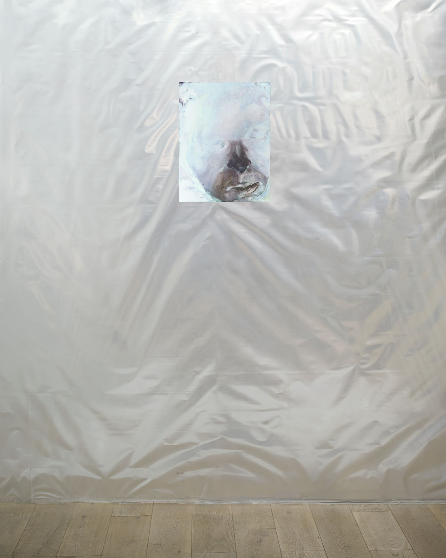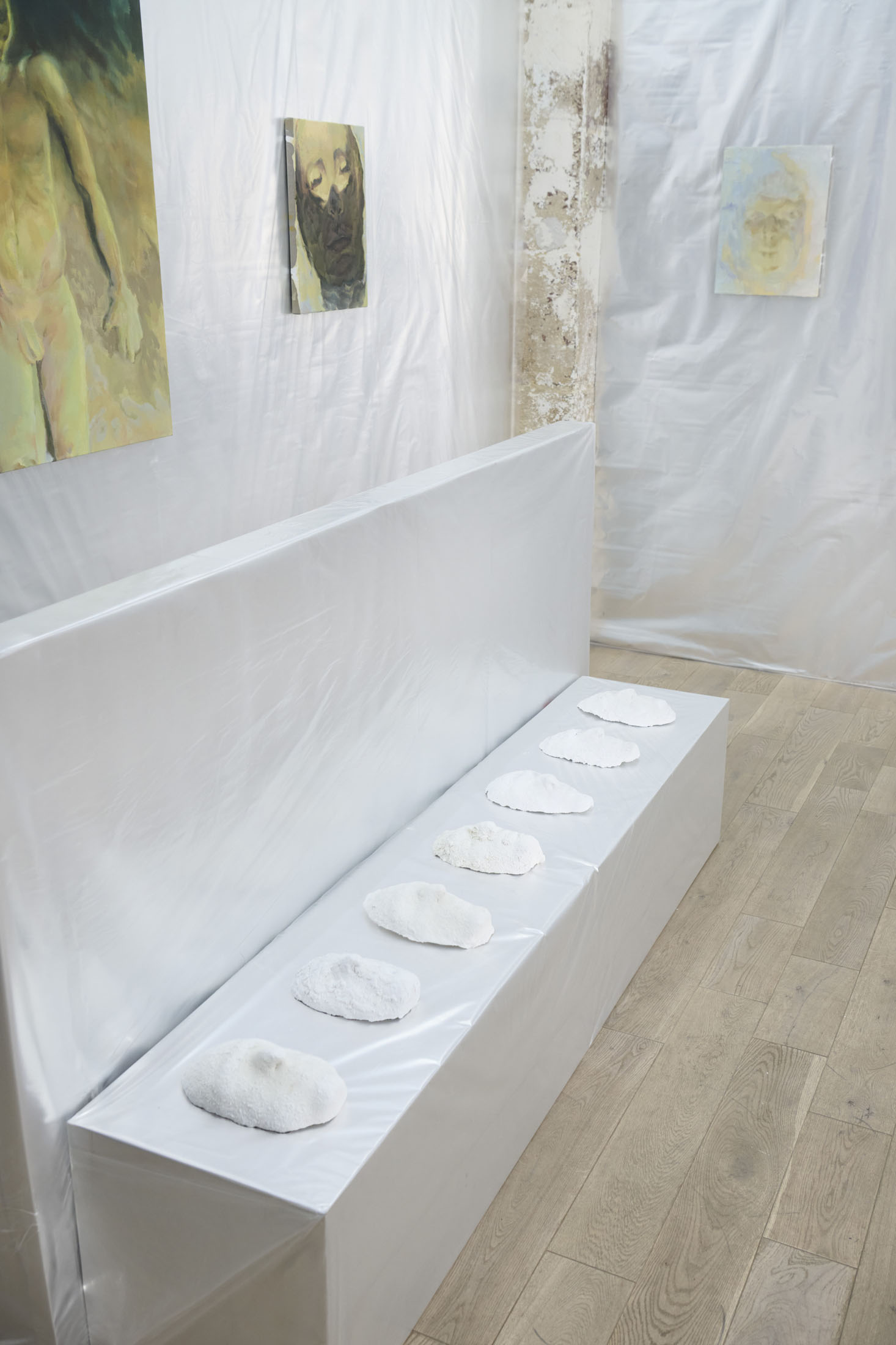 The anonymity of the figures in these paintings, rendered as impressions rather than detailed portraits, further underscores Beyene’s meditation on identity. Form and presence take precedence over prescribed notions of race or nationality. In this, the works respond implicitly to the exclusionary logic of Sweden’s recently announced cultural canon: a curated list of 100 works, ideas, and brands deemed essential to Swedishness, restricted to works over fifty years old, and largely excluding artists of colour. Beyene’s paintings stand in contrast to this state-sanctioned vision of culture, embodying instead the complex and subjective nature of nationhood and belonging. The L’Inconnue de la Seine, or ‘Unknown Woman of the Seine’, was a source of inspiration for Beyene. An unidentified young woman, her serene death mask became one of the most reproduced images in early 20th-century Europe. Pulled from the Seine in the late 19th century, she was rumoured to have died by suicide, though her true story remains unknown. Her face, with its faint, enigmatic smile and unnervingly peaceful expression, inspired writers, artists, and actors, becoming a symbol of idealised beauty, and celebrated precisely because she had no identity. This idea of an anonymous imprint preserved in time resonates directly with Beyene’s own practice. He describes the plaster “death masks” he made in the snow as physical manifestations of the paintings on the wall, as ephemeral impressions given form. In Beyene’s hands, the imprint becomes both evidence and metaphor: an index of a body and a reminder of how easily bodies slip outside the narratives nations construct for them.