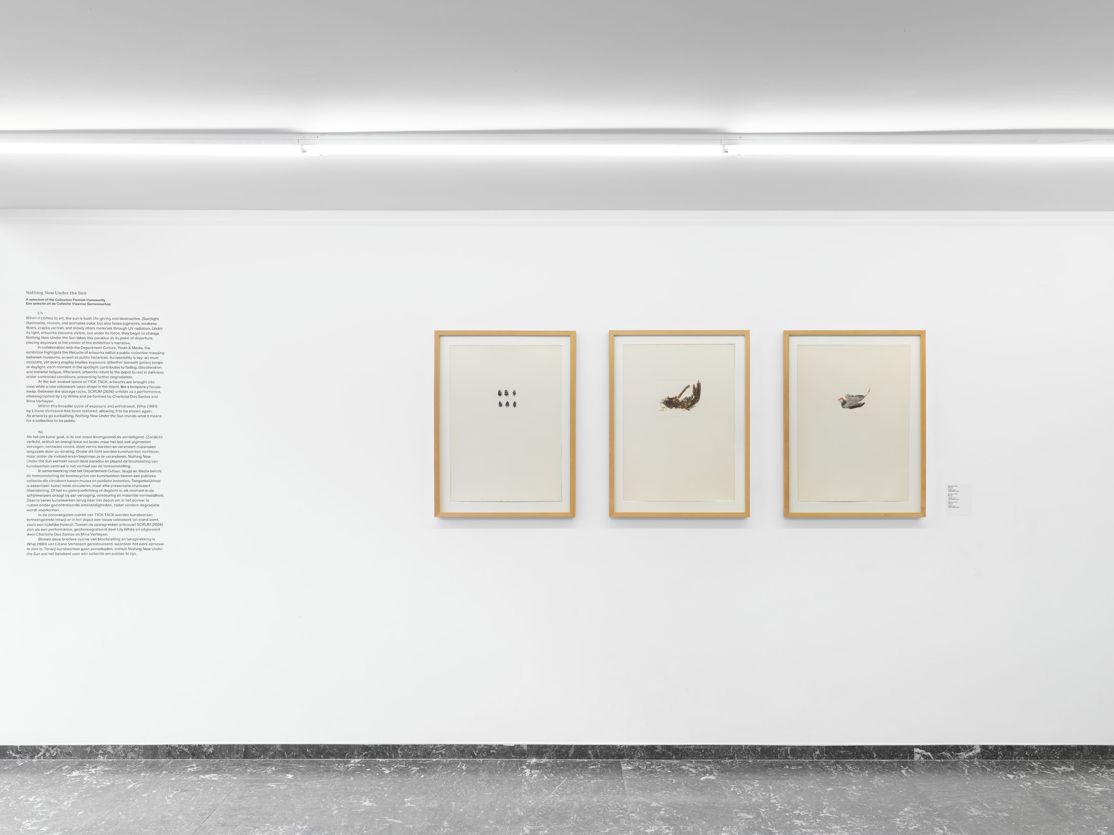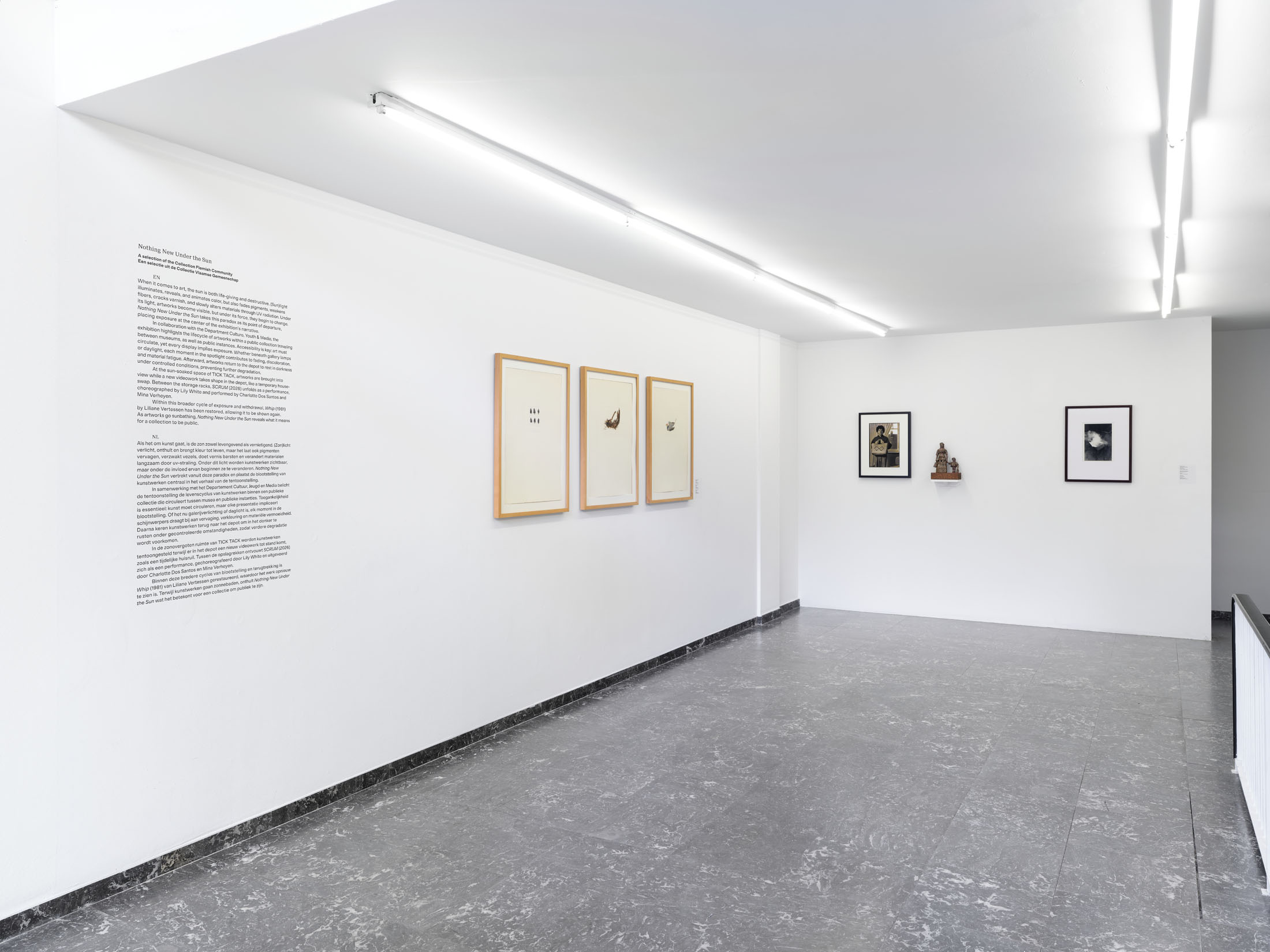 Both sunlight and artificial light are among the most damaging elements for many materials and techniques, causing fading, discoloration, or other degradation. In other words, every time an artwork is exhibited, it fulfills its purpose to be seen, yet it is exposed to damaging conditions. This tension lies at the heart of every collection but is hardly ever presented to the public. Rather than presenting a single art-historical narrative, Nothing New Under the Sun reveals what it means for a collection to be public: not fixed, but continually preserved, activated and shared through the systems that sustain it.