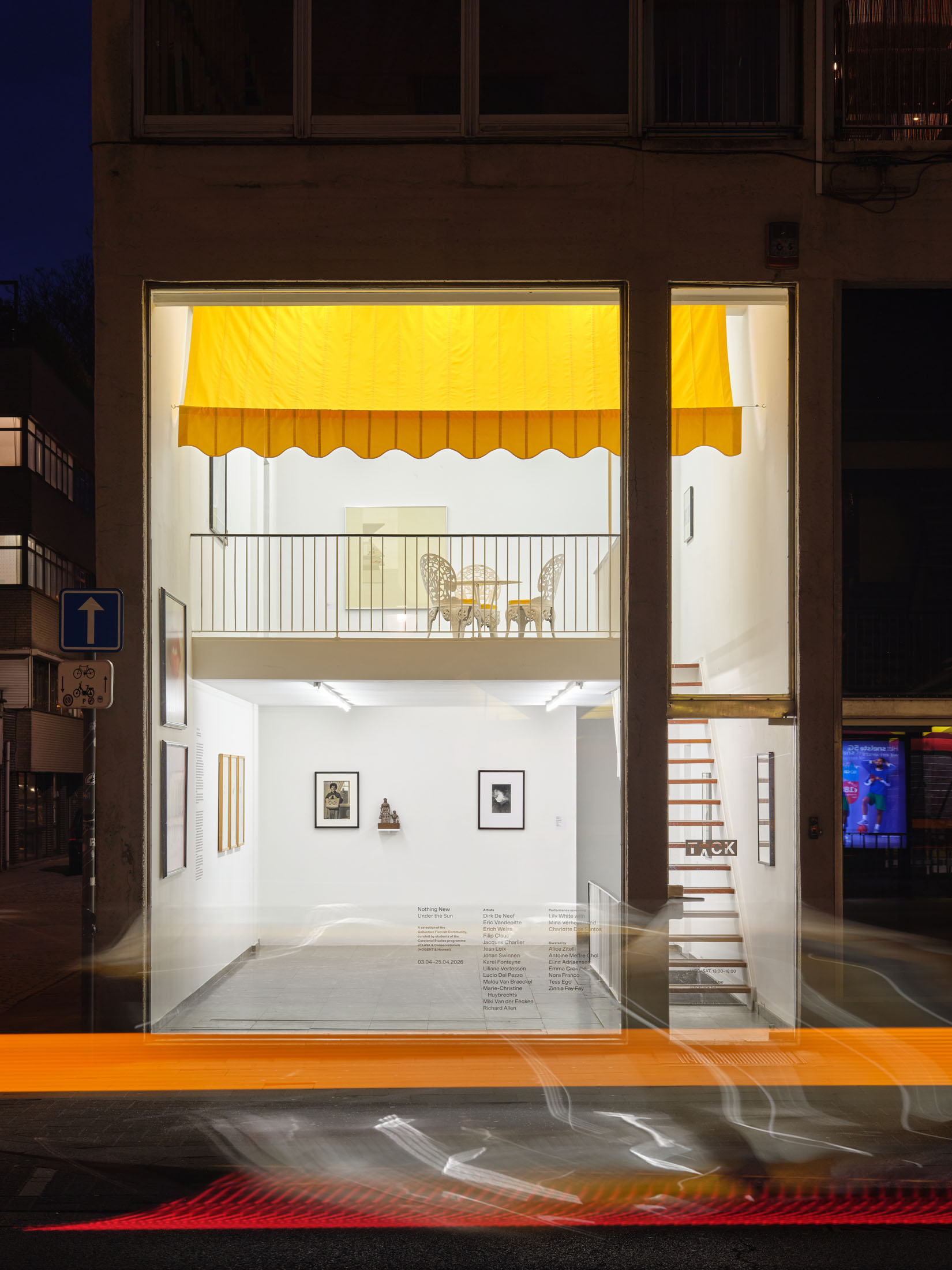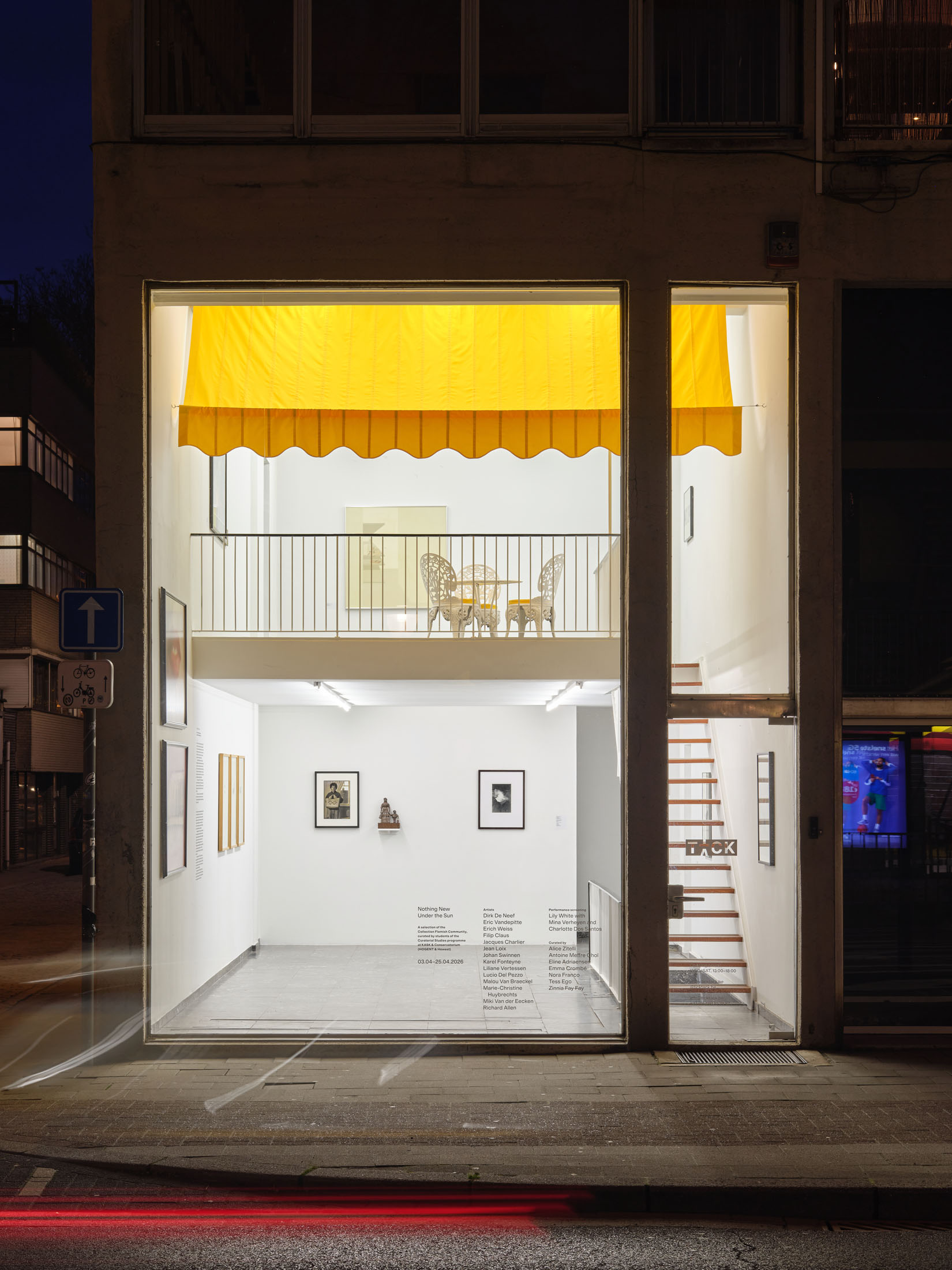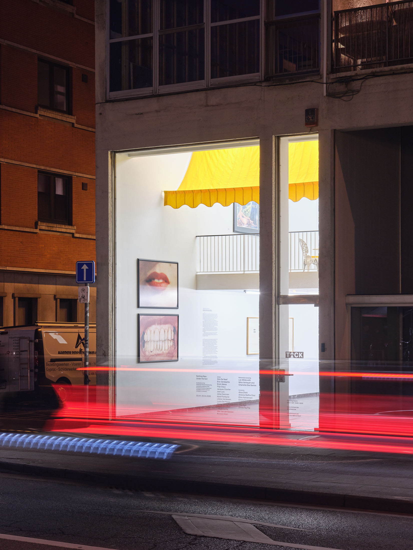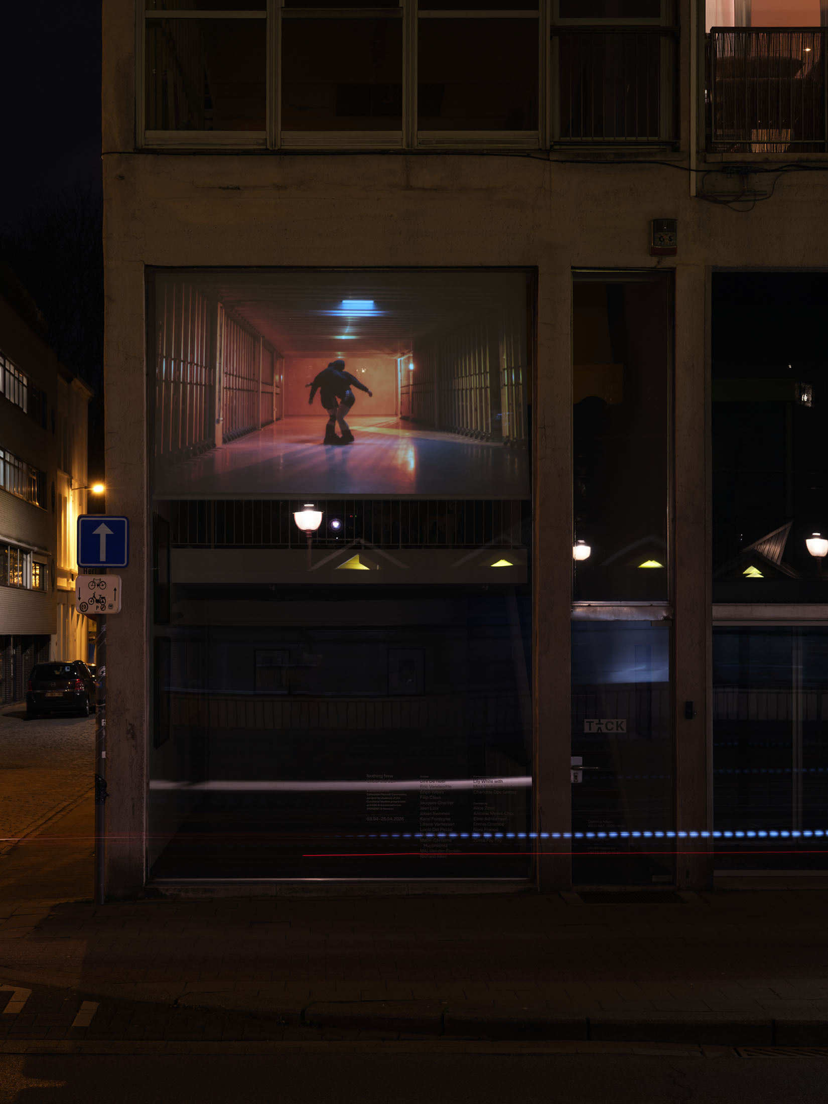 While artworks are moving into the brutalist building of TICK TACK named—The Sundial (1955, Léon Stynen)—a newly commissioned performance, Scrum (2026) by Lily White and dancers Charlotte Dos Santos and Mina Verheyen unfolds at the depot. Like a house-swap, this intervention brings an embodied and live practice into the space usually reserved for the collection.