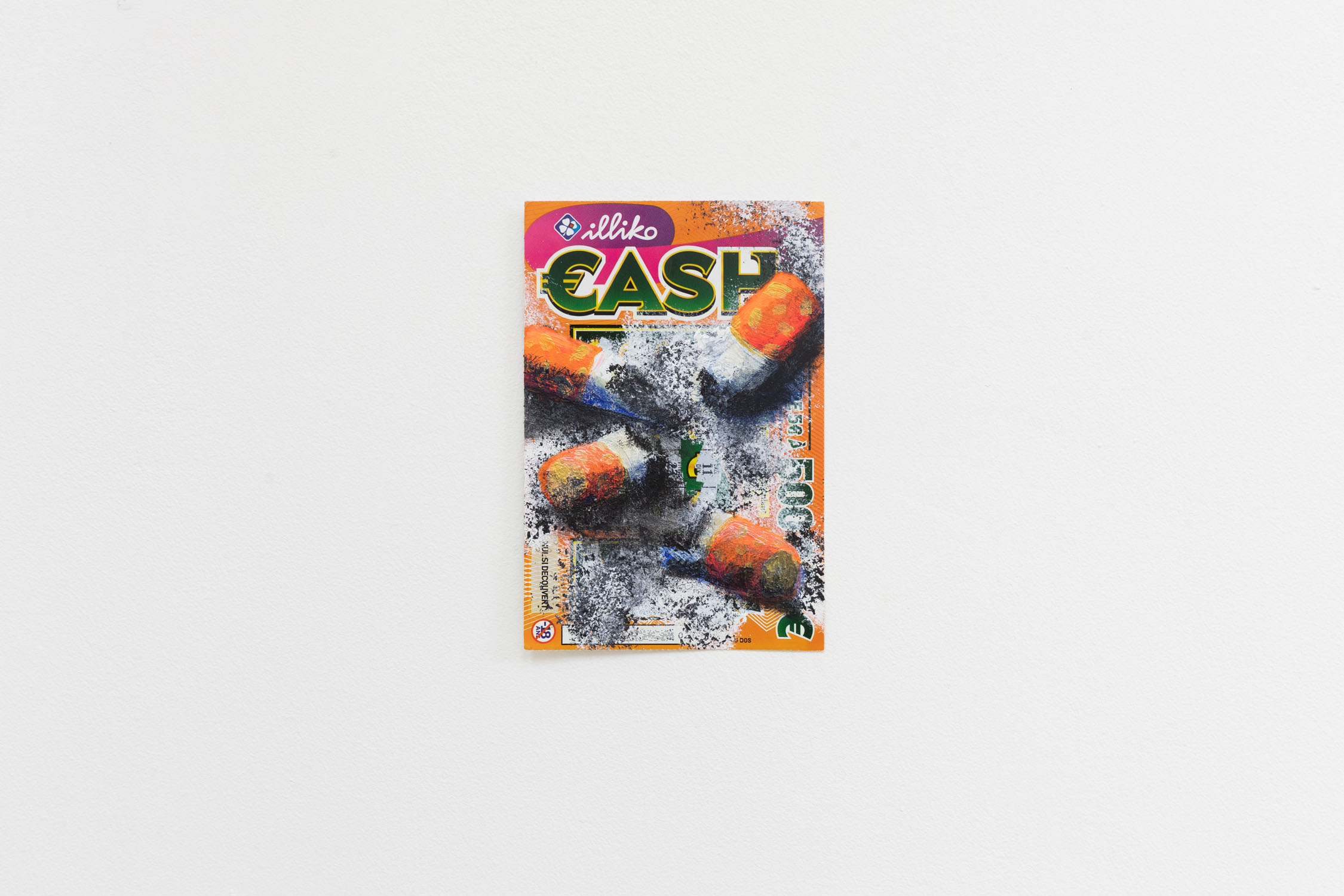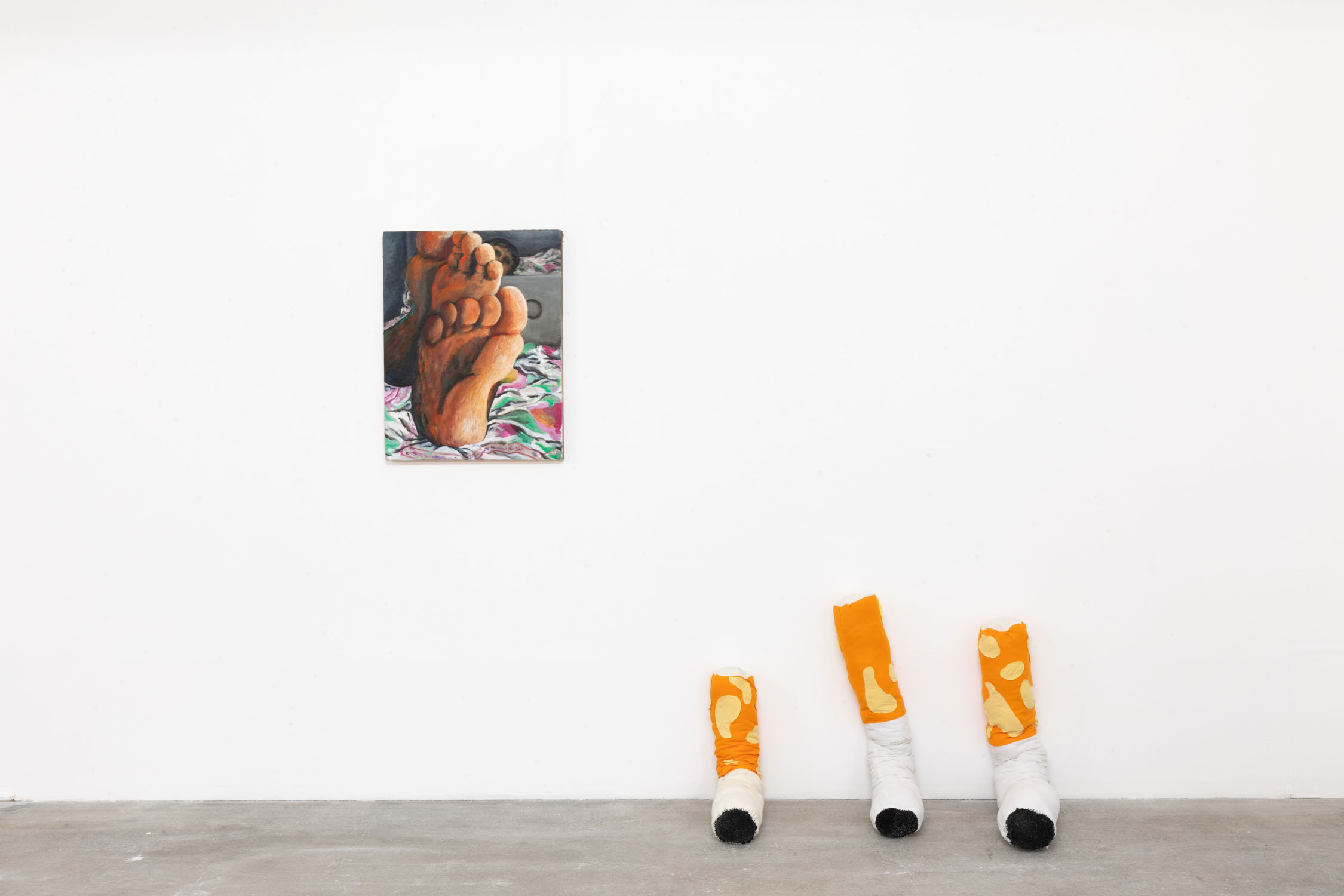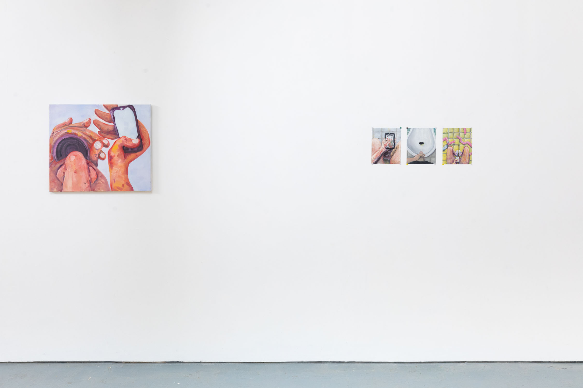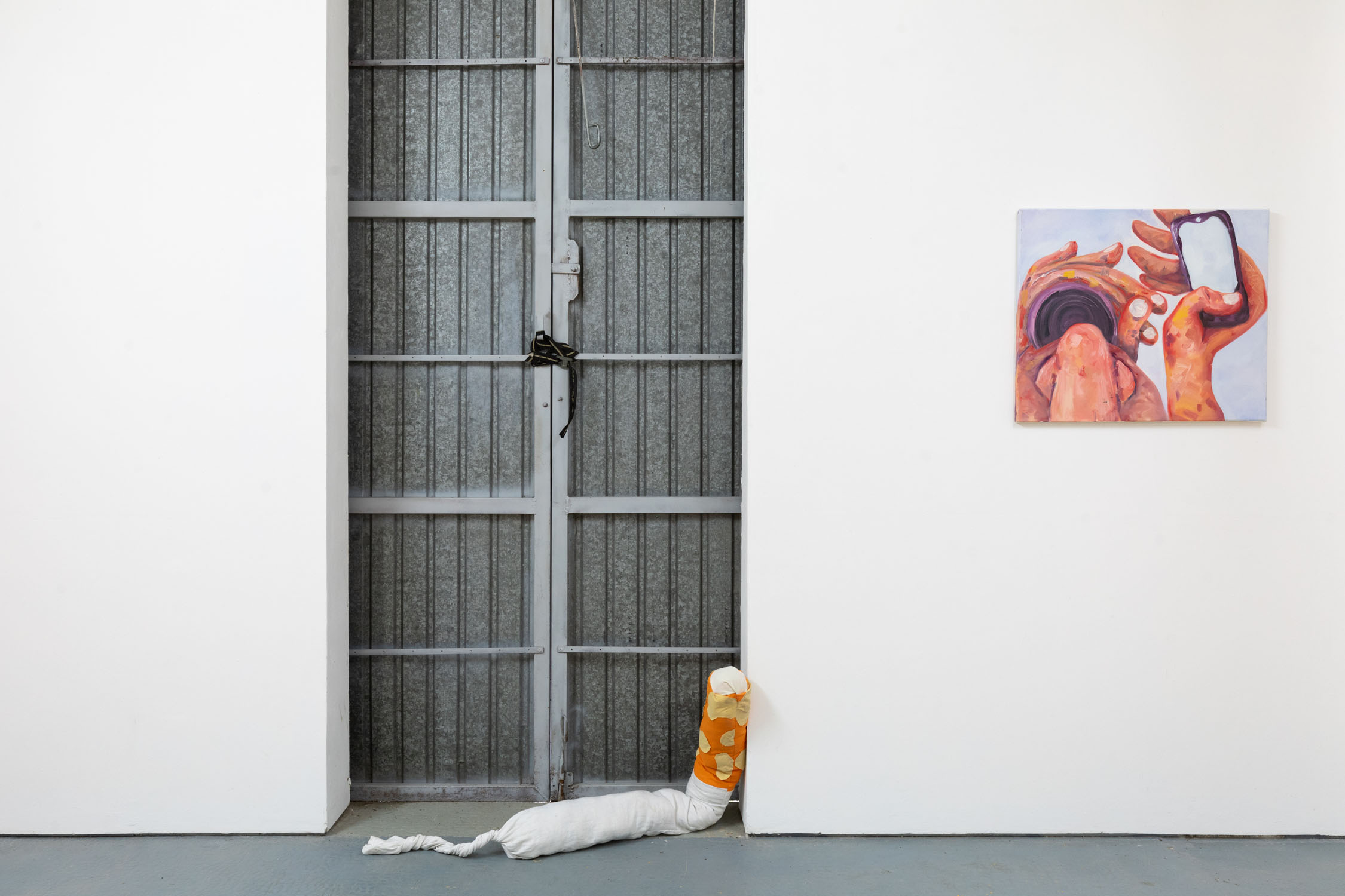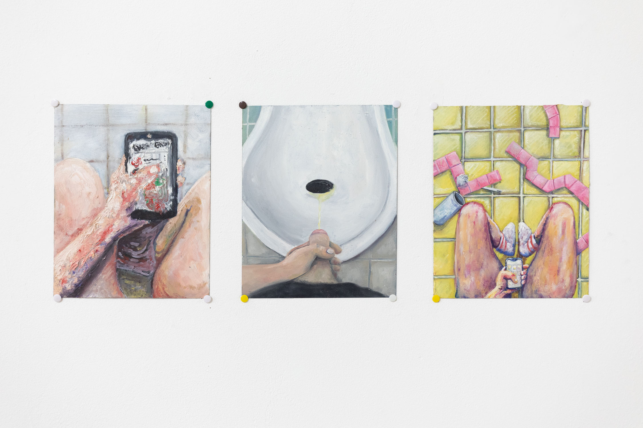 For the installation of Lazy Time, Riccardi has scattered a series of soft sculptures of smoked cigarettes throughout the spaces as if the exhibition is taking place in a waiting-room ashtray. Ricciardi portrays moments of intimacy, aloneness, as well as collective and social encounters, as distractions and passing time; smoking, sitting on the toilet doom scrolling, and hanging-out taking selfies. The characters of this world are exhausting themselves in pastimes and entertainment in more and more futile attempts to escape a profound boredom which threatens to destabilise how they bring meaning and value into their lives. This is not a boredom with things, but a more profound boredom that saturates and makes visible contemporary life.