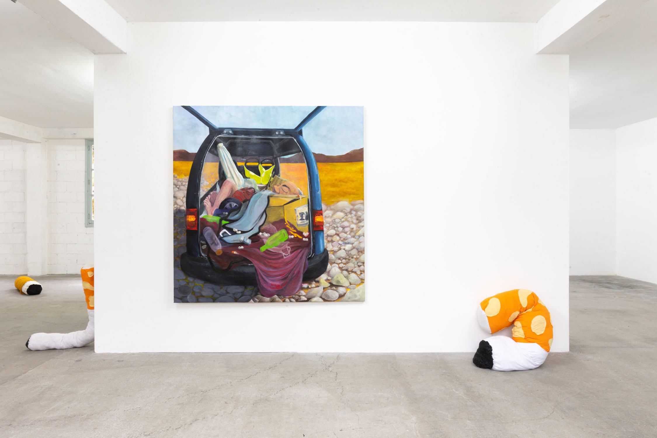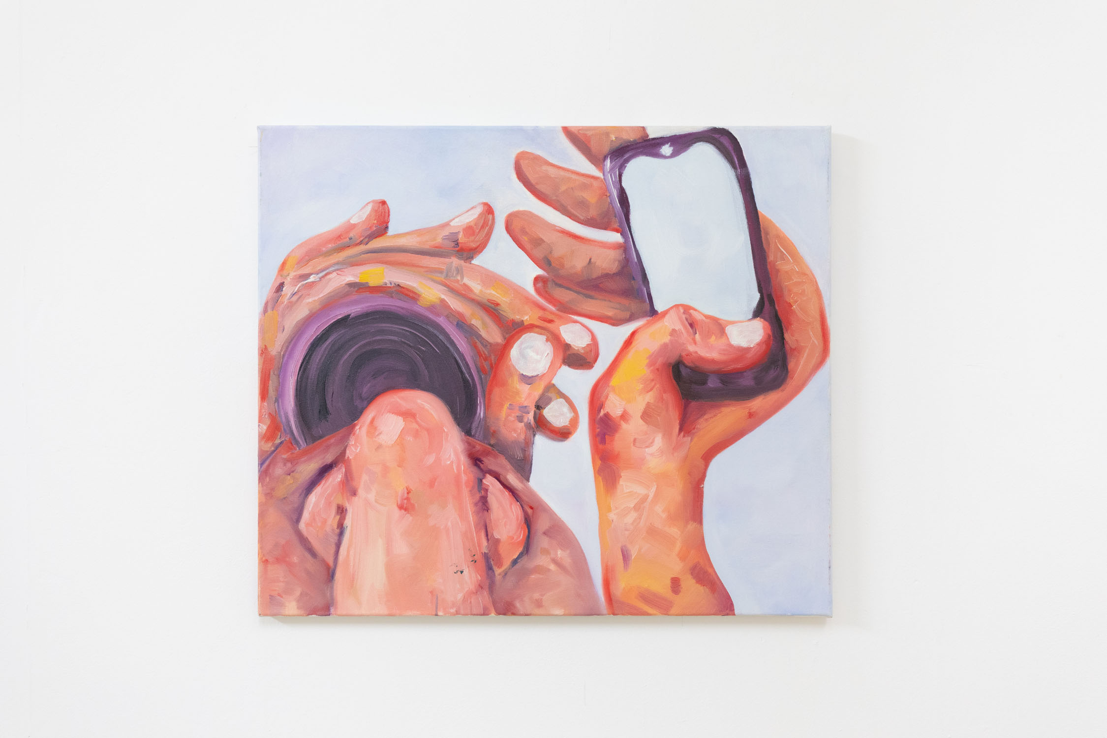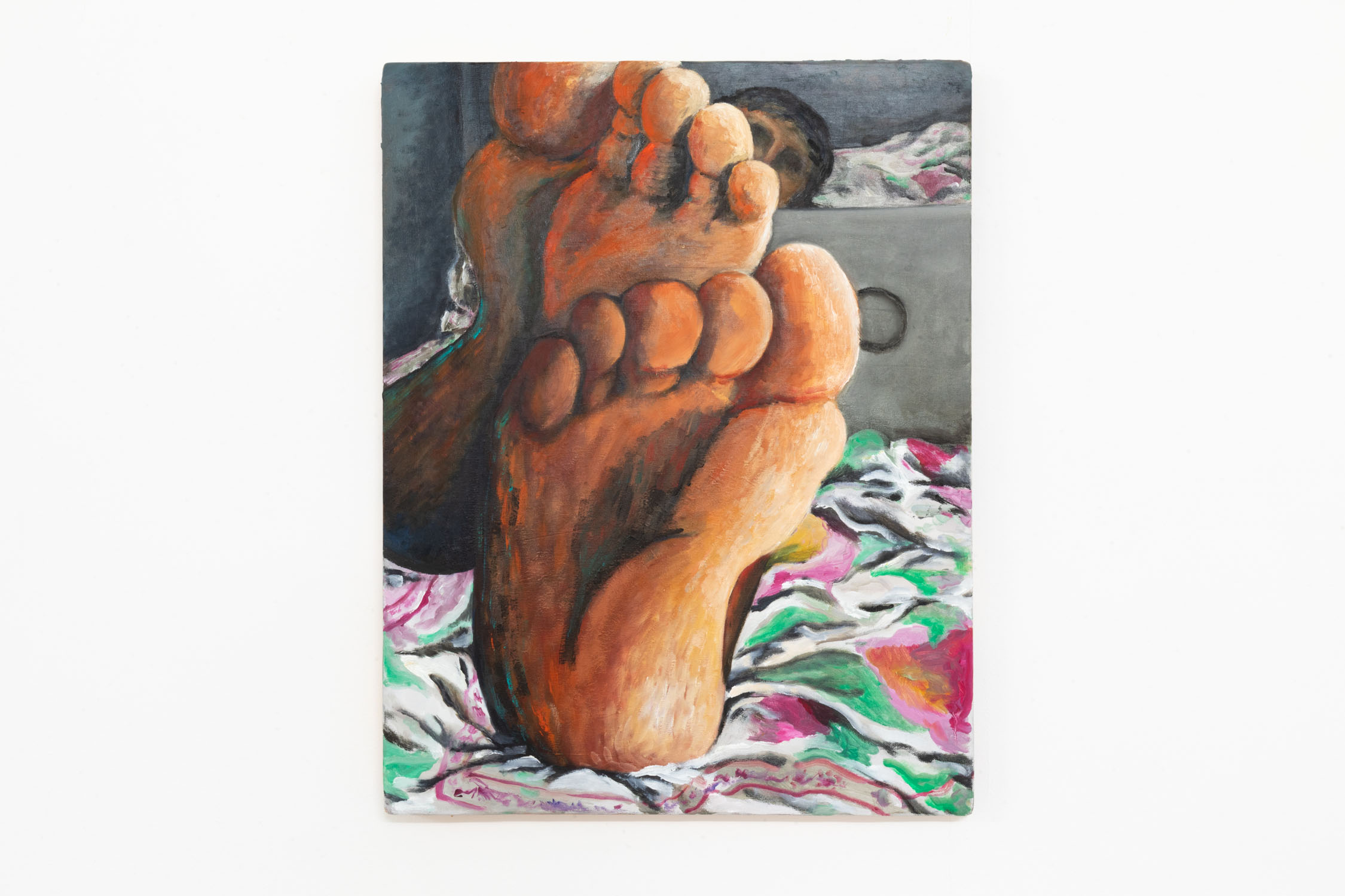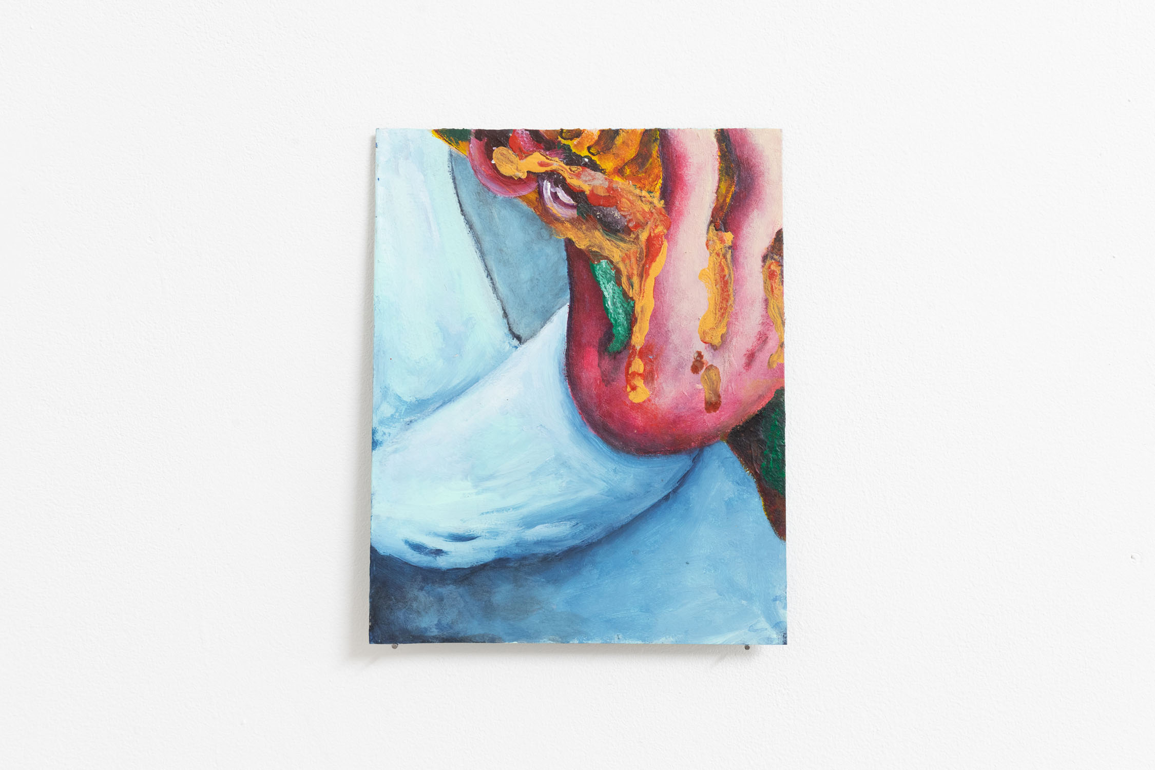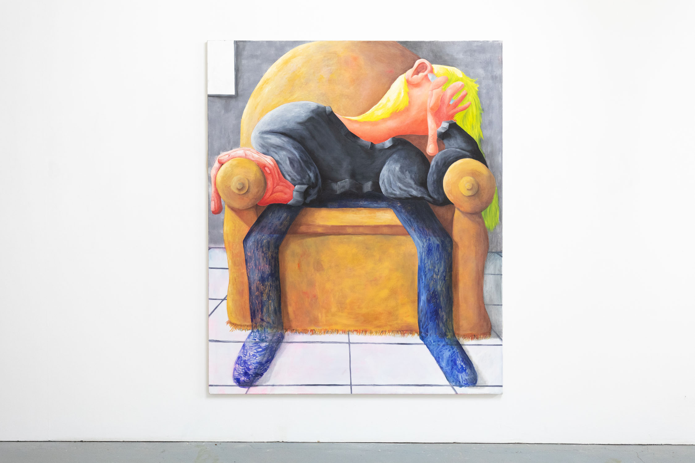 For the installation of Lazy Time, Riccardi has scattered a series of soft sculptures of smoked cigarettes throughout the spaces as if the exhibition is taking place in a waiting-room ashtray. Ricciardi portrays moments of intimacy, aloneness, as well as collective and social encounters, as distractions and passing time; smoking, sitting on the toilet doom scrolling, and hanging-out taking selfies. The characters of this world are exhausting themselves in pastimes and entertainment in more and more futile attempts to escape a profound boredom which threatens to destabilise how they bring meaning and value into their lives. This is not a boredom with things, but a more profound boredom that saturates and makes visible contemporary life.