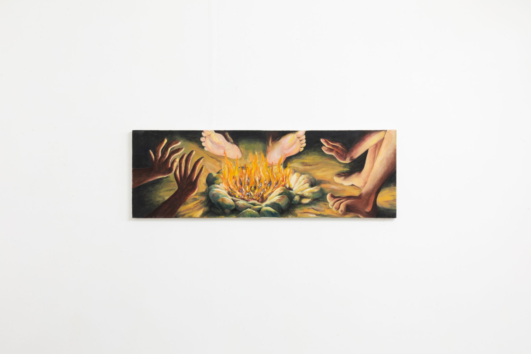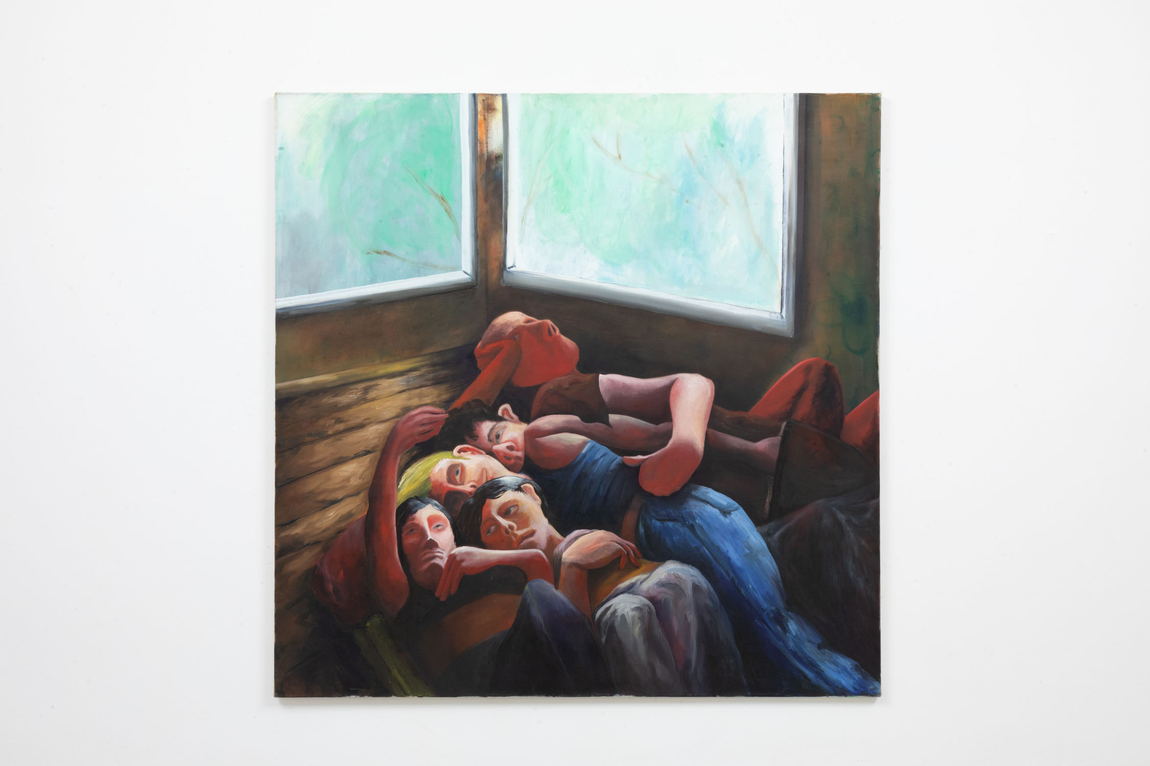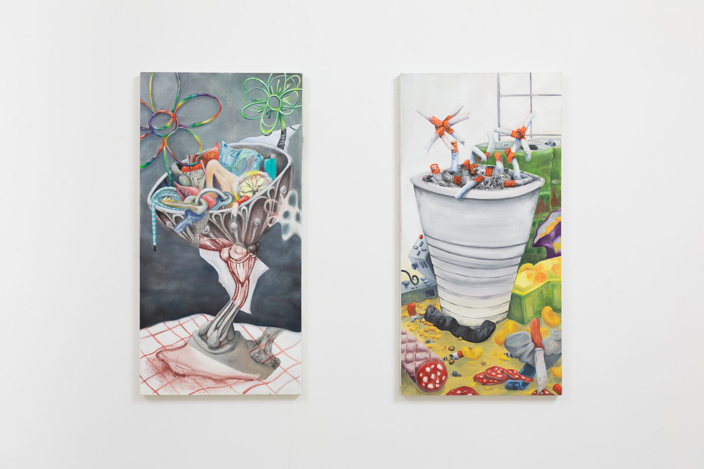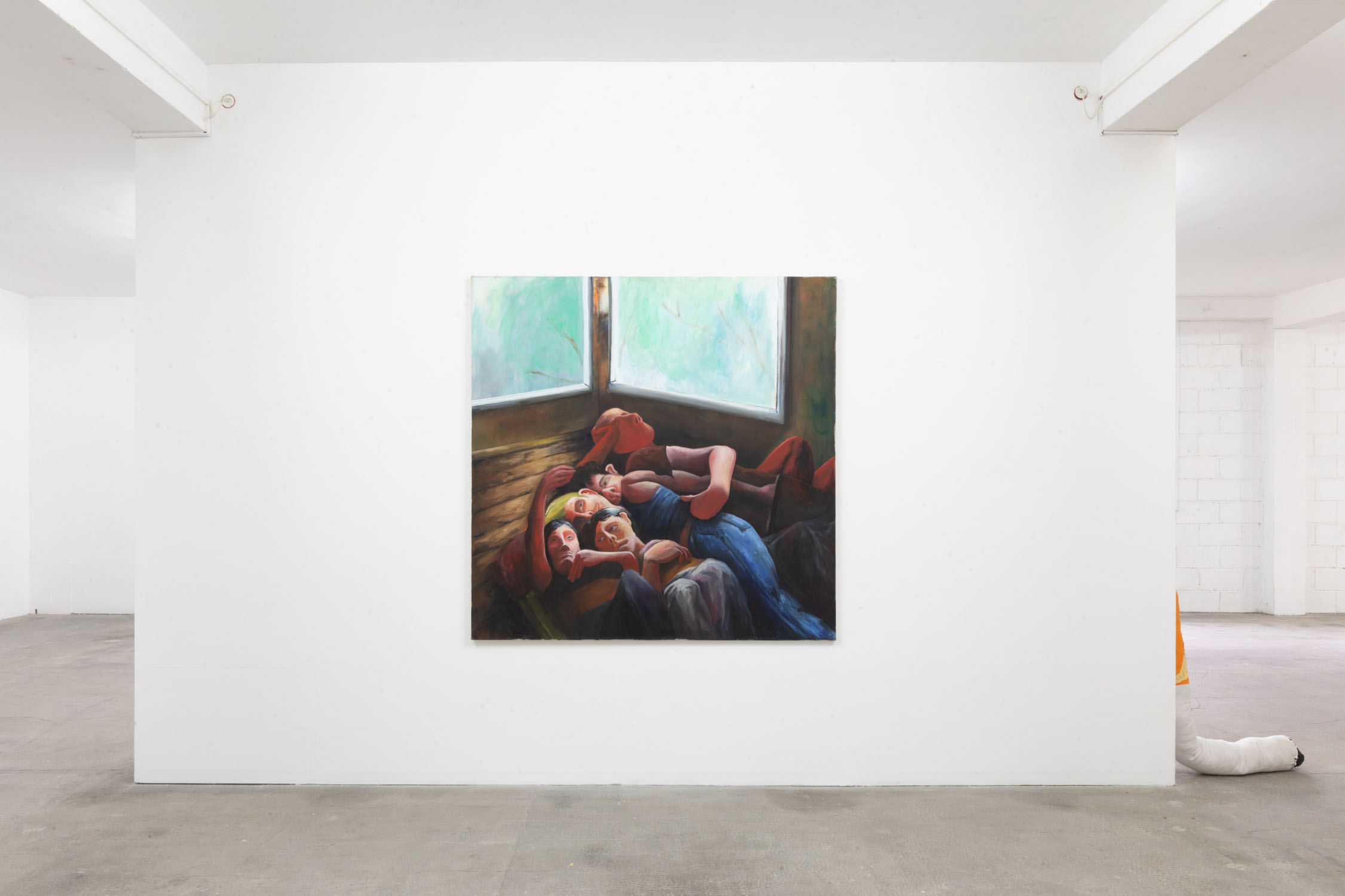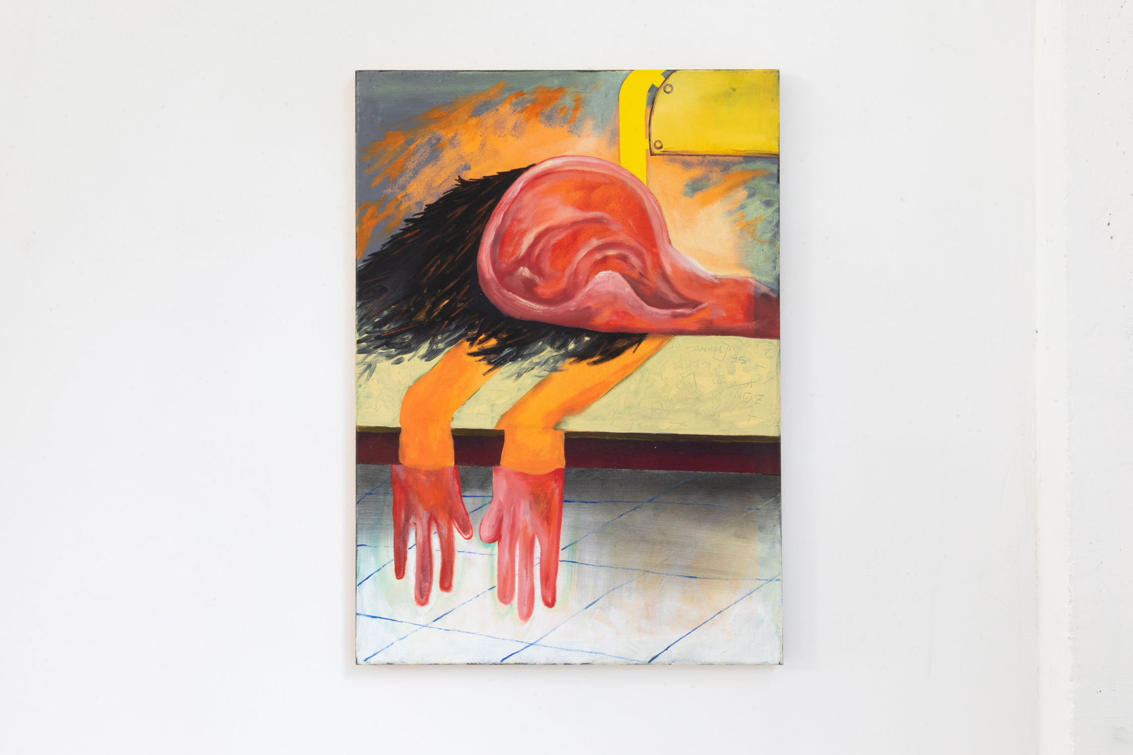 For the installation of Lazy Time, Riccardi has scattered a series of soft sculptures of smoked cigarettes throughout the spaces as if the exhibition is taking place in a waiting-room ashtray. Ricciardi portrays moments of intimacy, aloneness, as well as collective and social encounters, as distractions and passing time; smoking, sitting on the toilet doom scrolling, and hanging-out taking selfies. The characters of this world are exhausting themselves in pastimes and entertainment in more and more futile attempts to escape a profound boredom which threatens to destabilise how they bring meaning and value into their lives. This is not a boredom with things, but a more profound boredom that saturates and makes visible contemporary life.