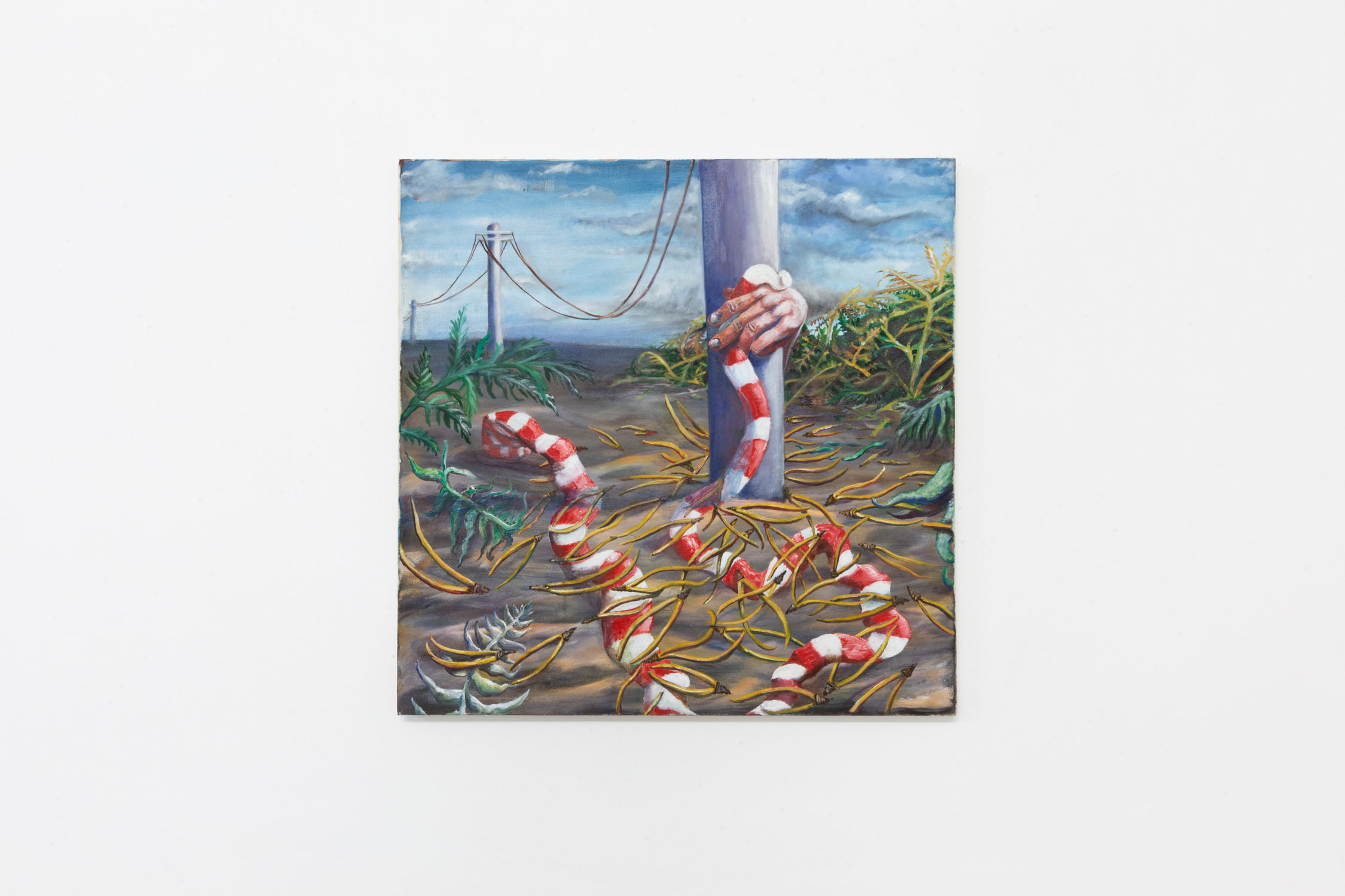 Ricciardi’s work unearths the Existential Tonality of our time, exposing its different attunements and individuations going beyond the conventional view of modern life as defined mainly by anxiety. He does this from a context of his own lived experiences with collectivity and rural life as well as documenting the impacts of technology and economic change in recent times. Despite its humour and playfulness, Ricciardi’s work acknowledges an uncanny and disturbing inflection to contemporary life, which he depicts through nearly-deformed cyborg-monsters and other post-human beings who are only slowly becoming aware that they are not who they think they are. But these paintings are not judgmental, they are rather an attempt to see ourselves clearly and to even propose this ‘monsterism’ as a critical mode of being; of amplifying and over saturating our notions of time and action.