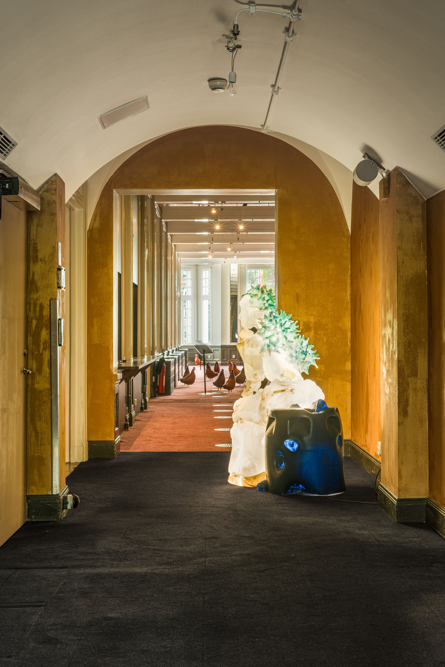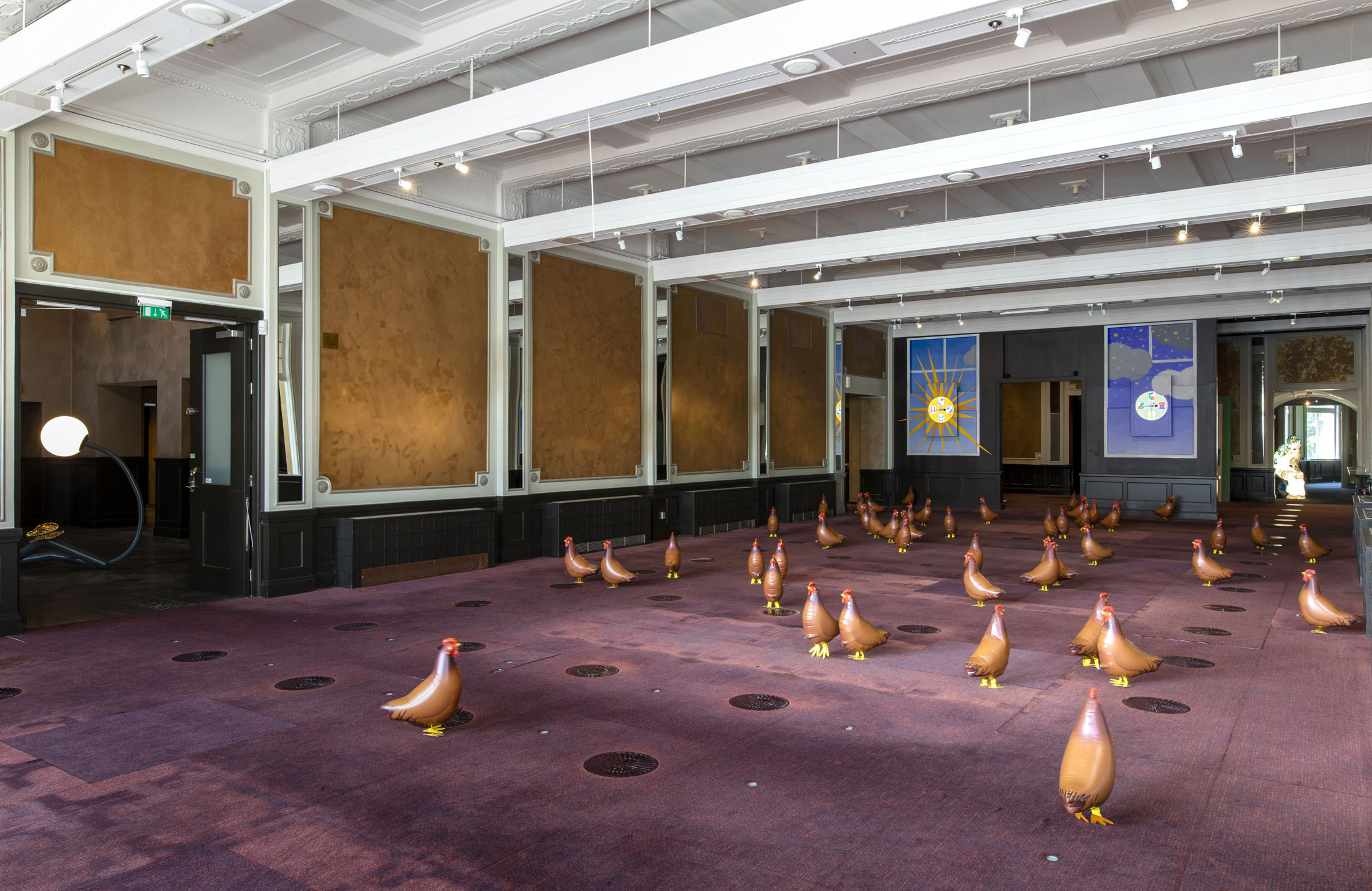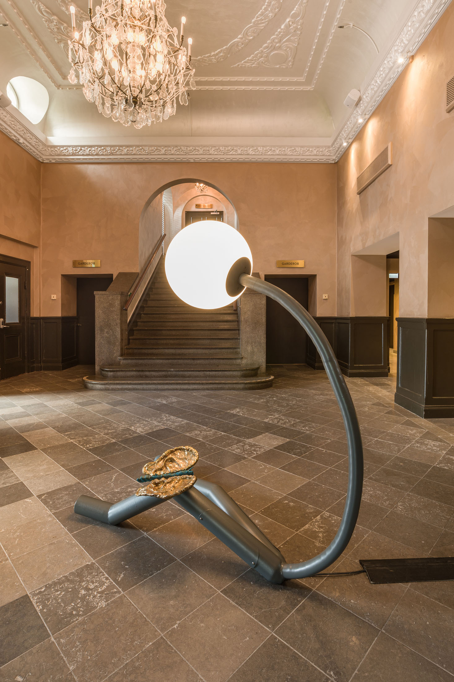 Matti Sumari presents new sculptures that engage in dialogue with the building’s eclectic history, as well as with the Franciscan monastery and the herbaceous garden that was located on the site during the 1400s. Viktor Timofeev’s large-scale installations engage the arbitrary nature of time and language, and concern migration, mother tongues, and alienation. Jaakko Pallasvuo has explored the mechanisms of gambling in relation to the pursuit of personal improvement or social mobility, as well as the aesthetics connected to notions of luck and the accumulation of wealth. Benedikte Bjerre’s installation explores relationships between the individual and the collective, as well as modes of control, and their limits.