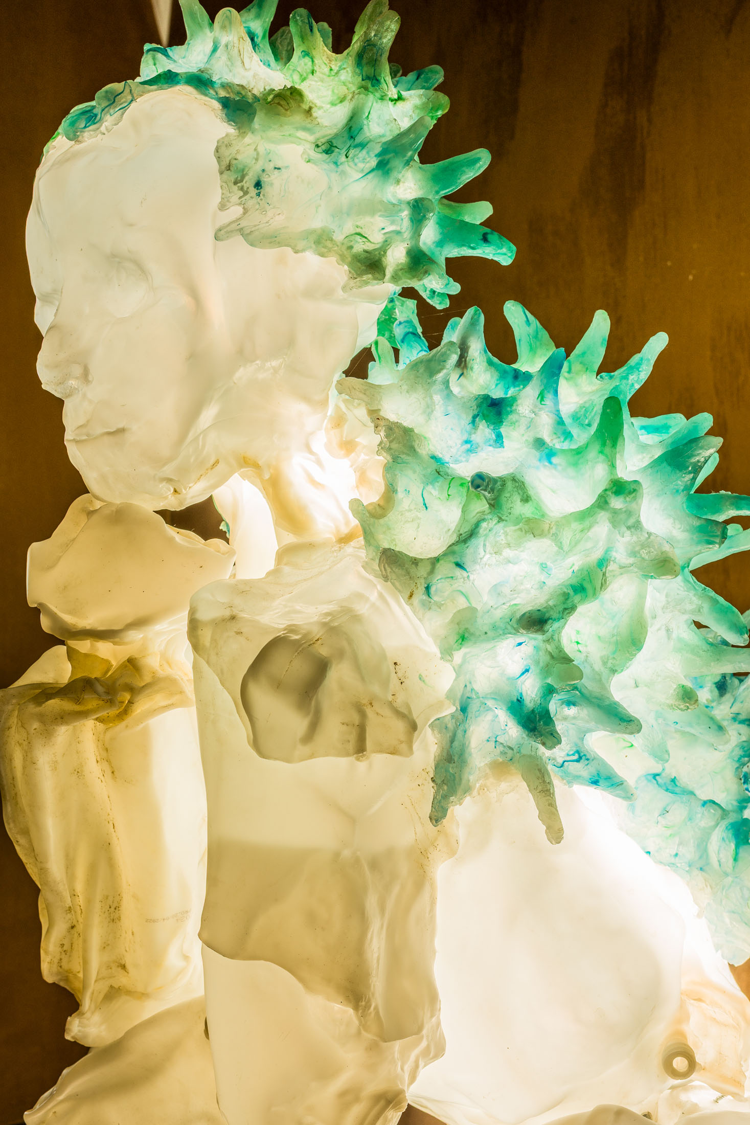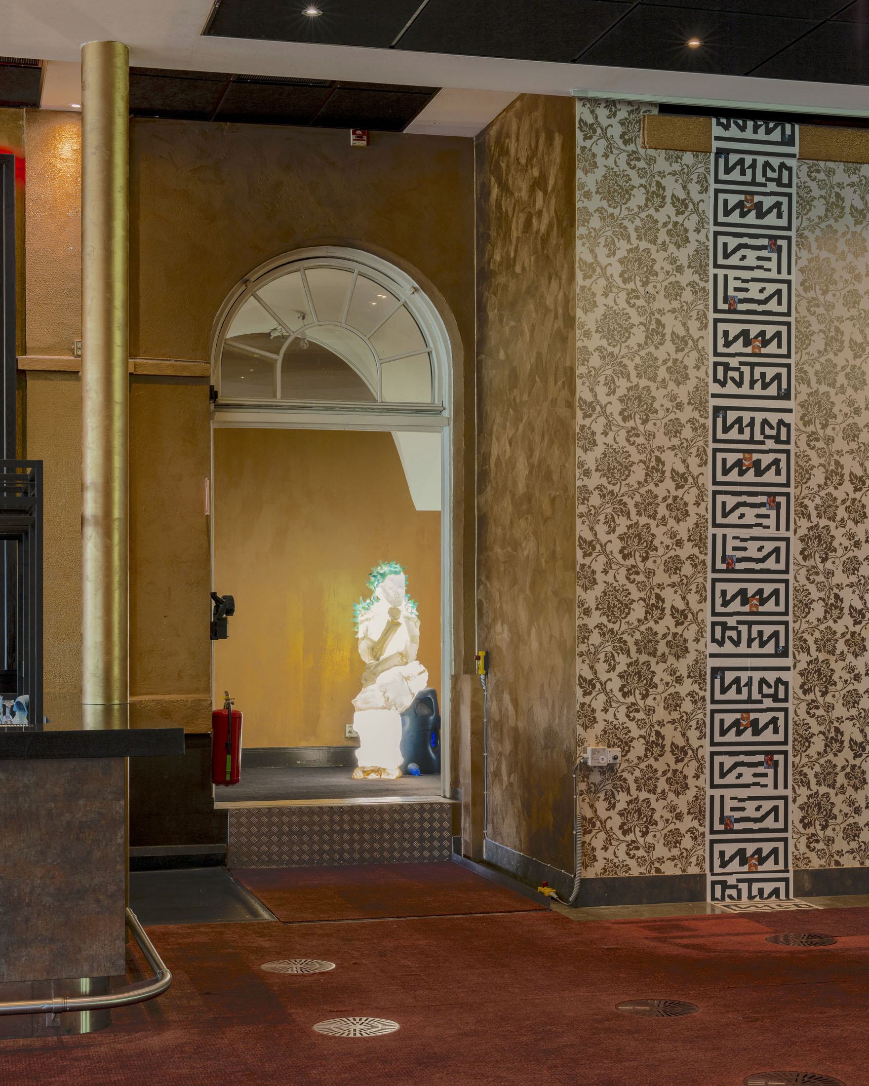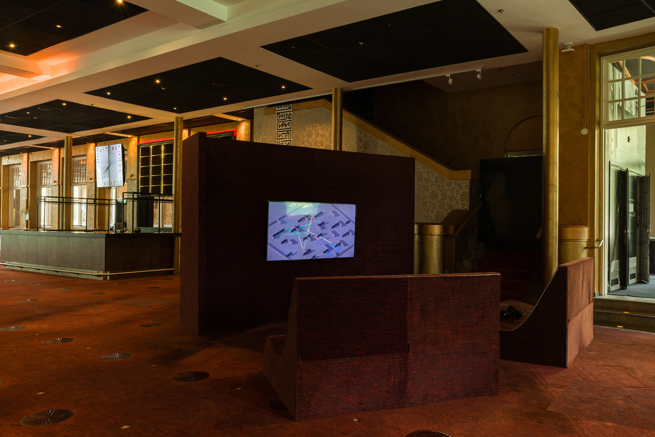 The experience of entering an abandoned building can be similar to visiting an exhibition; it focuses one’s attention and heightens one’s senses. The ambition behind the group exhibition ‘Patience (game)’ is to present a total installation incorporating the artworks within the former casino’s interior. Ghostly figures in the dimly lit rooms. Remnants of what once was, all the shattered dreams, and layers of stories embedded in the walls.
