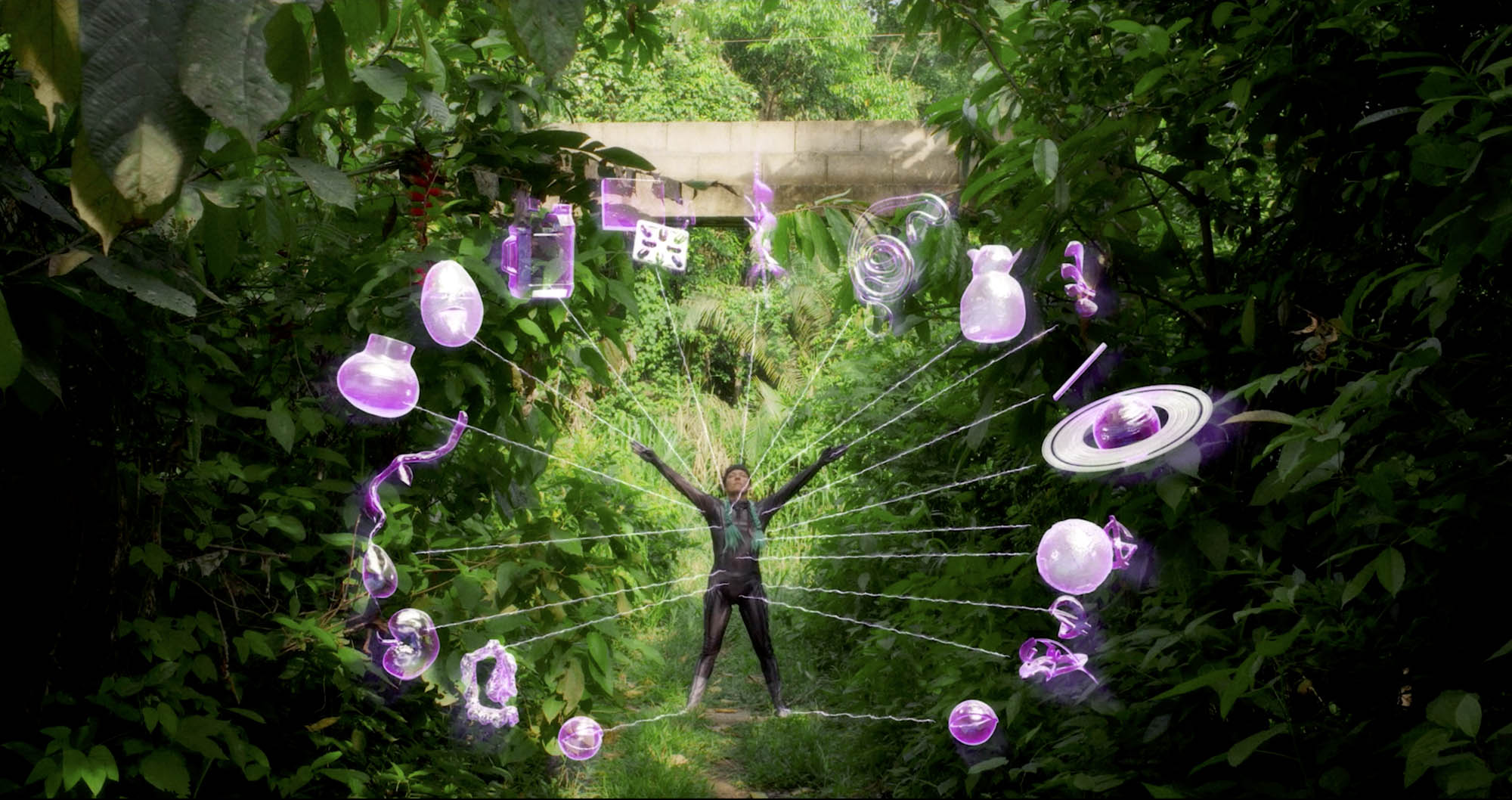 Matrix Vegetal is a video piece developed in the Madre de Dios Forest in Peru, created between Domínguez’s research periods at CERN, with a focus on expanding her understanding of the invisible through learnings in the vegetal and spiritual universe. Like entangled particles, Domínguez’s work sees resonances between quantum physics, spirituality, and theories of interspecies interconnection. Through video art, sculpture, photography, and watercolor, technology and science are explored and communicated outside of taxonomic rationalism, and instead, through emotion, spirituality, and, at times, humor. Her works thus invite us to reflect on the colonial and patriarchal histories of how Western science is communicated and represented in language and visual culture.