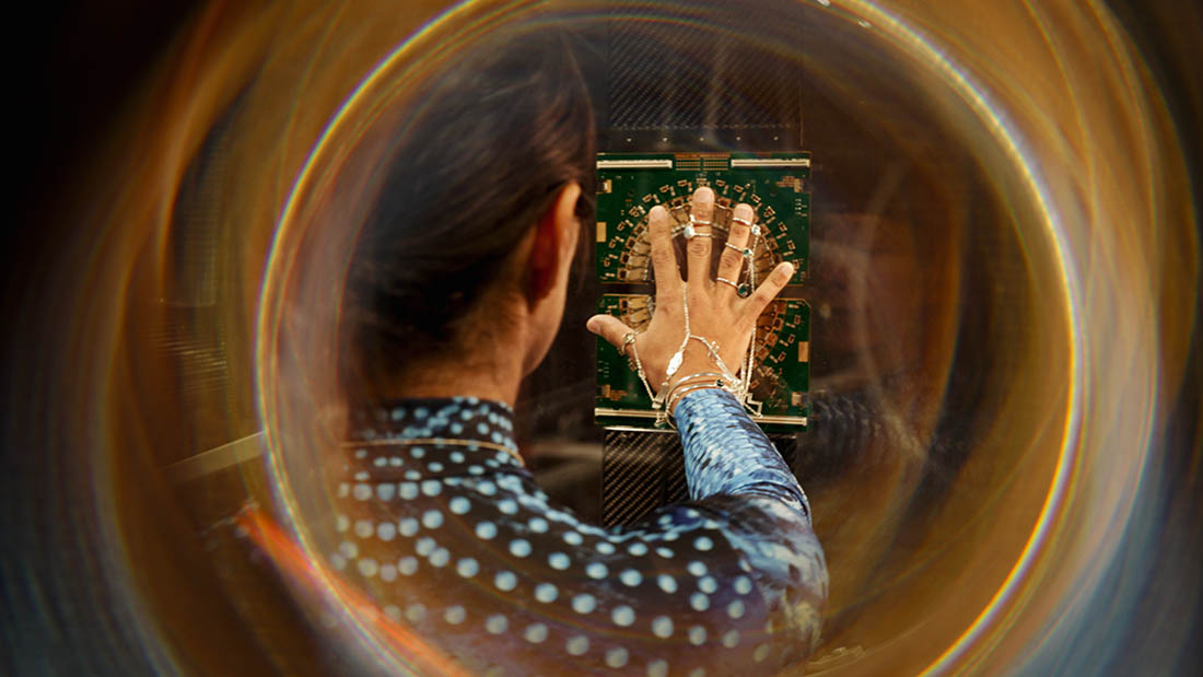 Between 2021 and 2024, Patricia Domínguez participated in an artistic residency at the European Organization for Nuclear Research (CERN) in Geneva, at the astronomical facilities of the ESO, and at the ALMA and La Silla observatories in the Atacama Desert, Chile. The pieces exhibited in this show relate to the artist’s research in these contexts, specifically exploring species entanglement through the lens of quantum physics.