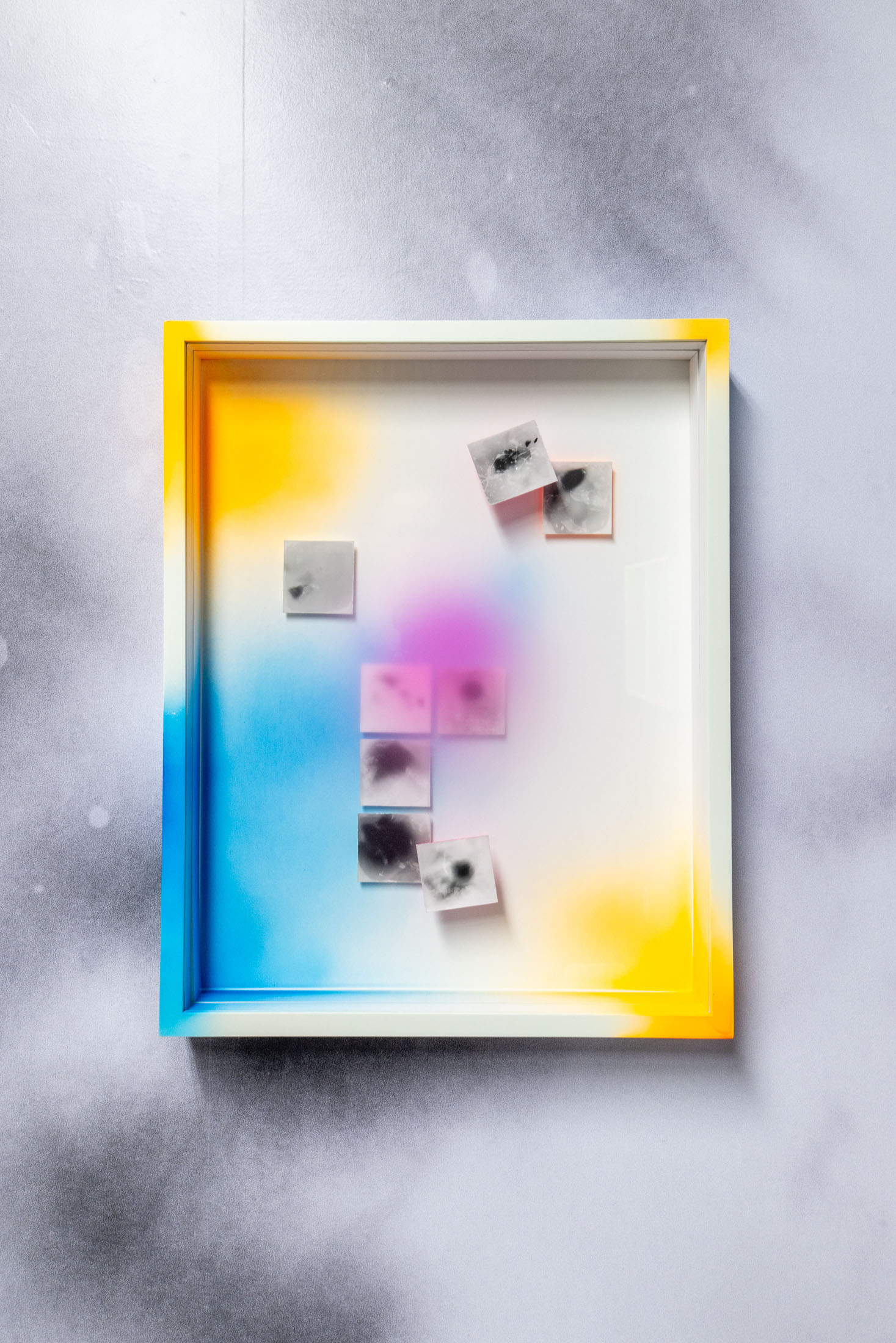 Utilizing their lips, tongue, airways and fluids, Stasieczek holds the referent, that which is depicted, literally in their skull—legible, once developed, mostly as abstraction. The contents of their mouth contaminate the chemistry of the black & white process, pushing against the prescribed becoming of silver halides into metallic silver, rehashing analog photography as a form of alchemy. These operations probe the aesthetic threshold between the interior and exterior of the body as a minor camera obscura which relays otherwise fleeting images that, incessantly, the mouth produces.