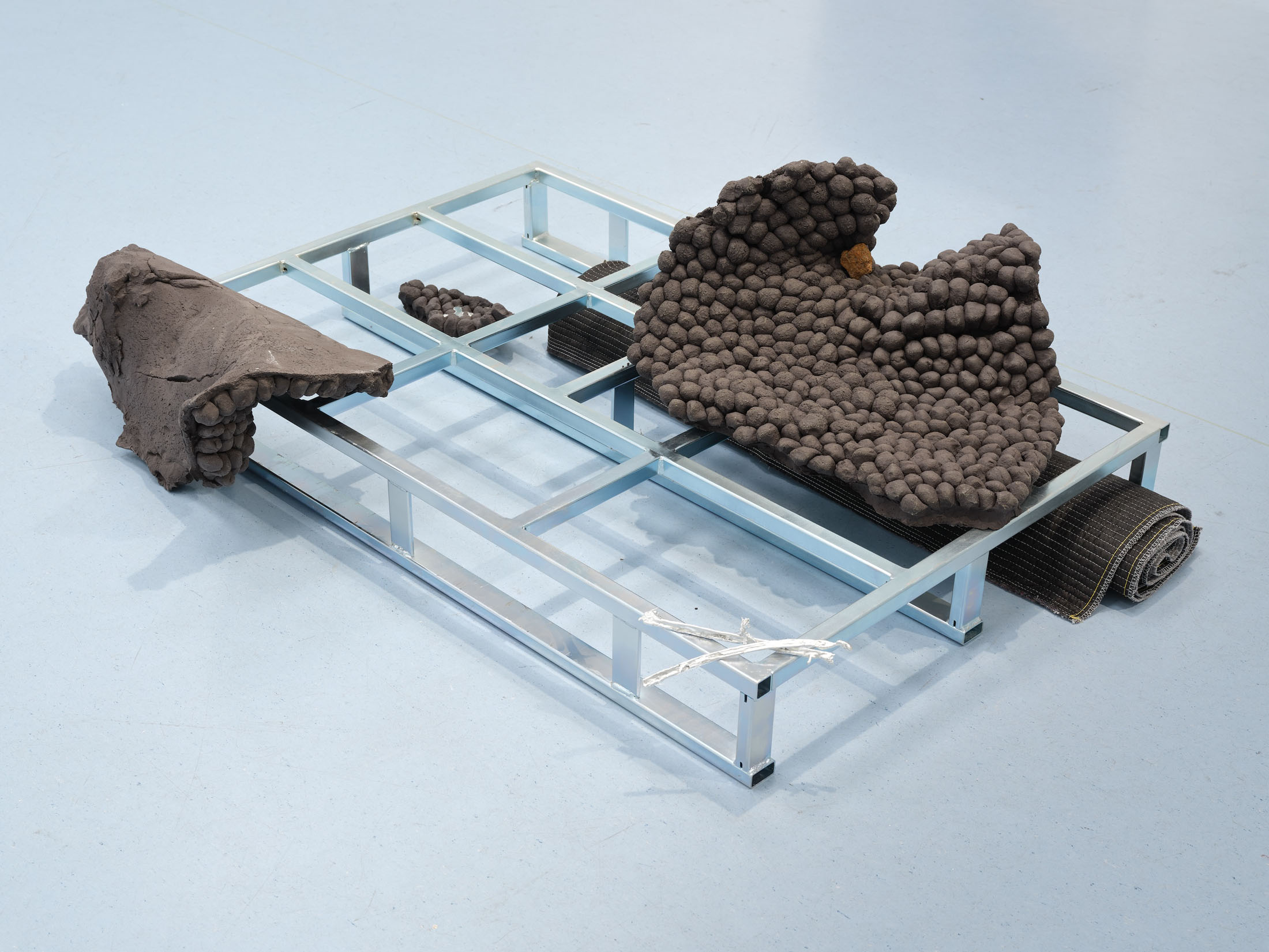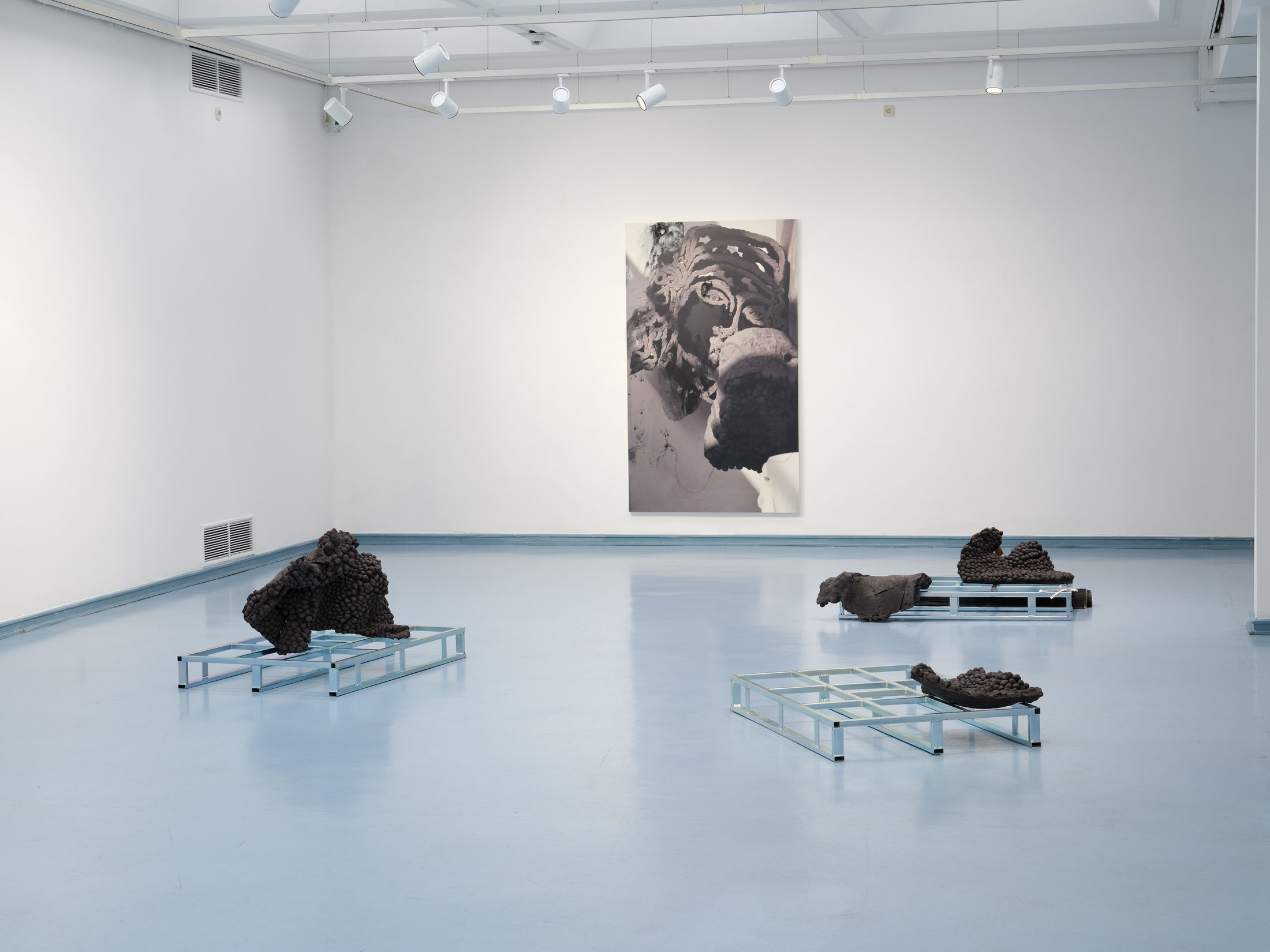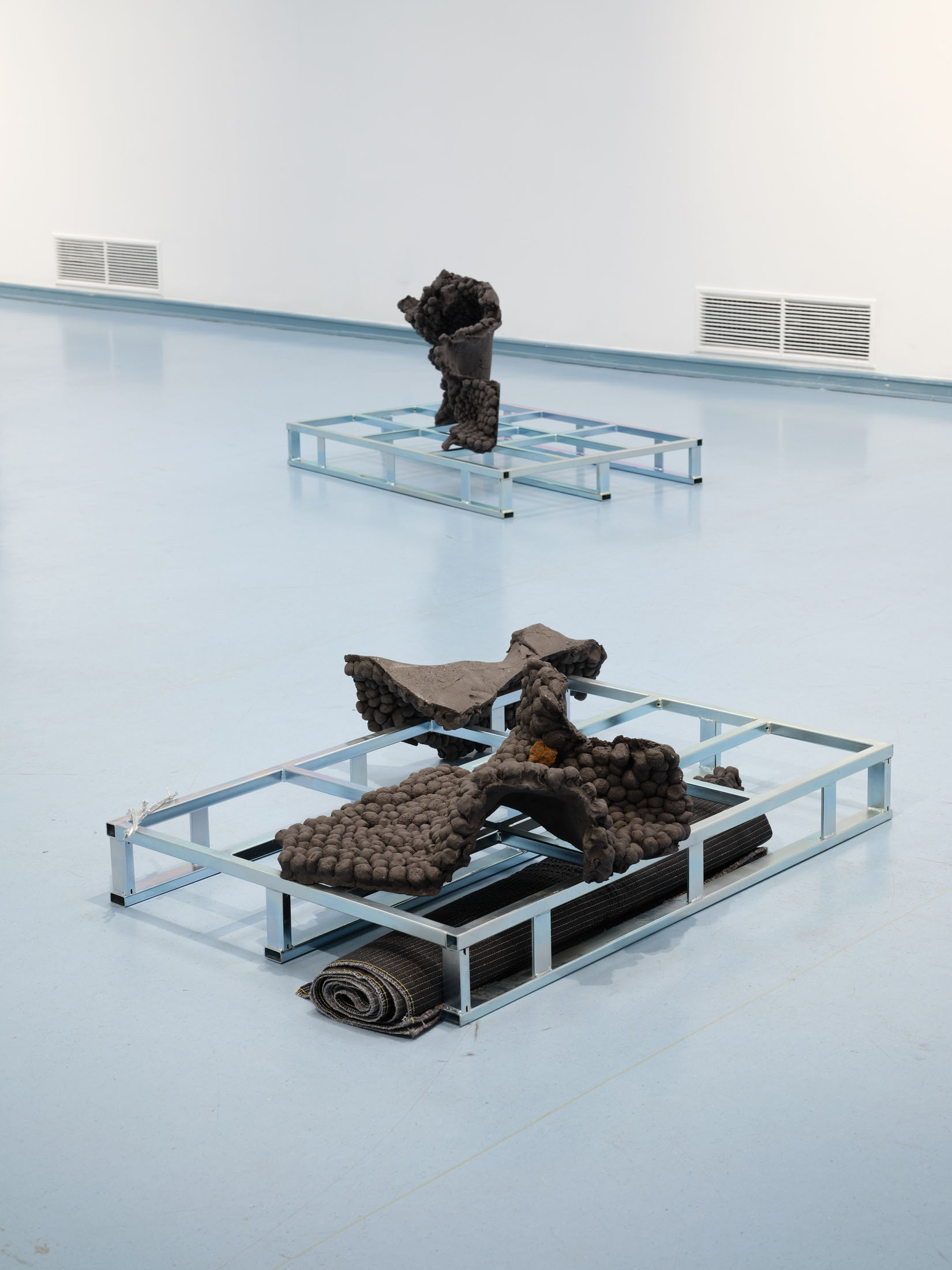 The exhibition h₁ésh₂r̥ explores hybrid spaces and the themes of transformation and transience. The title refers to the Proto-Indo-European word for ‘blood’, symbolising life and sacrifice, as well as the connection between body, earth and metal – central motifs that permeate the mythology, materiality and artistic practice of Peles Duo.