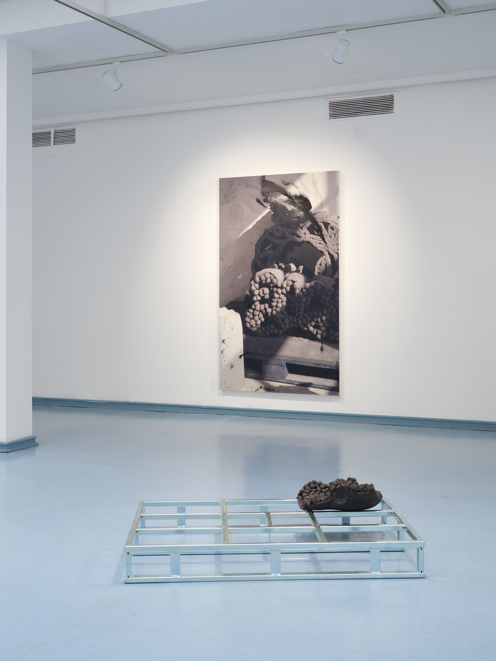 The exhibition revolves around metamorphosis, the dissolution of boundaries and rhizomes – concepts described by Gilles Deleuze as “unlimited finitude”. Points of reference include the mythological figure of Cybele, rituals of transformation and burial, and the pomegranate as a symbol of transition and duality. Artistic reflections on bodies and traces extend the discourse on materiality, reproduction and hybridity, creating a dynamic tension between past and present.