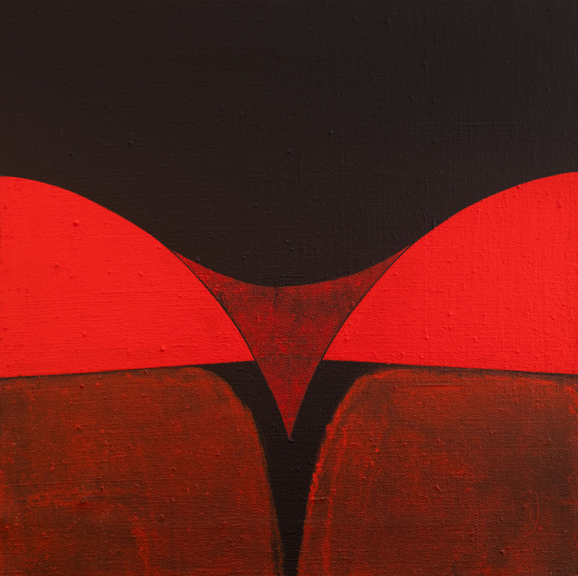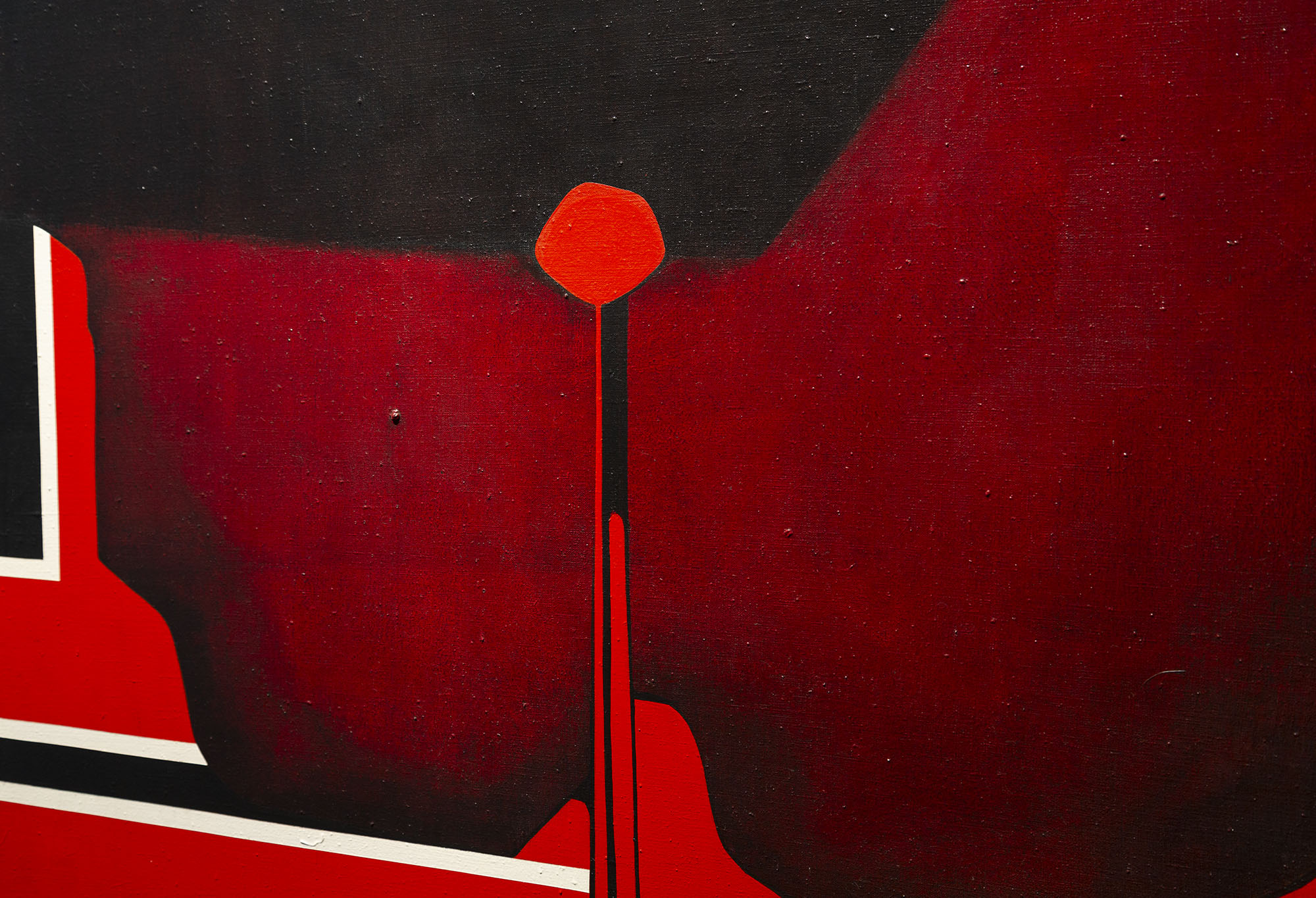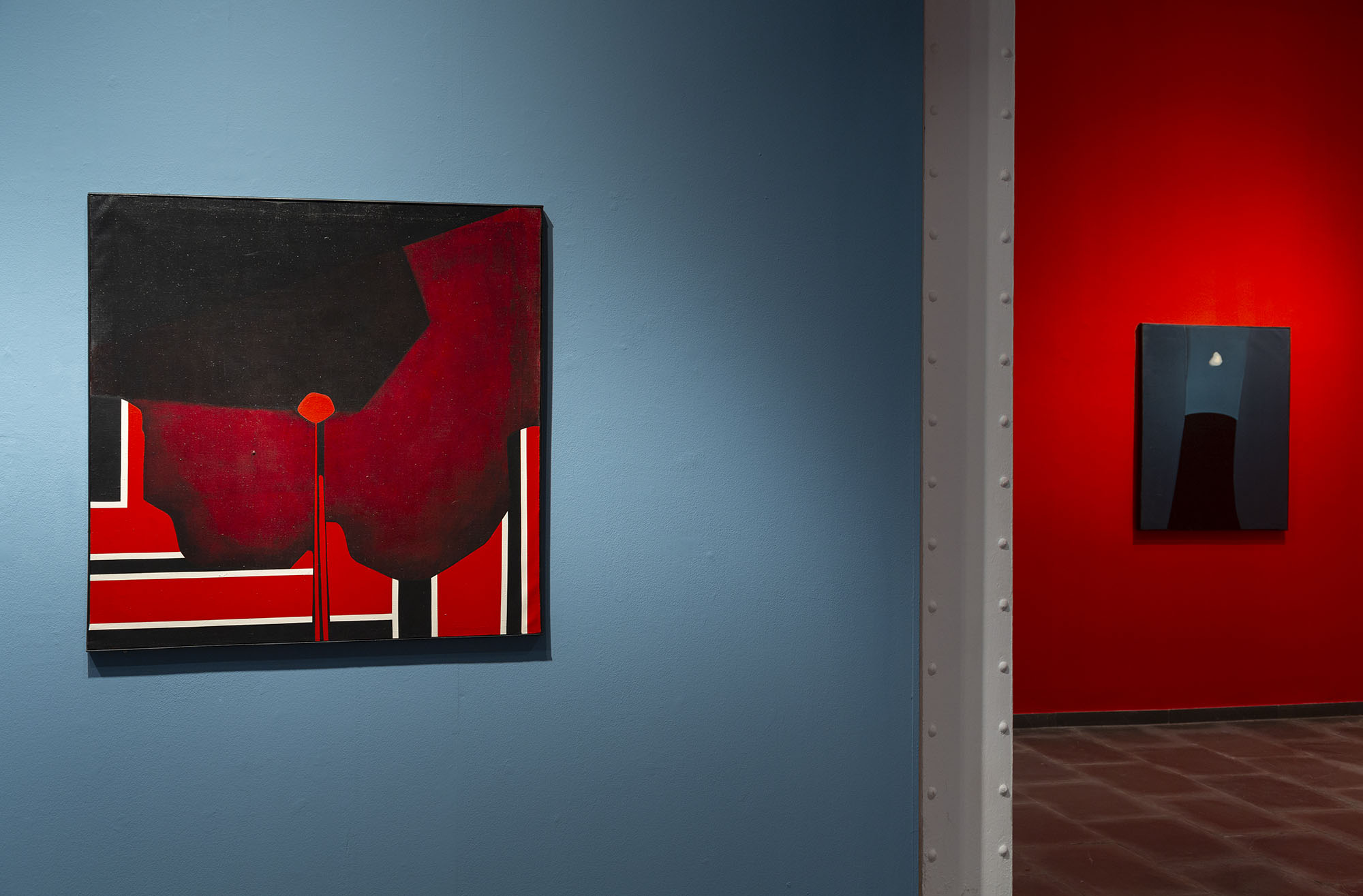 In the 70s, unlike her earlier work, Pepa Caballero moved among languages subject to doubts, hits and misses, as well as experiments in form and also cooking. And she did this without betraying herself and without diminishment. As one can see in the exhibit, the artist did not place herself in any acceptable way in any type of specific abstraction during these first steps, Occasionally she took refuge in resources of informalist abstraction, and at other moments leaned towards choosing to paint organic shapes, with abundant circular-like examples while also painting where the geometric parameters ruled. It is interesting to see how she dares in one painting — there may be more but we may never know— to experiment with a zero degree of painting; the work is divided in two horizontal colour parts —red and black— close to minimalism. This is a minimalism that makes use of hessian or burlap, the poor but versatile material of Spanish informalism. Thus, in the 70s Caballero was an experimental and unorthodox painter.