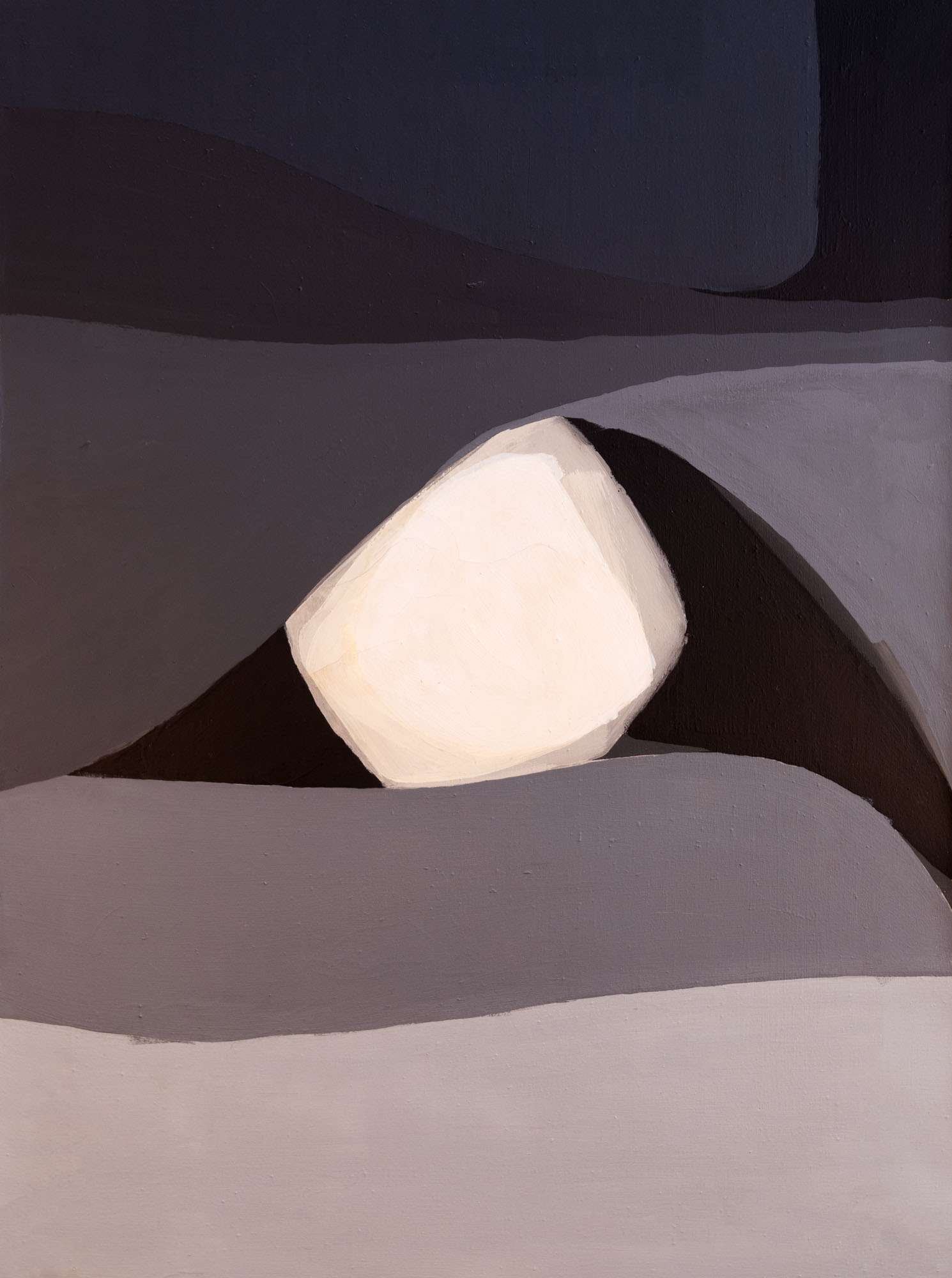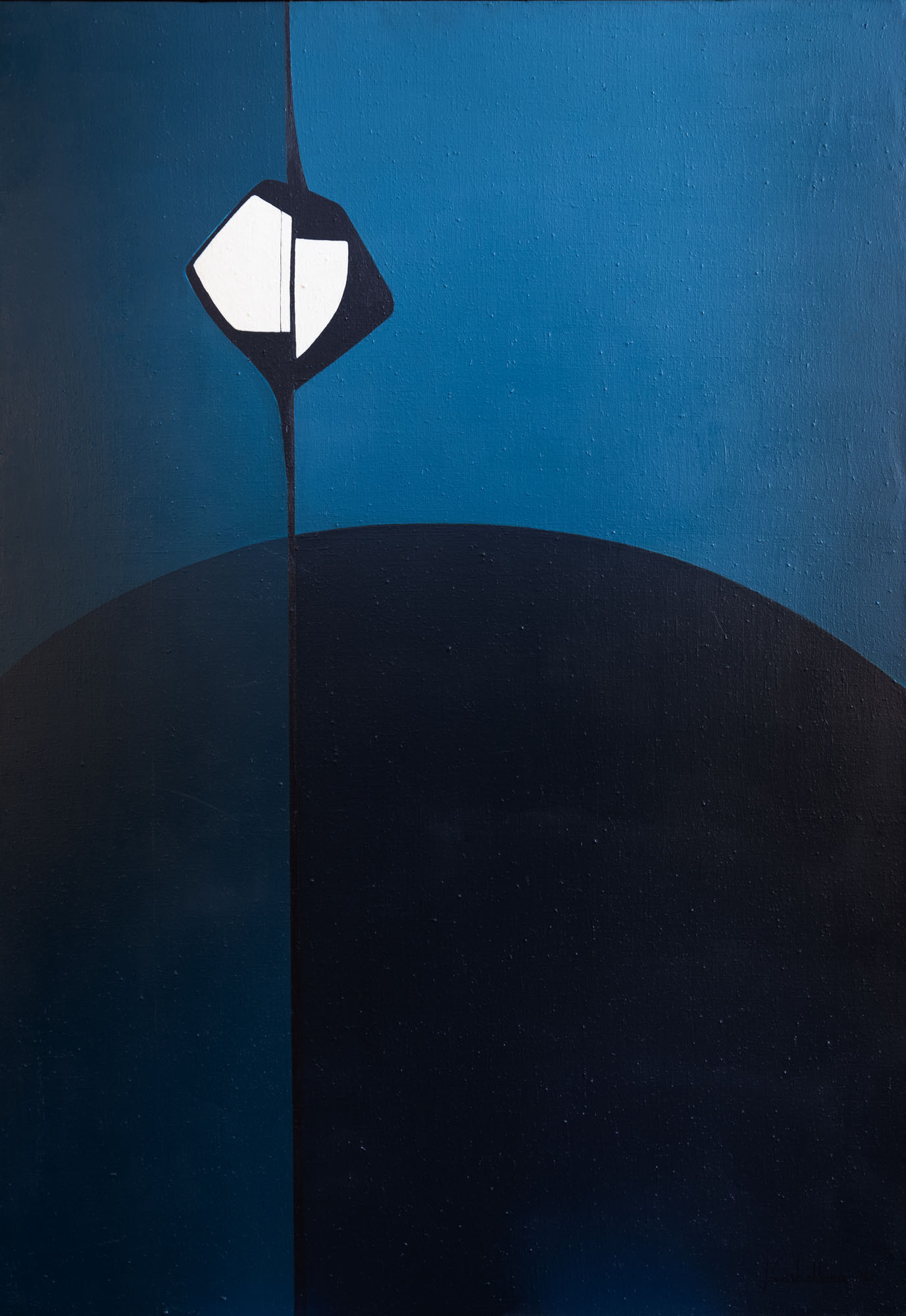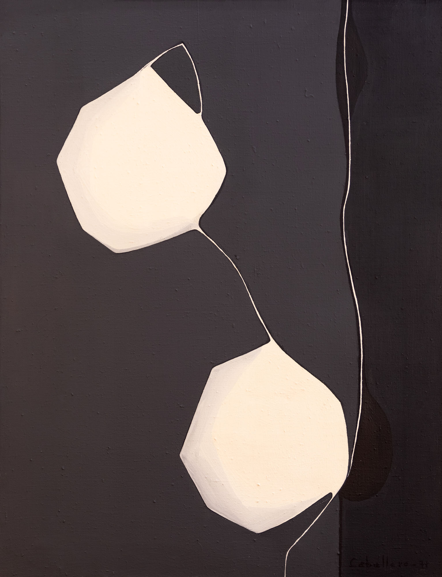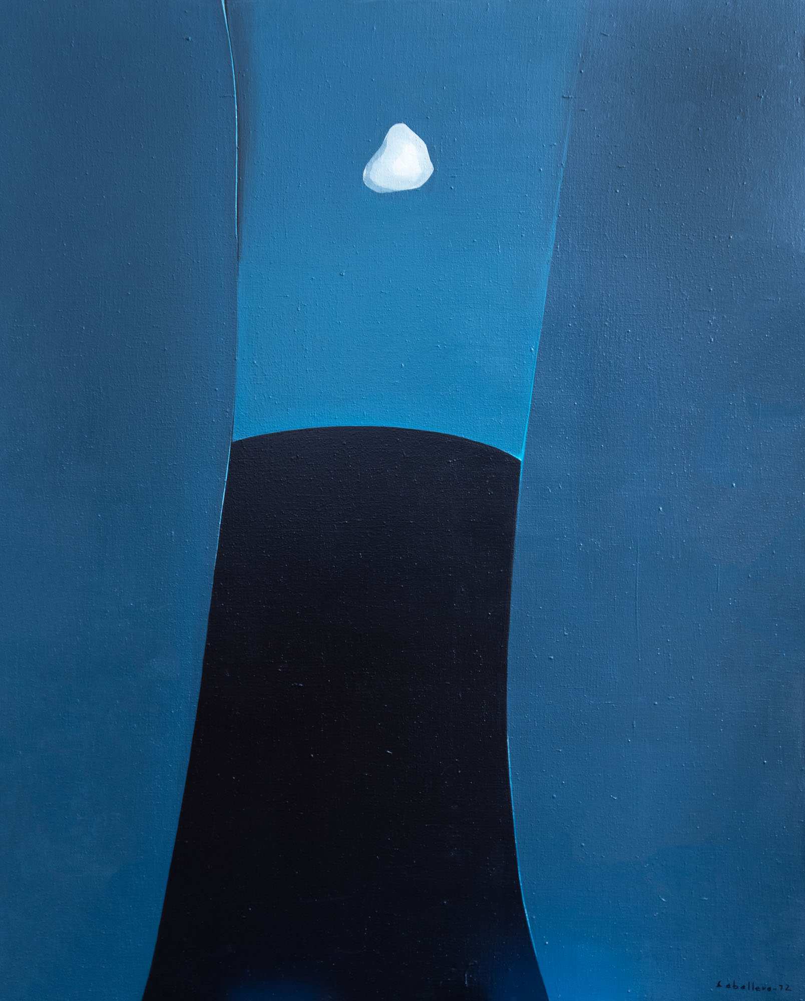 In some of these pieces Pepa Caballero will continue to compound the idea and format of the still-life by placing the ball in a line that could represent a table, a horizonal containing space. Sometimes there are two spheres, at others there is just one isolated shape. Soon, however, this last figurative reference disappears.