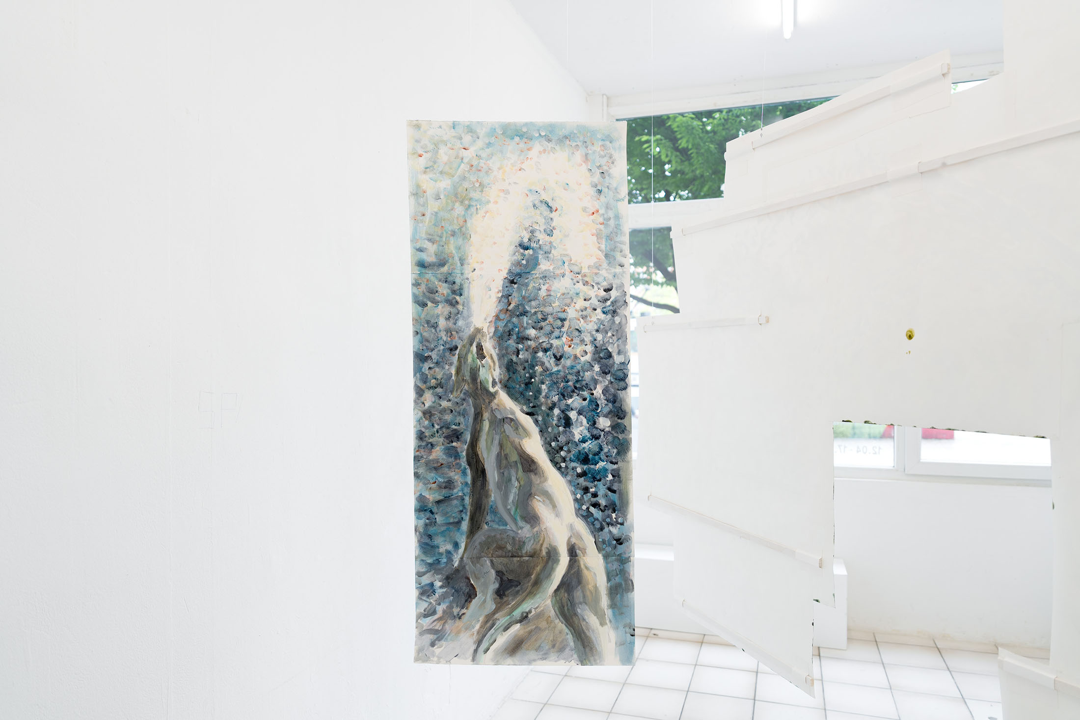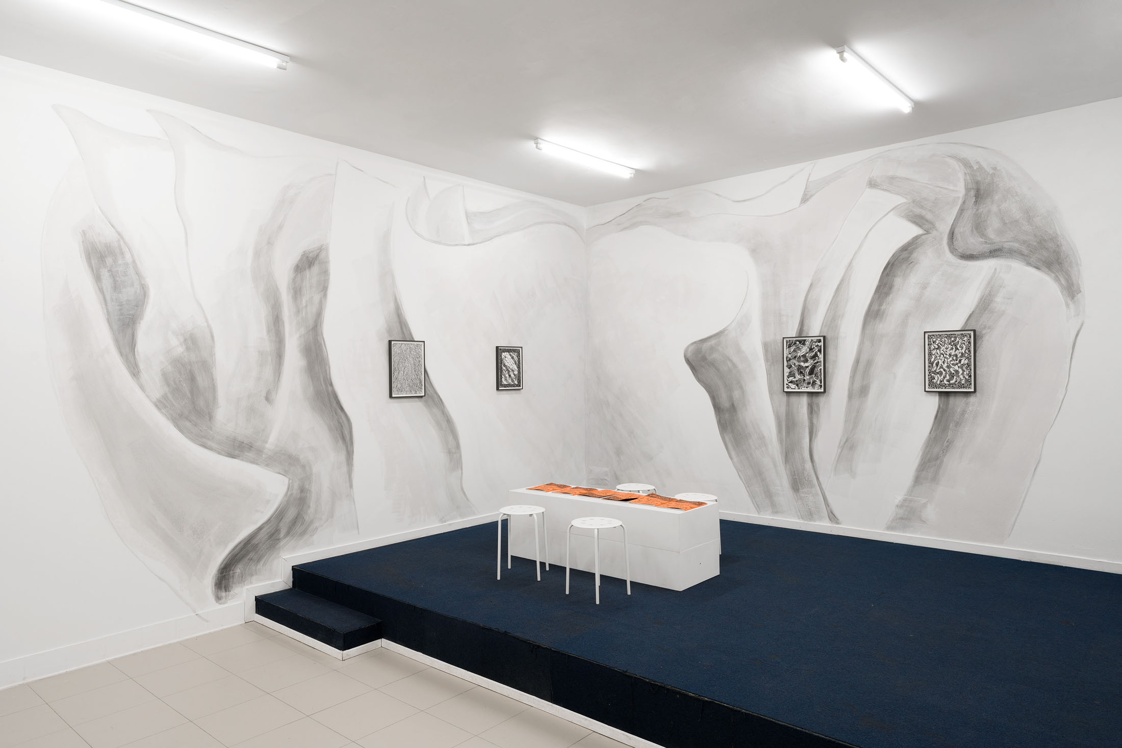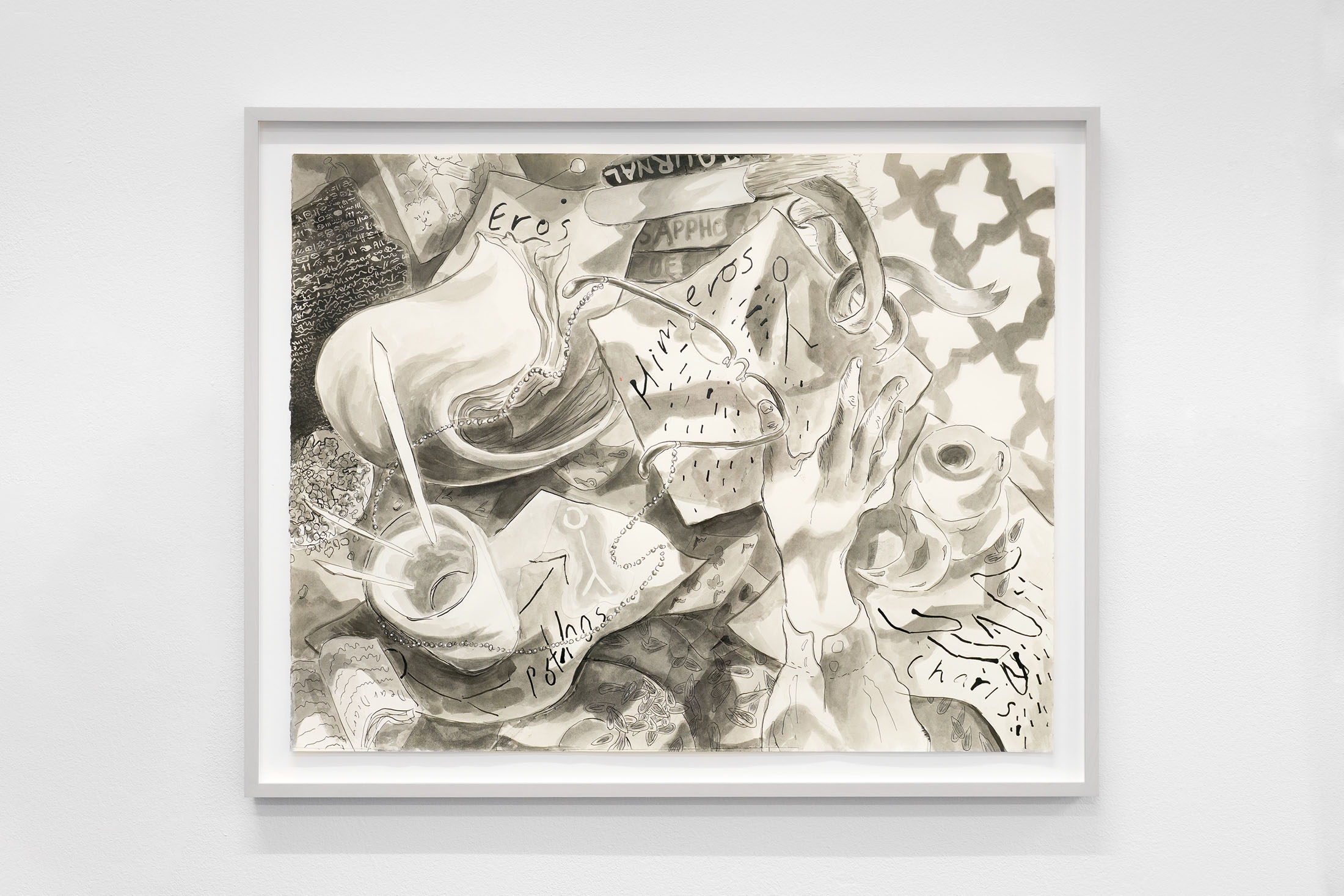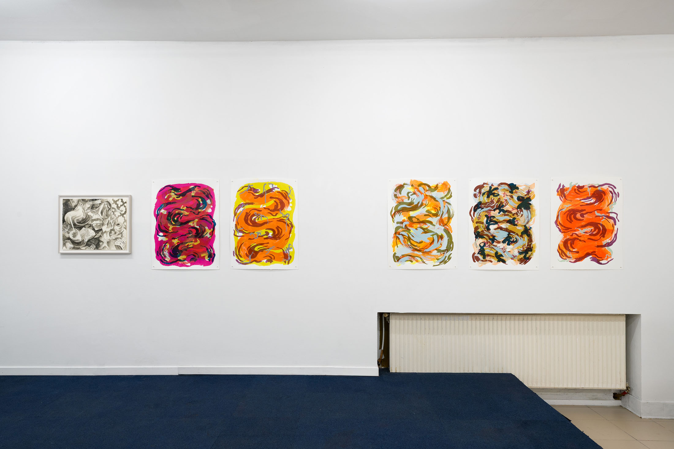 For Komplot, Perri MacKenzie will present a new installation of large-scale collage paintings on paper depicting the animal fountains of Sainte-Catherine, Brussels (sculpted by Georges Houstont and Godefroid Devreese, c.1895). For MacKenzie, the water gushing out of the fountain’s mouths is an energetic materialisation of voice, which is further amplified by the unruly dimensionality of the paintings. The exhibition additionally brings together drawings and screenprints alongside a presentation of her book. A graphical way of thinking pervades the works in the exhibition: an exploration into the leaky spaces of image, line, text, and voice.