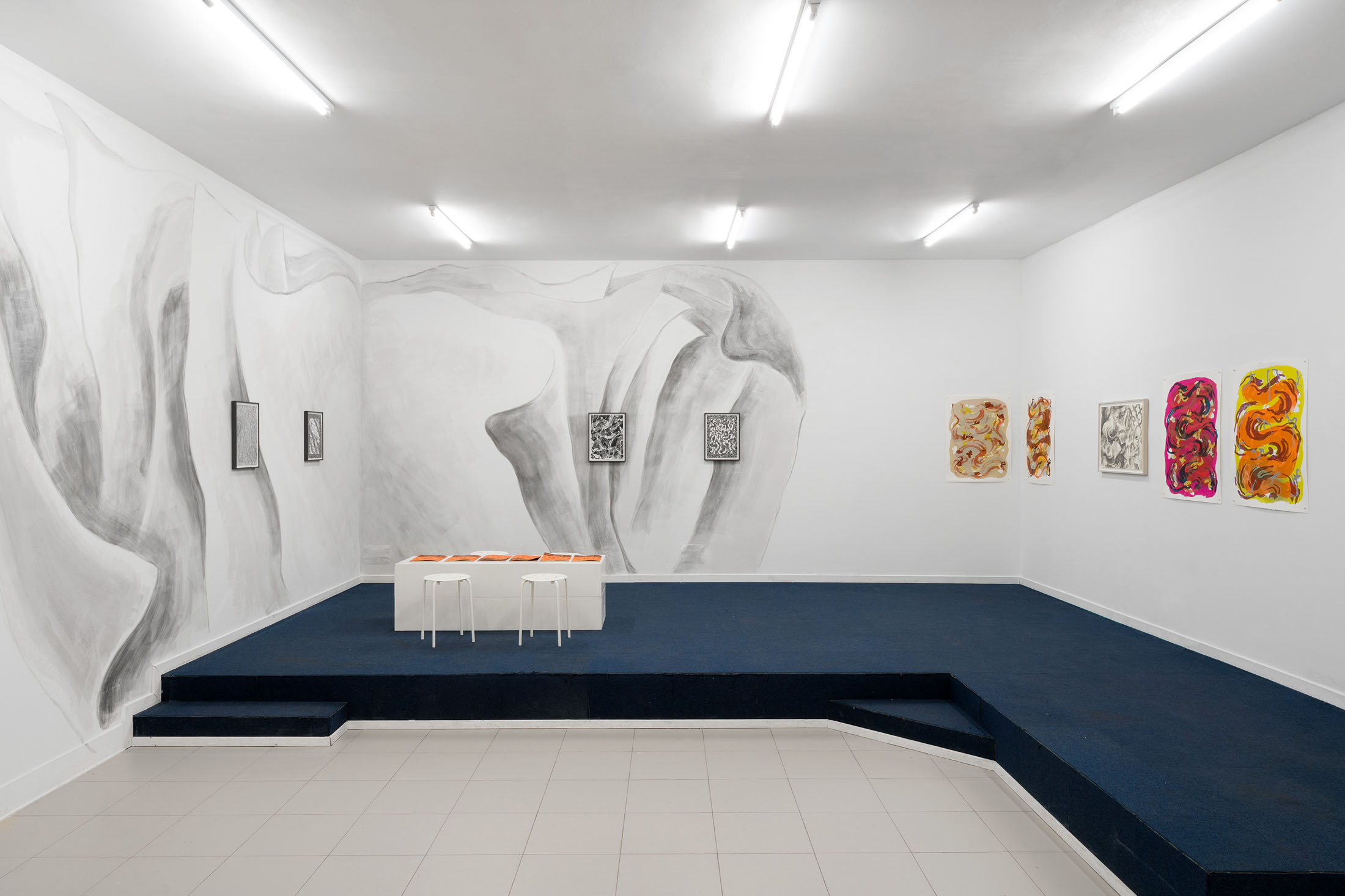 Perri MacKenzie is a Scottish painter and writer based in Brussels. Her artistic production comprises paintings, drawings, screenprints, and texts. A fascination with the material world and how it is interpreted permeates her work. Her bold and immersive compositions invite us to ‘read’ them, to engage in pictorial puzzles and textural fantasy. There is a theatrical energy in her expressive works on paper; at the same time an editorial attitude collages her works into multi-part publications and exhibitions.