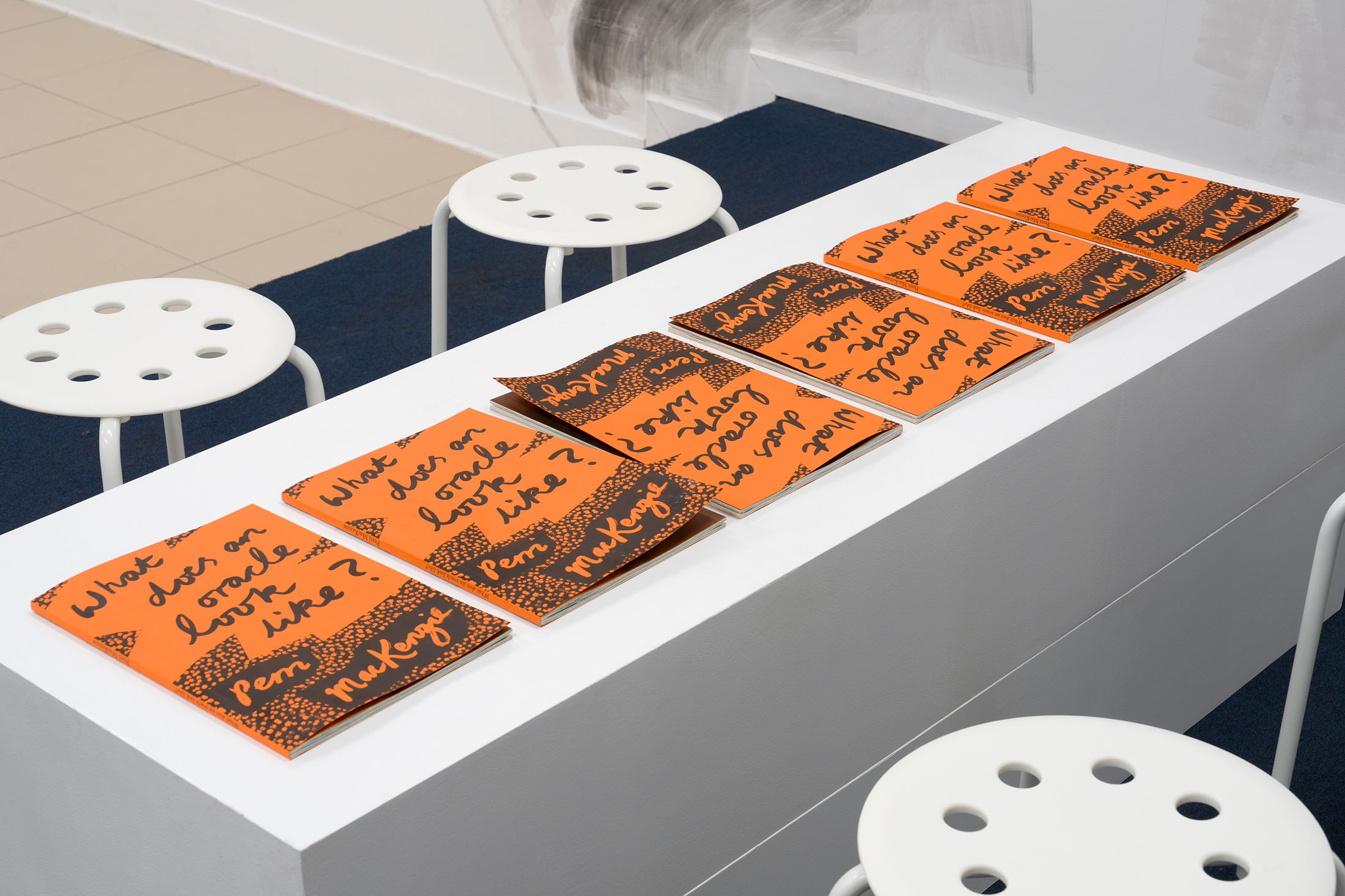 What does an oracle look like? is written and drawn by Perri MacKenzie, with design by Ilke Gers. It is printed as an offset edition of 400 by robstolk Amsterdam. Published by Leaky Press, 2025.