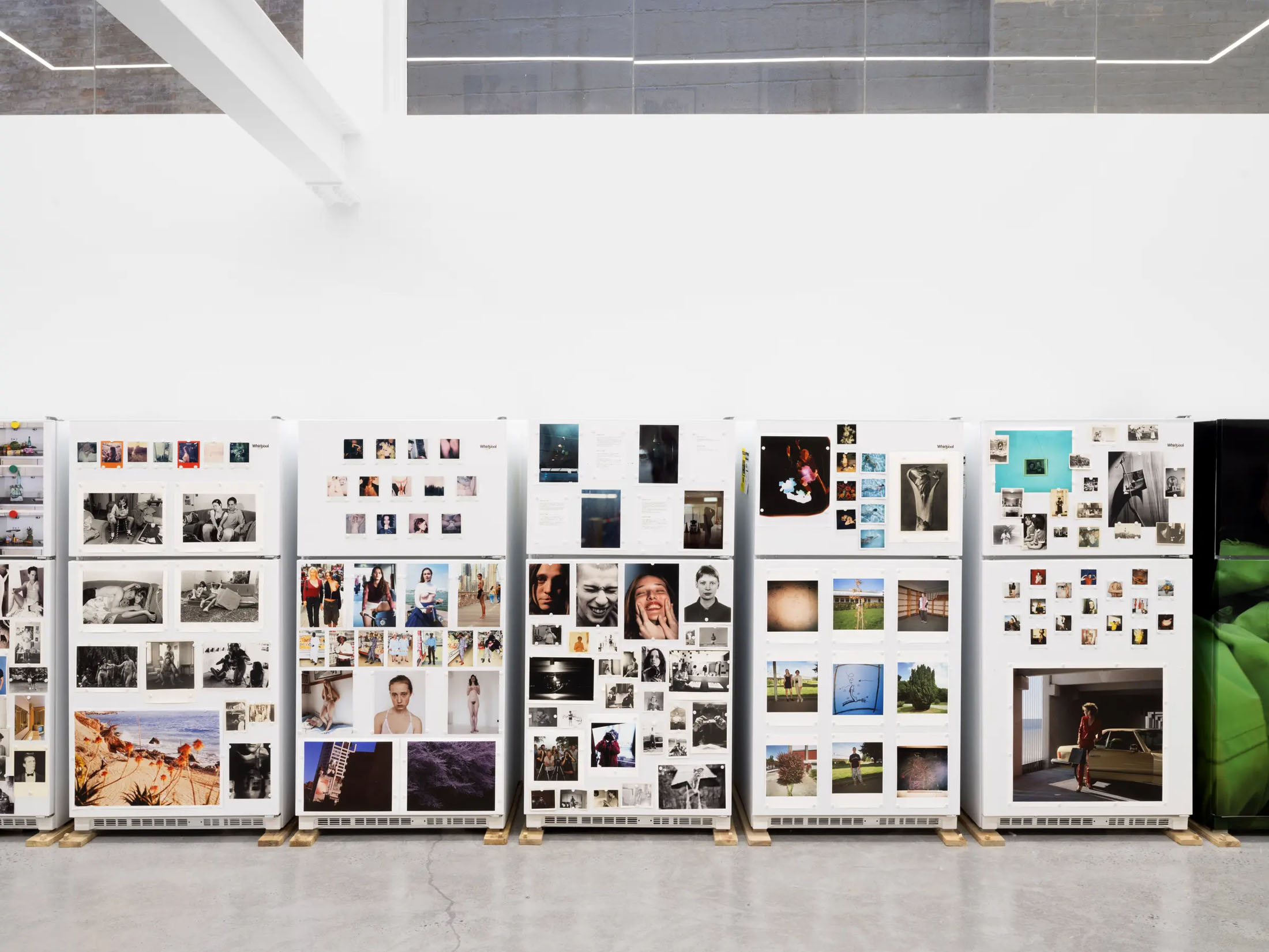 Harkawik is delighted to announce Photos on Fridges, the widely anticipated follow-up to our 2022 Works on Paper on Fridges, and our final exhibition to employ household appliances as pedestals. The refrigerator occupies a peculiar position in modern life—simultaneously indispensable and invisible, a humming presence we notice almost exclusively when it breaks down. By introducing these appliances into the gallery as apparatus of display, the space of aesthetic contemplation is superimposed onto ordinary life—each made visible through the other, neither fully stable—the white cube and the home flickering in and out of legibility. The refrigerator disrupts the gallery’s fiction of neutrality, but only long enough to notice some of traditional photography’s closely-held rules.