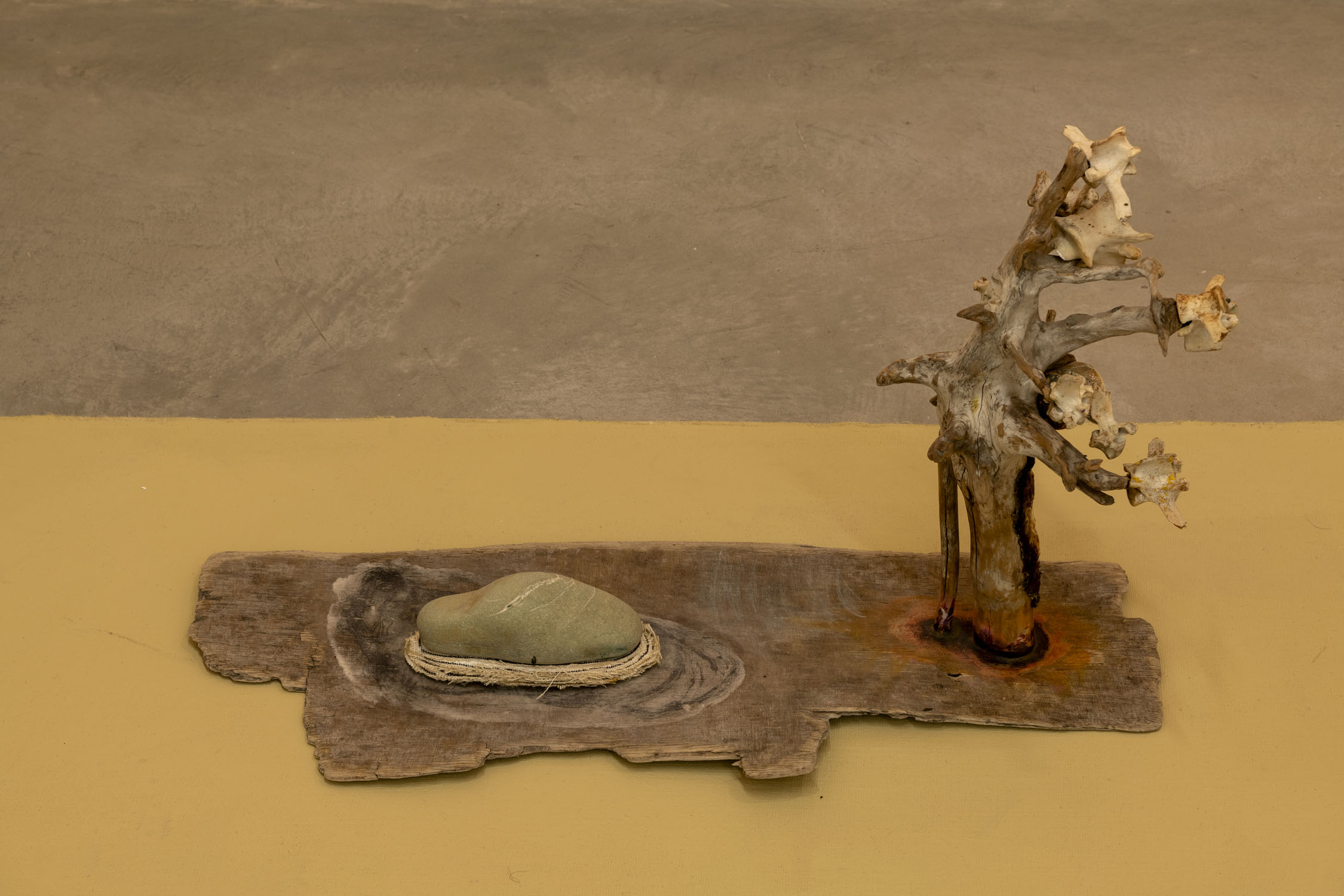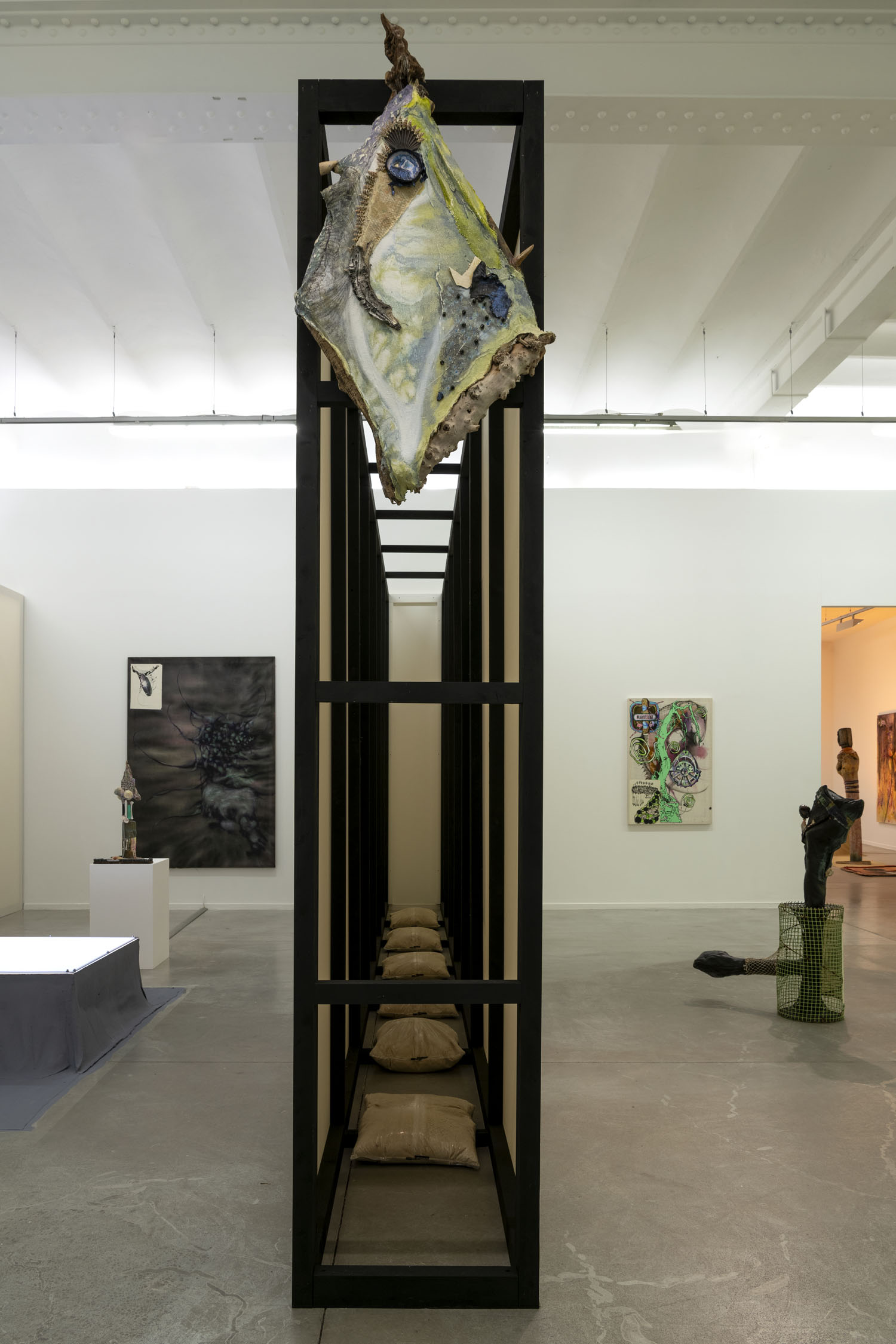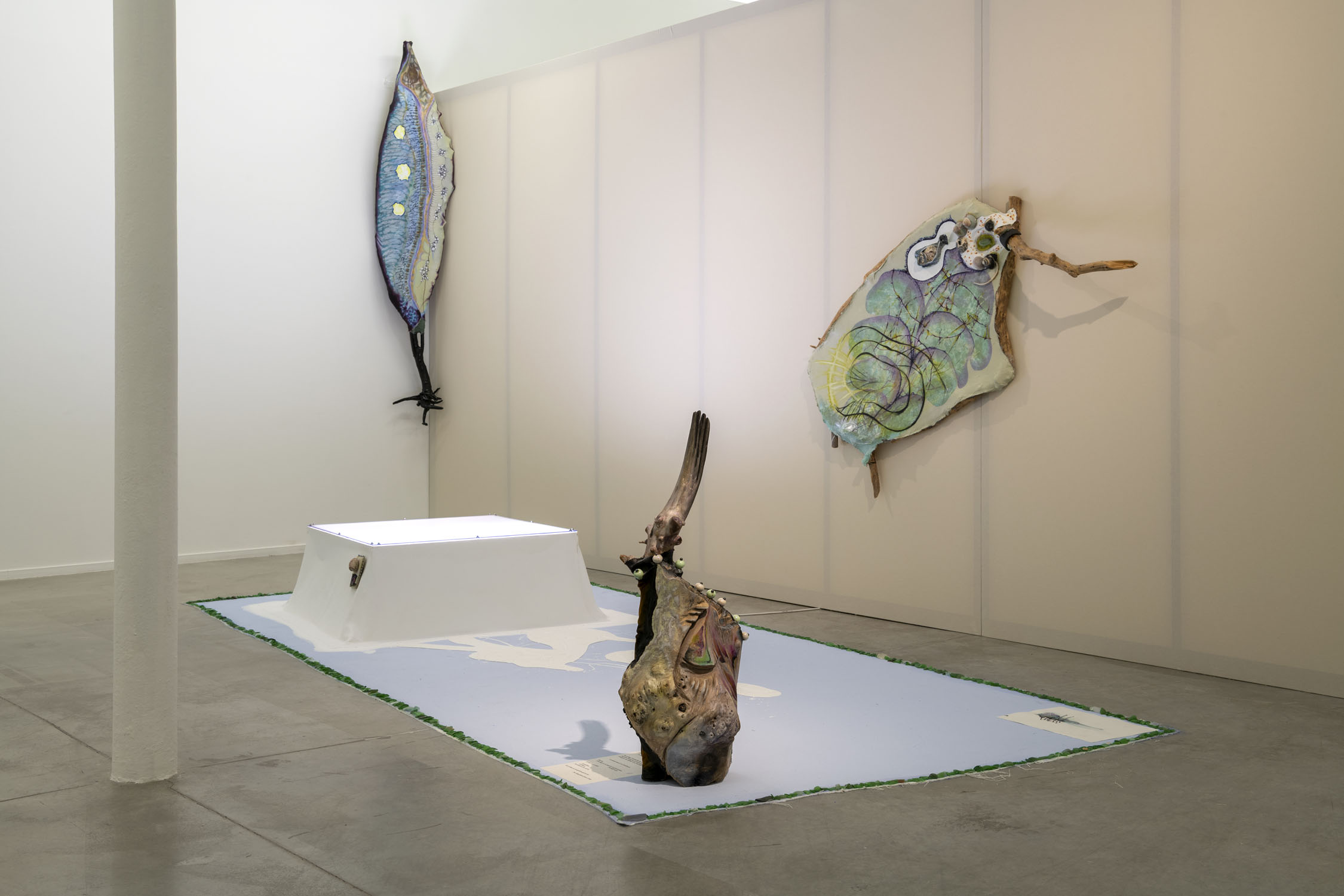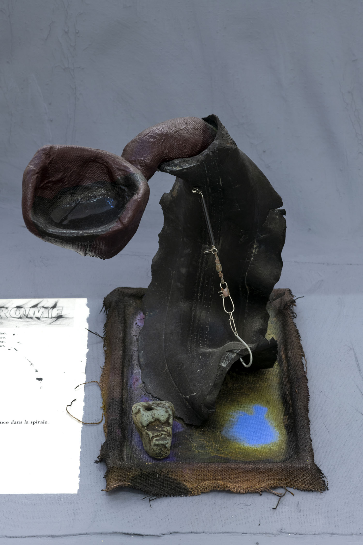 Pierre Unal-Brunet was born in 1993 in France and lives between Paris and Sète. He collects inert materials, debris, and other surpluses of the world from aqueous harvesting areas. He assembles them to form object-beings in installations combining paintings, sculptures, and ink drawings. With an approach to evolution that borders on cryptozoology, his research draws on scientific articles from ichthyology (the study of fish) and marine biology, as well as on fantasies about these harvesting grounds. The result is a science-fictional environment inhabited by composite bodies.