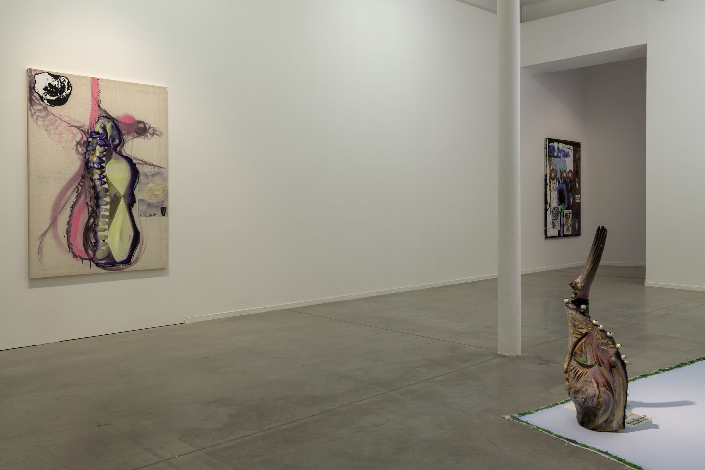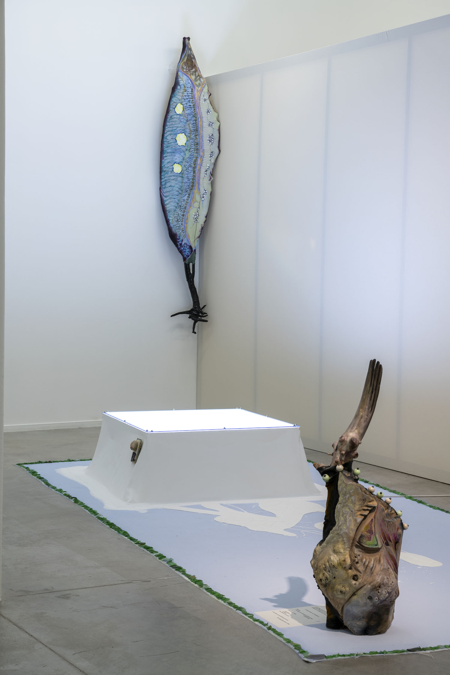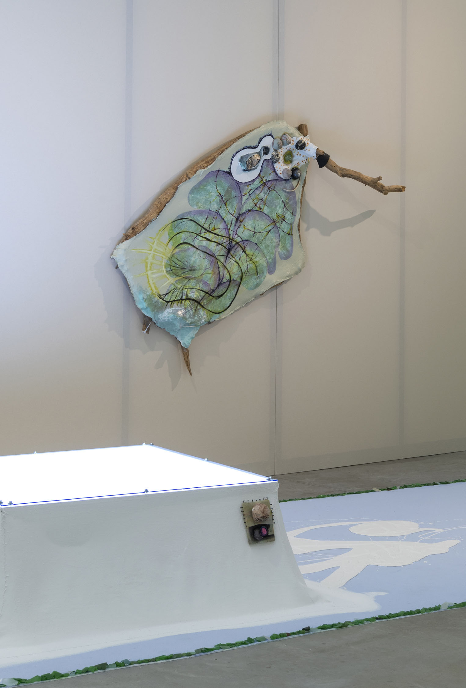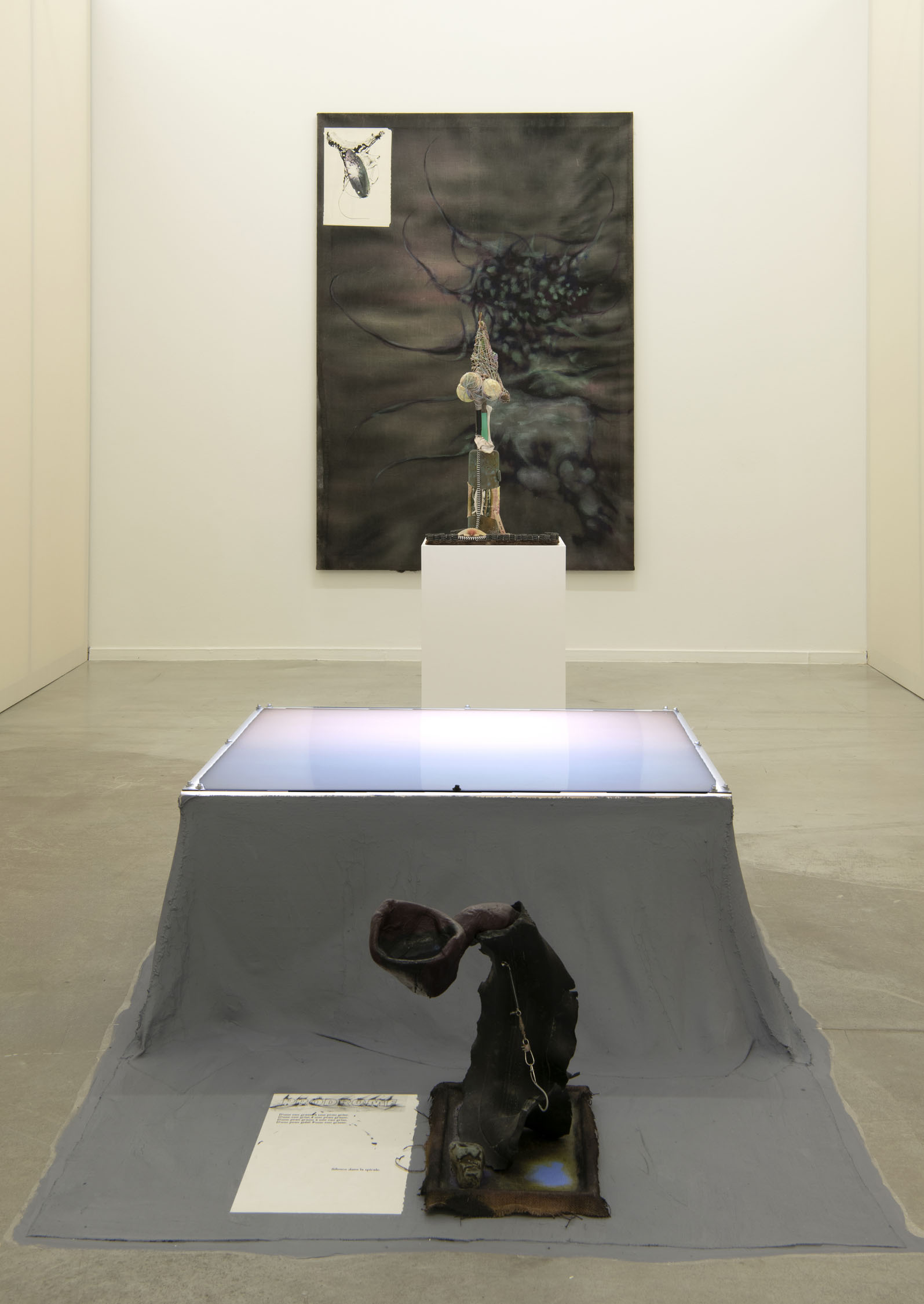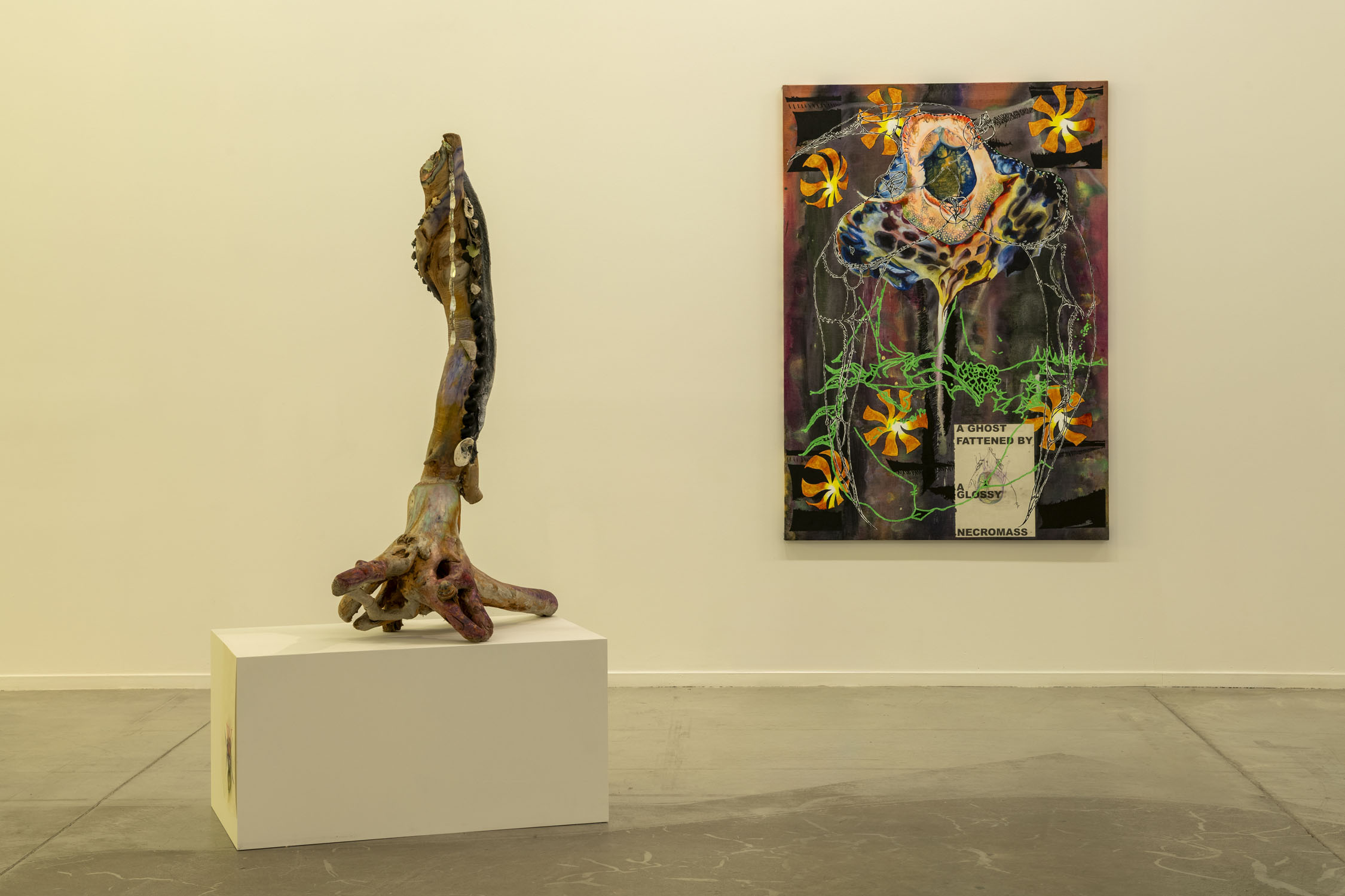 Pierre Unal-Brunet was born in 1993 in France and lives between Paris and Sète. He collects inert materials, debris, and other surpluses of the world from aqueous harvesting areas. He assembles them to form object-beings in installations combining paintings, sculptures, and ink drawings. With an approach to evolution that borders on cryptozoology, his research draws on scientific articles from ichthyology (the study of fish) and marine biology, as well as on fantasies about these harvesting grounds. The result is a science-fictional environment inhabited by composite bodies.