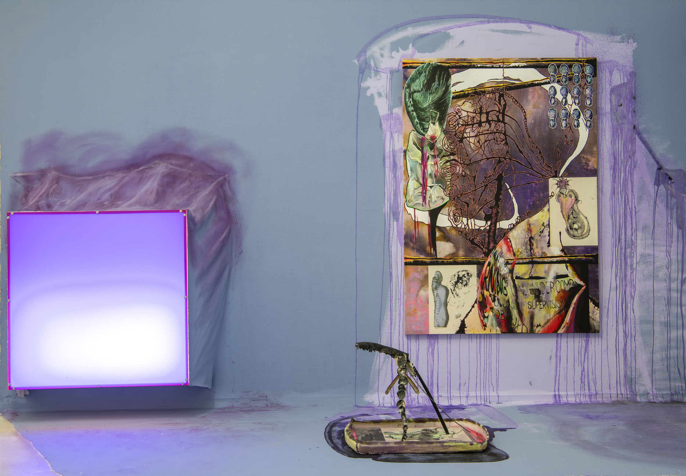 The exhibition follows this idea of gradual hypersaturation. In a spiral-like stroll through five chapters, each room is marked by a particular colorimetry, like a signal about the state of health of each of the biotopes visited. In this introspective narrative, punctuated by the poem Prodrome written by the artist, we move from crystalline calm to acid exuberance.