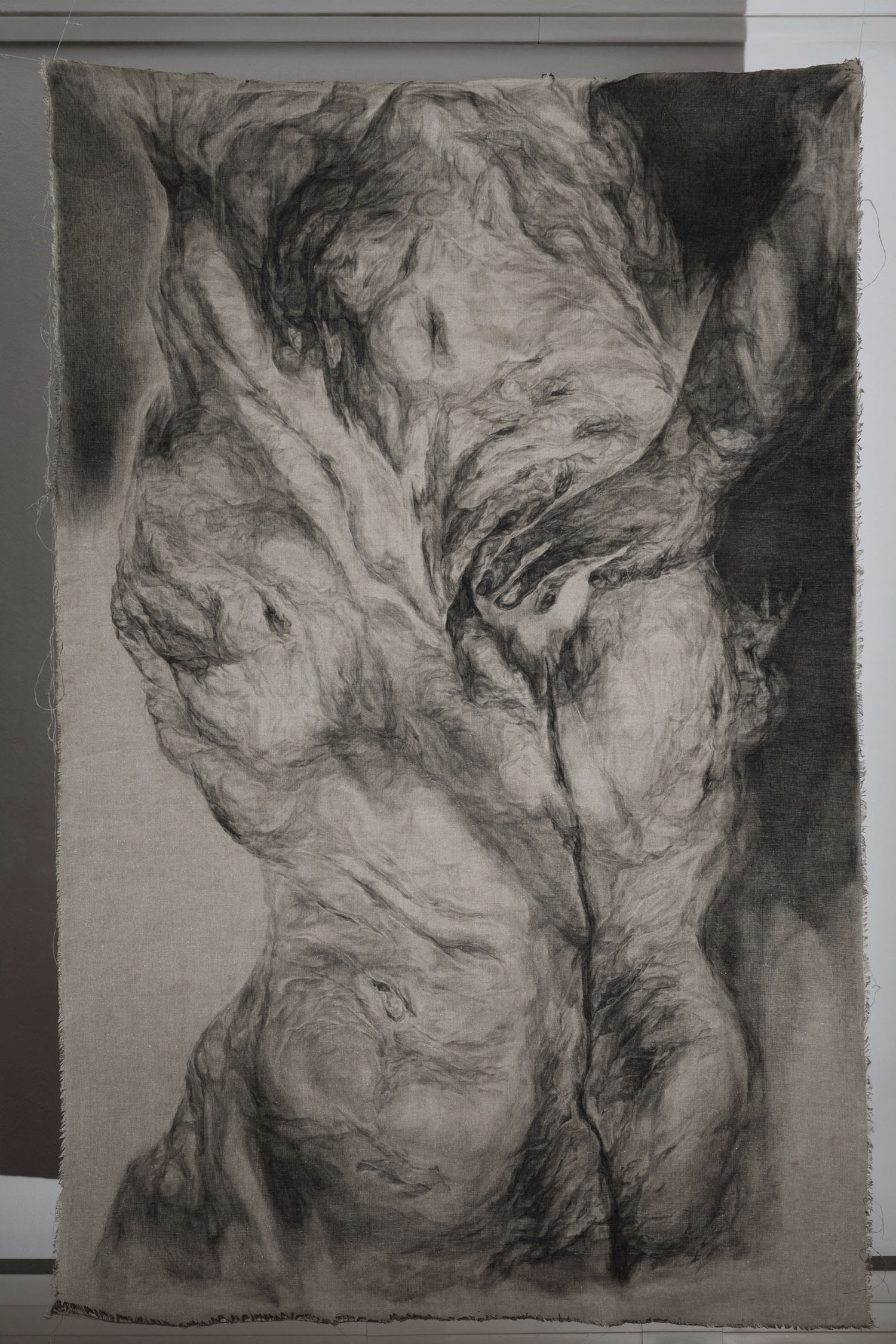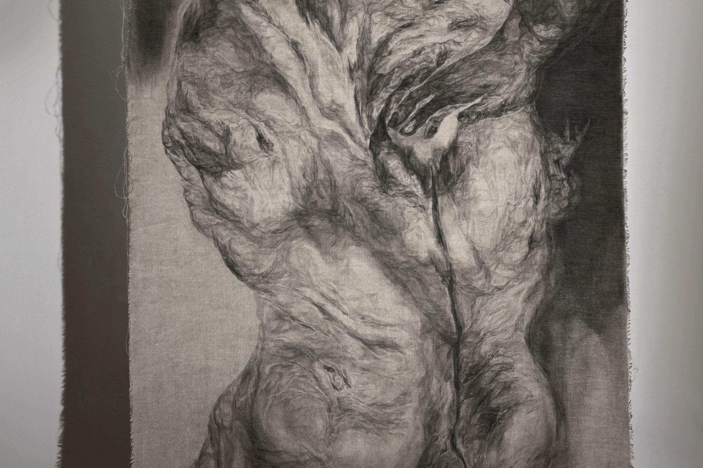 The body of the young man is held by women’s hands, his chest mirrors the deep wound that is in the heart of everyone who has not stopped feeling, everyone who has been touched by pain or is trying to understand the nature of their being through compassion for another.
