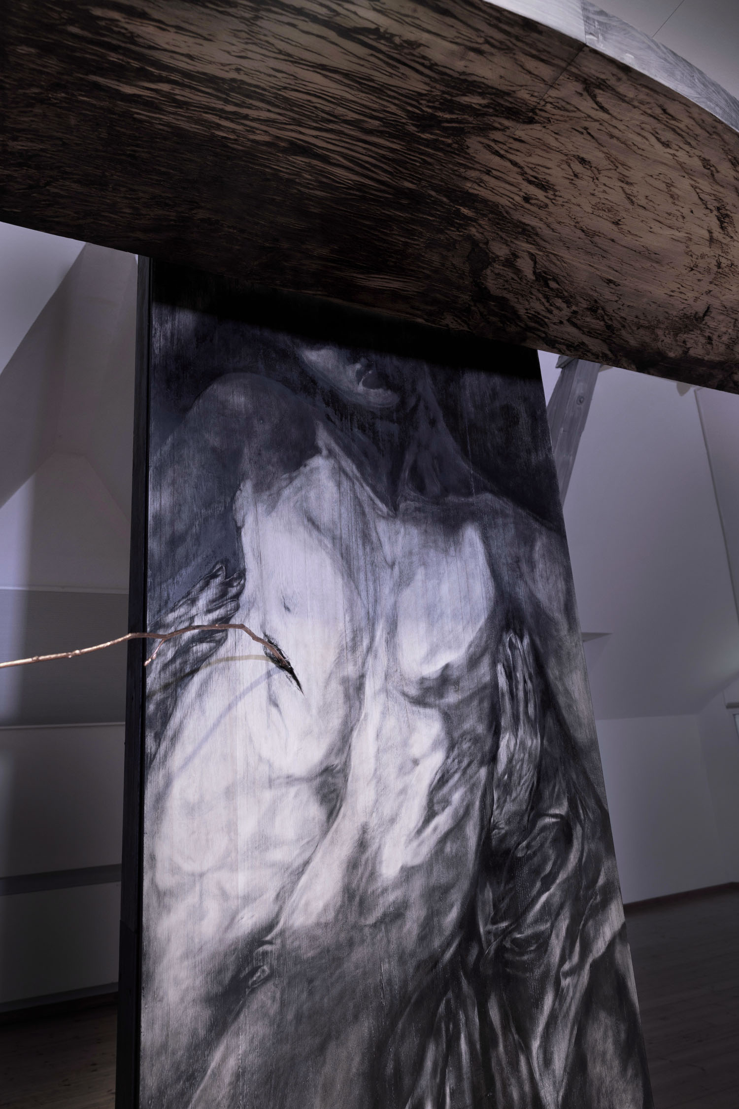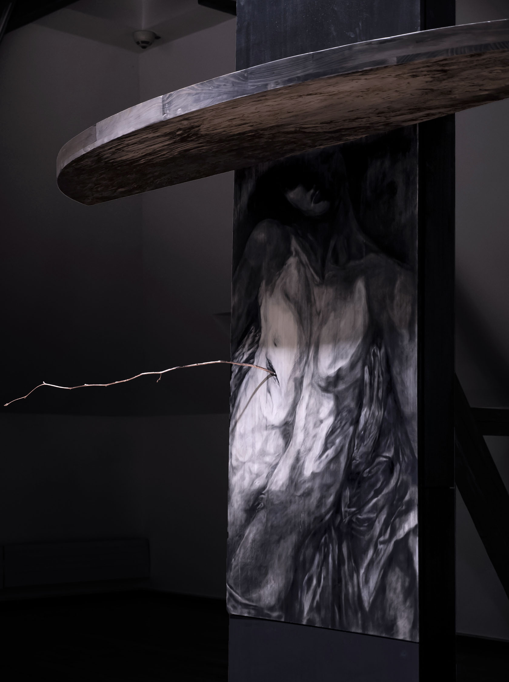 A deep wound from the wars on the united body of the world. This body in which a human merges with a tree, I think about a tree as one of the creations that can exist on earth much longer than a human, it is a fantasy about some utopian picture of the world, here each human builds his life according to the age of the tree, by two hundred and more years ahead. Is it an attempt to imagine what our future might be like? And how exactly could the world change if our perception of ourselves in it changed?