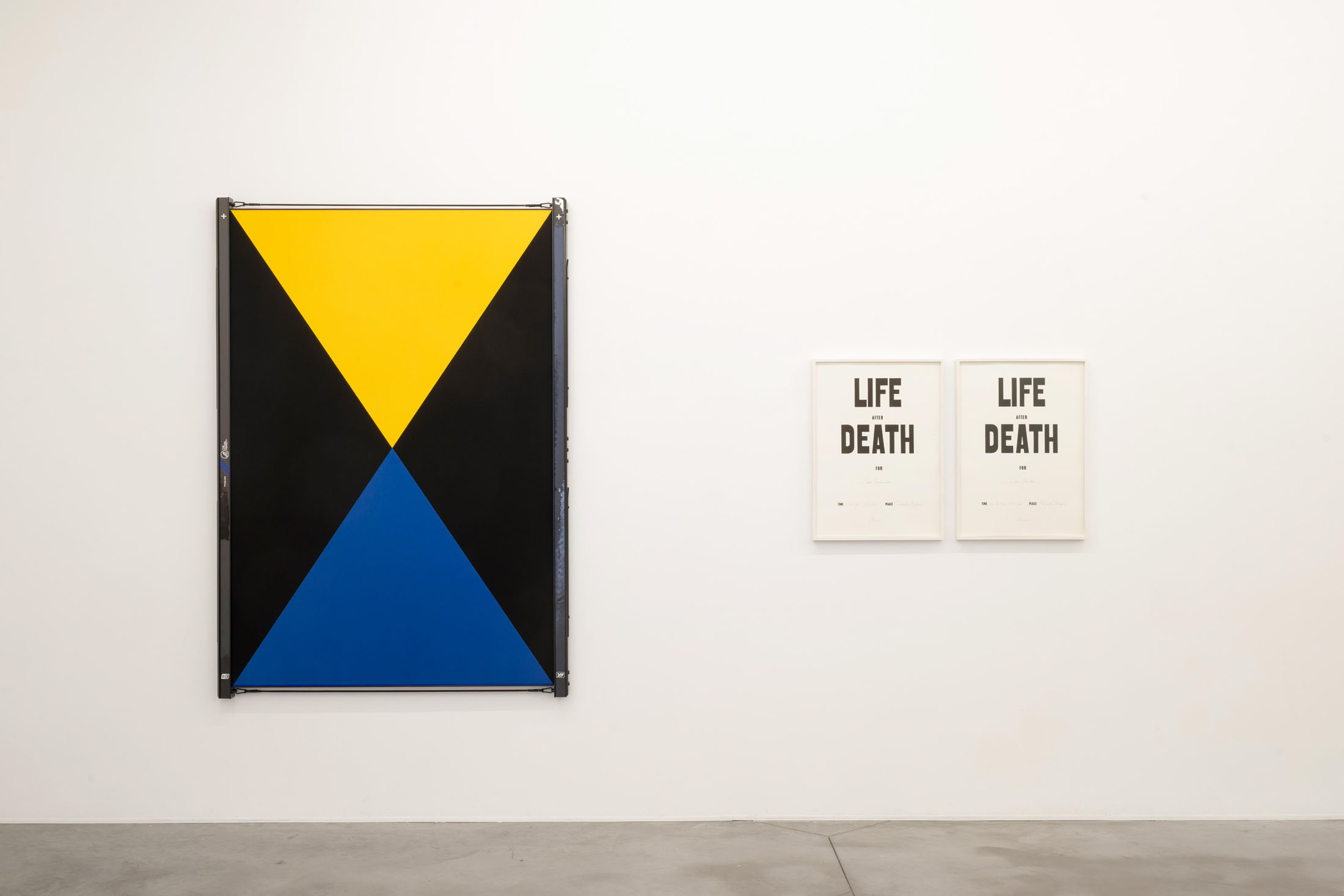 Several of my new works created for this show are about darkness moving into light. Speckled gradients of dyed fabric where black moves to blue moves to white. Solid black triangles sailing up the wall with their glowing yellow counterparts. Too much time alone in the studio gets you thinking about death. But nothing can prepare you for the blistering rays of hope. Joost and Siska grasp this with both hands. They acknowledge the spectrum of life and I have boundless admiration for the passion and hope they bring.