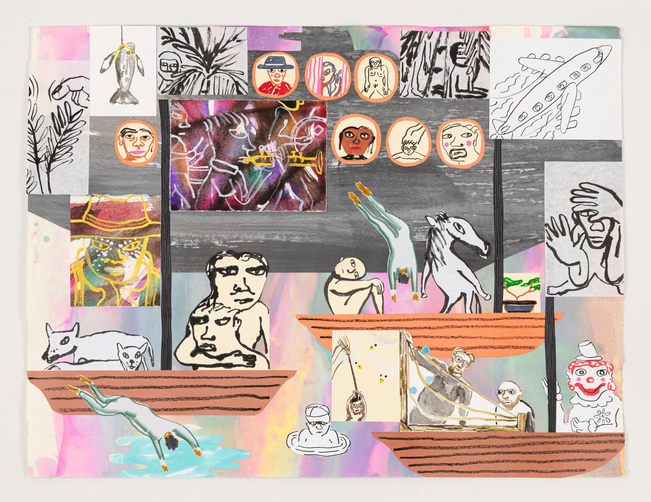 Pugay’s work emerges from his careful study of the human condition, his engagement with contemporary culture, and his acute awareness of how class, race, gender, queer life, and the digital realm intersect in the background of our lived experiences. His figurative drawings and collages call into focus the absurdities and contradictions of the everyday and the extraordinary with humor, empathy, and curiosity.