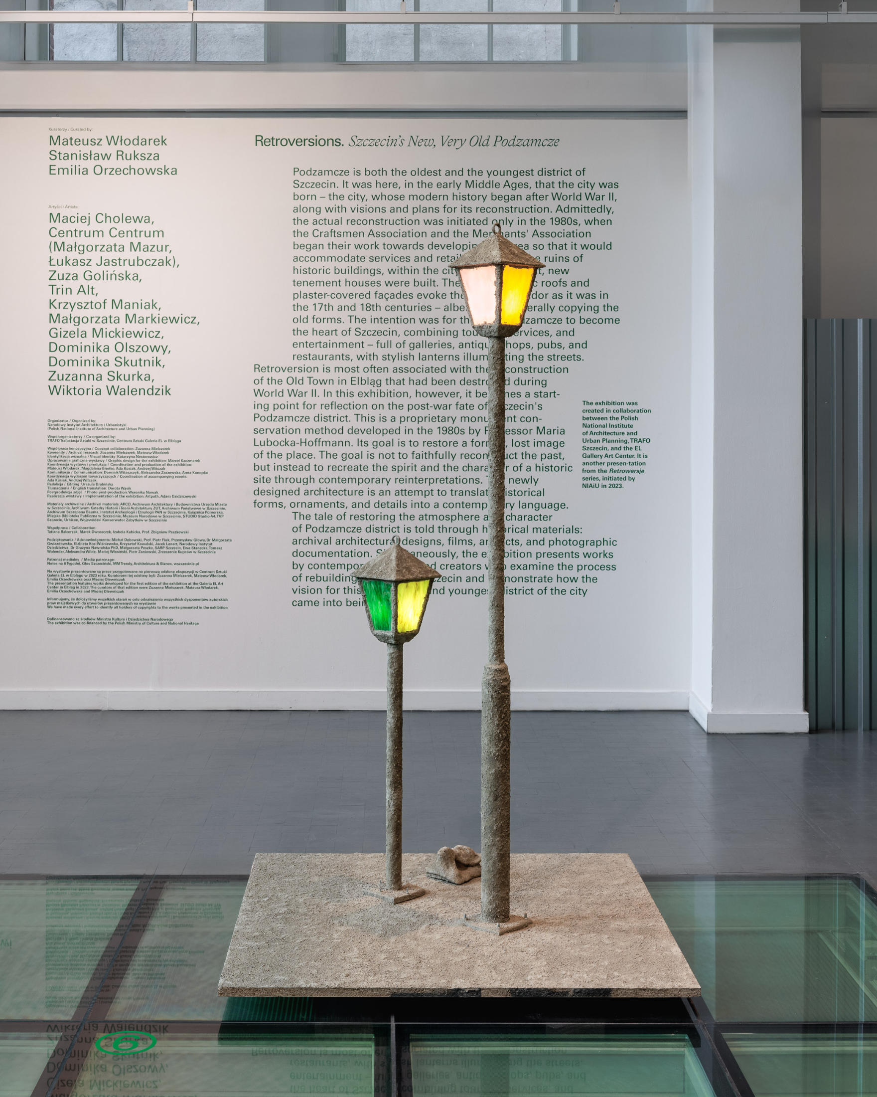 Exhibition view Retroversions. Szczecin’s New, Very Old Podzamcze, TRAFO Center for Contemporary Art in Szczecin, 30 October 2025 – 8 February 2026, Photo: Szymon Sokołowski / Archives of the National Institute of Architecture and Urban PlanningExhibition view Retroversions. Szczecin’s New, Very Old Podzamcze, TRAFO Center for Contemporary Art in Szczecin, 30 October 2025 – 8 February 2026, Photo: Szymon Sokołowski / Archives of the National Institute of Architecture and Urban PlanningExhibition view Retroversions. Szczecin’s New, Very Old Podzamcze, TRAFO Center for Contemporary Art in Szczecin, 30 October 2025 – 8 February 2026, Photo: Szymon Sokołowski / Archives of the National Institute of Architecture and Urban PlanningExhibition view Retroversions. Szczecin’s New, Very Old Podzamcze, TRAFO Center for Contemporary Art in Szczecin, 30 October 2025 – 8 February 2026, Photo: Szymon Sokołowski / Archives of the National Institute of Architecture and Urban PlanningModel of the communication solution for the Castle Route in Szczecin, The Company for the Construction of Communication Routes, 1978, Photo: Szymon Sokołowski / Archives of the National Institute of Architecture and Urban PlanningExhibition view Retroversions. Szczecin’s New, Very Old Podzamcze, TRAFO Center for Contemporary Art in Szczecin, 30 October 2025 – 8 February 2026, Photo: Szymon Sokołowski / Archives of the National Institute of Architecture and Urban PlanningGizela Mickiewicz, A Place with a View of Time, 2025, sculpture, Photo: Szymon Sokołowski / Archives of the National Institute of Architecture and Urban PlanningDominika Olszowy, A Lamp with a Soul, 2025, installation, Photo: Szymon Sokołowski / Archives of the National Institute of Architecture and Urban PlanningExhibition view Retroversions. Szczecin’s New, Very Old Podzamcze, TRAFO Center for Contemporary Art in Szczecin, 30 October 2025 – 8 February 2026, Photo: Szymon Sokołowski / Archives of the National Institute of Architecture and Urban PlanningExhibition view Retroversions. Szczecin’s New, Very Old Podzamcze, TRAFO Center for Contemporary Art in Szczecin, 30 October 2025 – 8 February 2026, Photo: Szymon Sokołowski / Archives of the National Institute of Architecture and Urban PlanningExhibition view Retroversions. Szczecin’s New, Very Old Podzamcze, TRAFO Center for Contemporary Art in Szczecin, 30 October 2025 – 8 February 2026, Photo: Szymon Sokołowski / Archives of the National Institute of Architecture and Urban PlanningDominika Olszowy, A Lamp with a Soul, 2025, installation, Photo: Szymon Sokołowski / Archives of the National Institute of Architecture and Urban PlanningDominika Olszowy, A Lamp with a Soul, 2025, installation, Photo: Szymon Sokołowski / Archives of the National Institute of Architecture and Urban PlanningDominika Olszowy, A Lamp with a Soul, 2025, installation, Photo: Szymon Sokołowski / Archives of the National Institute of Architecture and Urban PlanningWiktoria Walendzik, A Little Chamber, 2025, sculpture, Photo: Szymon Sokołowski / Archives of the National Institute of Architecture and Urban PlanningWiktoria Walendzik, A Little Chamber, 2025, sculpture, Photo: Szymon Sokołowski / Archives of the National Institute of Architecture and Urban PlanningWiktoria Walendzik, A Little Chamber, 2025, sculpture, Photo: Szymon Sokołowski / Archives of the National Institute of Architecture and Urban PlanningWiktoria Walendzik, A Little Chamber, 2025, sculpture, Photo: Szymon Sokołowski / Archives of the National Institute of Architecture and Urban PlanningGizela Mickiewicz, A Place with a View of Time, 2025, sculpture, Photo: Szymon Sokołowski / Archives of the National Institute of Architecture and Urban PlanningGizela Mickiewicz, A Place with a View of Time, 2025, sculpture, Photo: Szymon Sokołowski / Archives of the National Institute of Architecture and Urban PlanningZuzanna Skurka, Studies on the Materiality of Podzamcze, 2025, Photo: Szymon Sokołowski / Archives of the National Institute of Architecture and Urban PlanningZuzanna Skurka, Studies on the Materiality of Podzamcze, 2025, model, Photo: Szymon Sokołowski / Archives of the National Institute of Architecture and Urban PlanningZuzanna Skurka, Studies on the Materiality of Podzamcze, 2025, model, Photo: Szymon Sokołowski / Archives of the National Institute of Architecture and Urban PlanningCentrum Centrum (Małgorzata Mazur and Łukasz Jastrubczak), NARRATOR 3: Construction Mesh, 2025, installation, Photo: Szymon Sokołowski / Archives of the National Institute of Architecture and Urban PlanningCentrum Centrum (Małgorzata Mazur and Łukasz Jastrubczak), NARRATOR 2: Water, 2025, installation, Photo: Szymon Sokołowski / Archives of the National Institute of Architecture and Urban PlanningKrzysztof Maniak, Untitled (Walks Along the Foundations), 2023, film, Photo: Szymon Sokołowski / Archives of the National Institute of Architecture and Urban PlanningKrzysztof Maniak, Untitled (Walks Along the Foundations), 2023, film, Photo: Szymon Sokołowski / Archives of the National Institute of Architecture and Urban PlanningKrzysztof Maniak, Untitled (Walks Along the Foundations), 2023, film, Photo: Szymon Sokołowski / Archives of the National Institute of Architecture and Urban PlanningMałgorzata Markiewicz, Third Skin, 2025, installation, Photo: Szymon Sokołowski / Archives of the National Institute of Architecture and Urban PlanningMałgorzata Markiewicz, Third Skin, 2025, installation, Photo: Szymon Sokołowski / Archives of the National Institute of Architecture and Urban PlanningMałgorzata Markiewicz, Third Skin, 2025, installation, Photo: Szymon Sokołowski / Archives of the National Institute of Architecture and Urban Planning