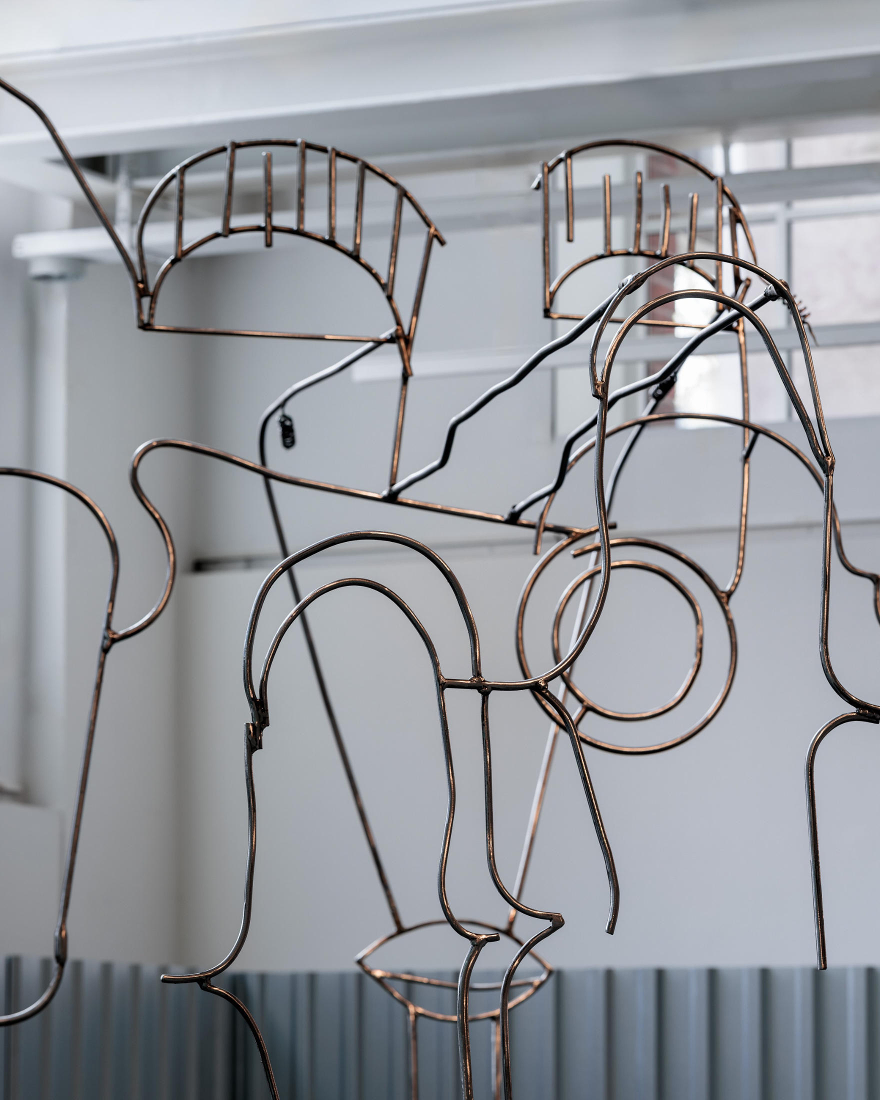The installation by Centrum Centrum (Małgorzata Mazur and Łukasz Jastrubczak) consists of three narrators: sand, water, and construction mesh. Their voices intersect like static – echoes of administrative decisions, residents’ testimonies, investor loans, and fragments of newspaper sentences. The conversation breaks, loops, and disperses in space like dust. The installation listens for voices, capturing the tensions between matter and memory, between building and forgetting.