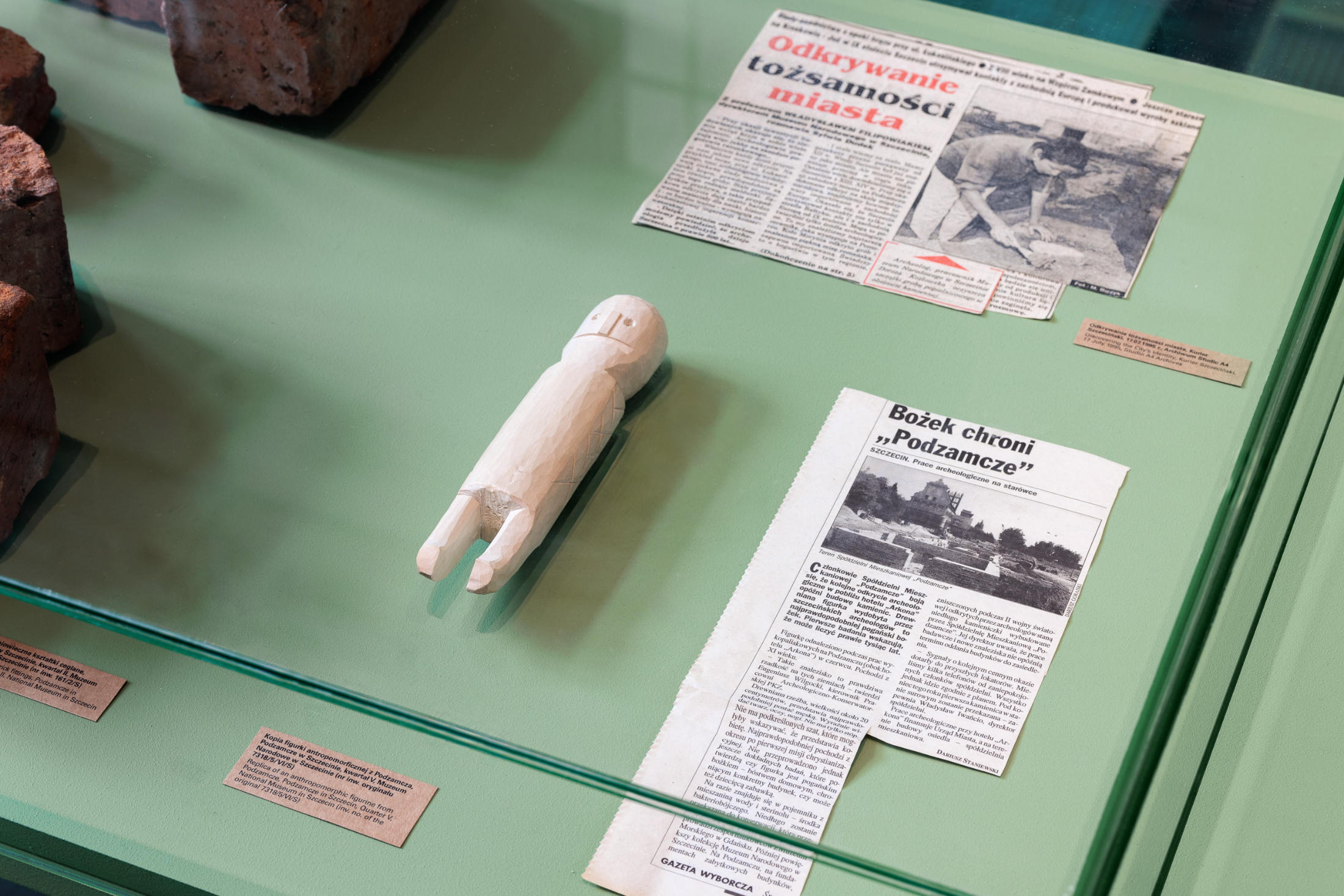 The exhibition tells the story – that is, the process of restoring the atmosphere and character of Podzamcze – through archival architectural designs, films, artifacts, and photographic documentation, which are juxtaposed against original works by contemporary artists. In other words, it combines historical materials with contemporary interpretations, in a dialogue between past and present. The featured artworks demonstrate different ways of engaging with a place whose new architecture emerges at the intersection of memory, materiality, and design.