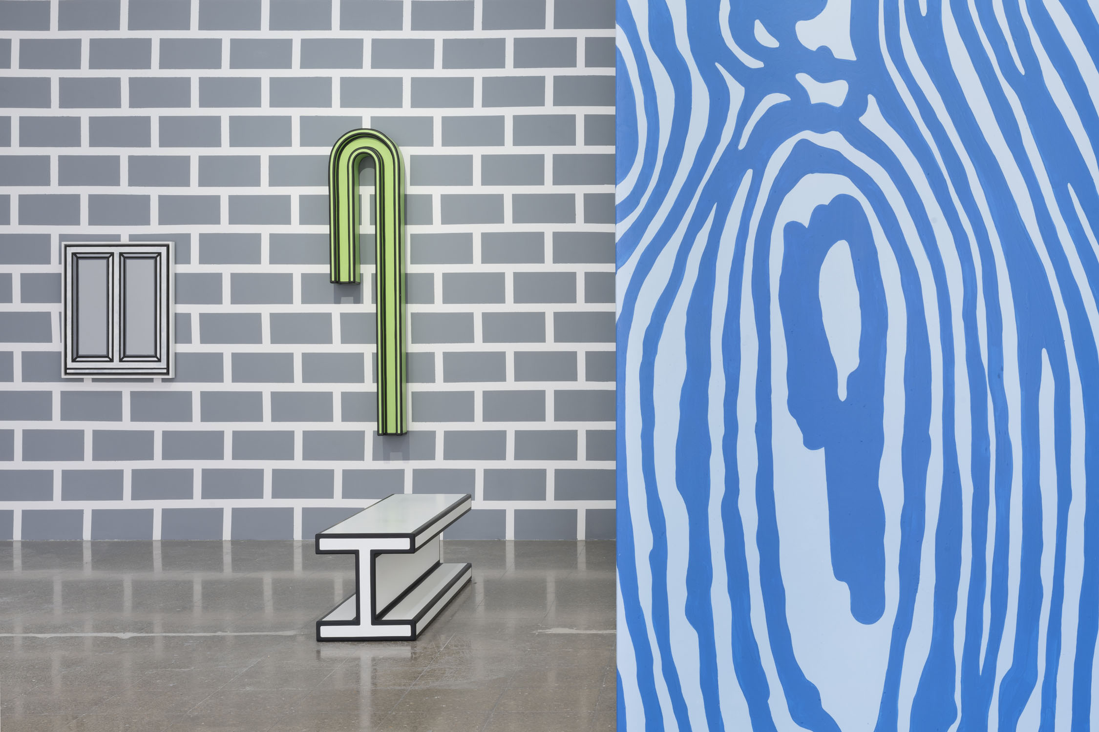 On the one hand, Richard Woods uses an aesthetic based on geometric patterns and the repetition of forms that evoke popular architecture, transforming common surfaces into playful and reflective expressions. His use of vibrant colors and the distortion of visual patterns with references to Pop Art and Minimalism place his work between the ornamental and the structural. Woods’ works, loaded with an ironic sense of humor, challenge our perception of the function of objects and the space we inhabit, taking architectural functionality to a new artistic dimension.