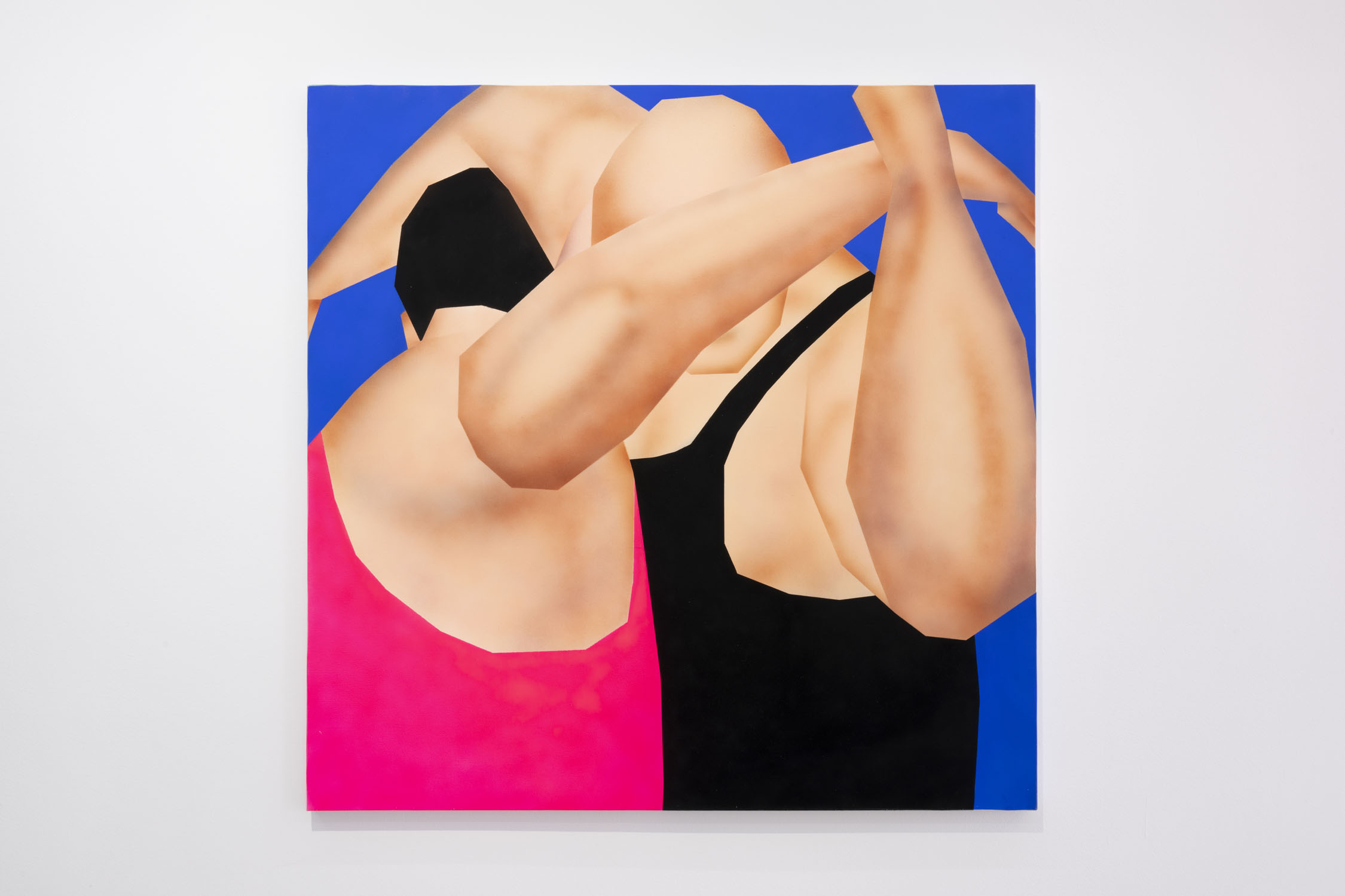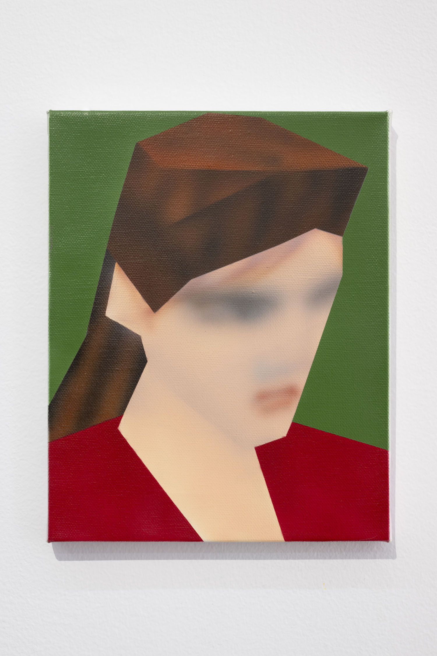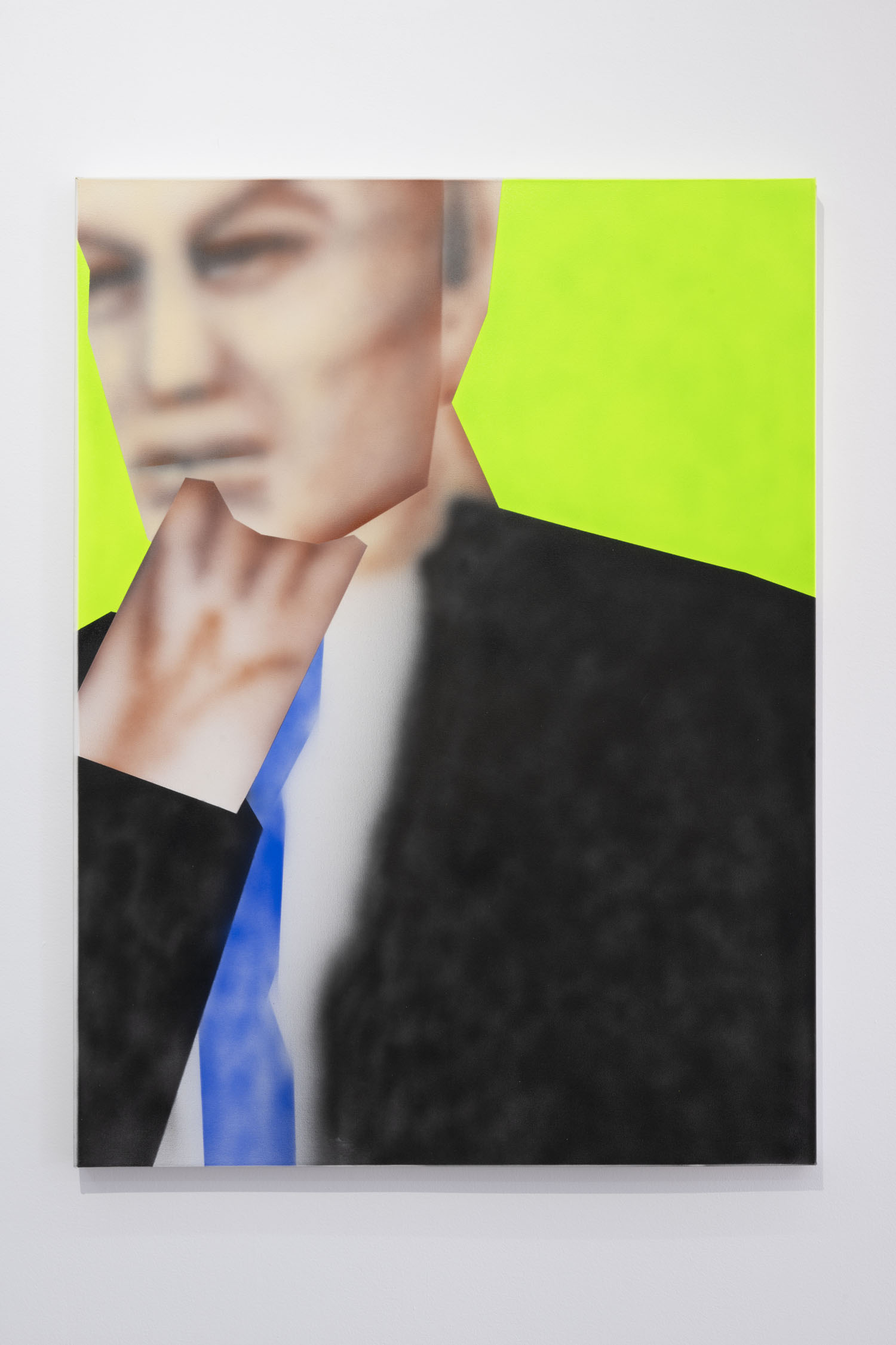 On the other hand, Gao Hang’s work is influenced by his years of classical painting studies and his contemporary, critical and experimental vision. The artist’s fascination with the culture of video games and digital graphics is made visible through the use of bright colours and the technique of airbrushing. The work “Let me think”, for example, portrays an anti-classic figure positioning, with the face being pushed to the edge, to imply a movement in video gaming where you can always move your screen to adjust this figure back to classic composition: to the center.