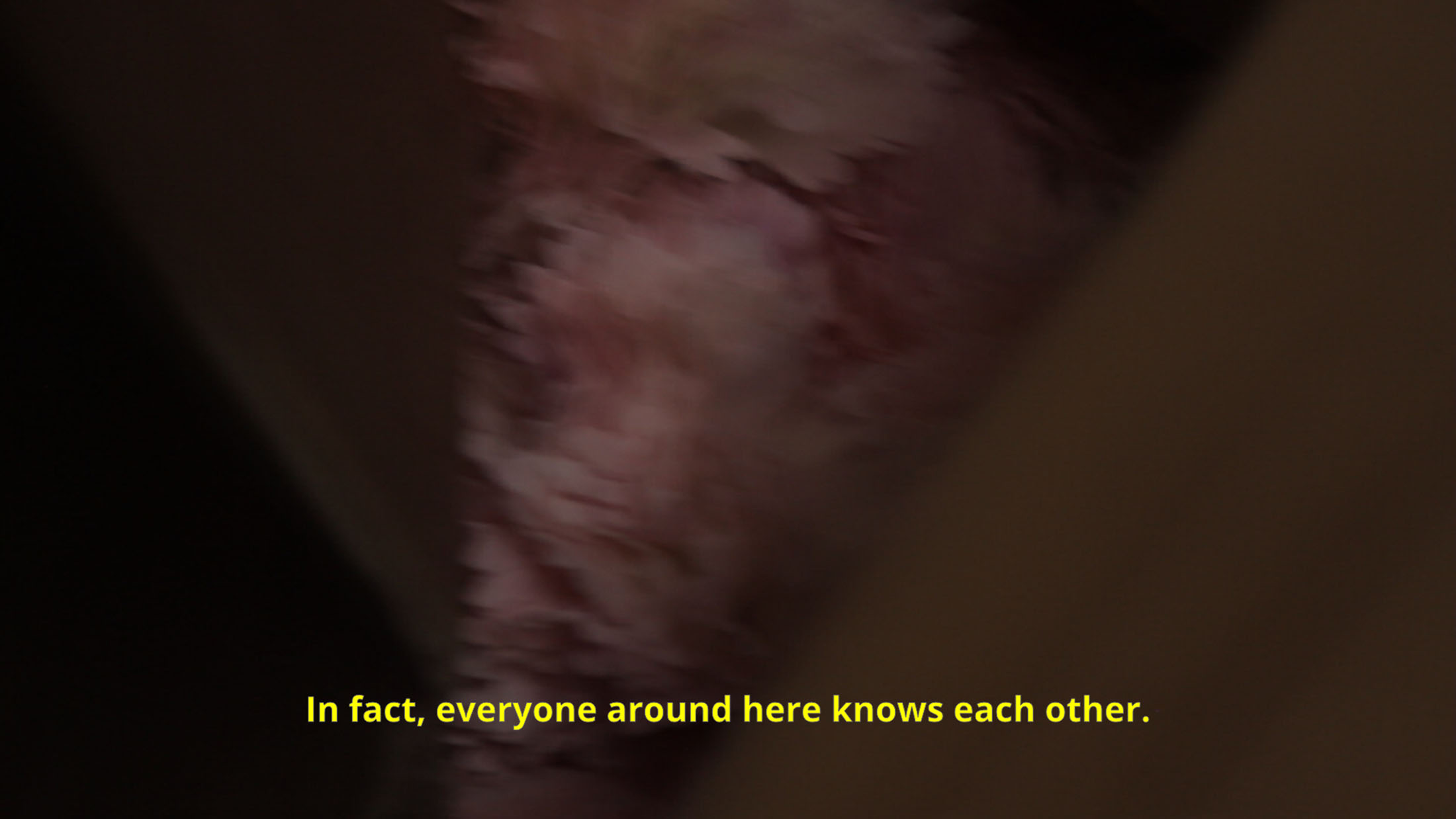 The camera, too, moves through and produces space, turning towards, dividing, excluding, and focusing. Again, out of spatial conditions—now those of seeing and being seen, or remaining invisible—relations emerge. The camera doesn’t always wield power here. It can empower, evaluate, preserve or protect what it sees; but first and foremost, it exposes, bringing its subject to light. Through the lens, the gaze is in search of something. It both seeks and produces luoghi sensibili—sensitive places. It experiences shame. Looking creates vulnerability, documentation shows what is temporary, and movement lends a poor image a frame. There is something to be seen in dazzling light, in deliberate shadows, in the bleed. What was on the periphery shifts to the centre. “Where exactly shall we meet?” It is simply a question of perspective, of position, of the triangulation of gazes, of infrastructure.