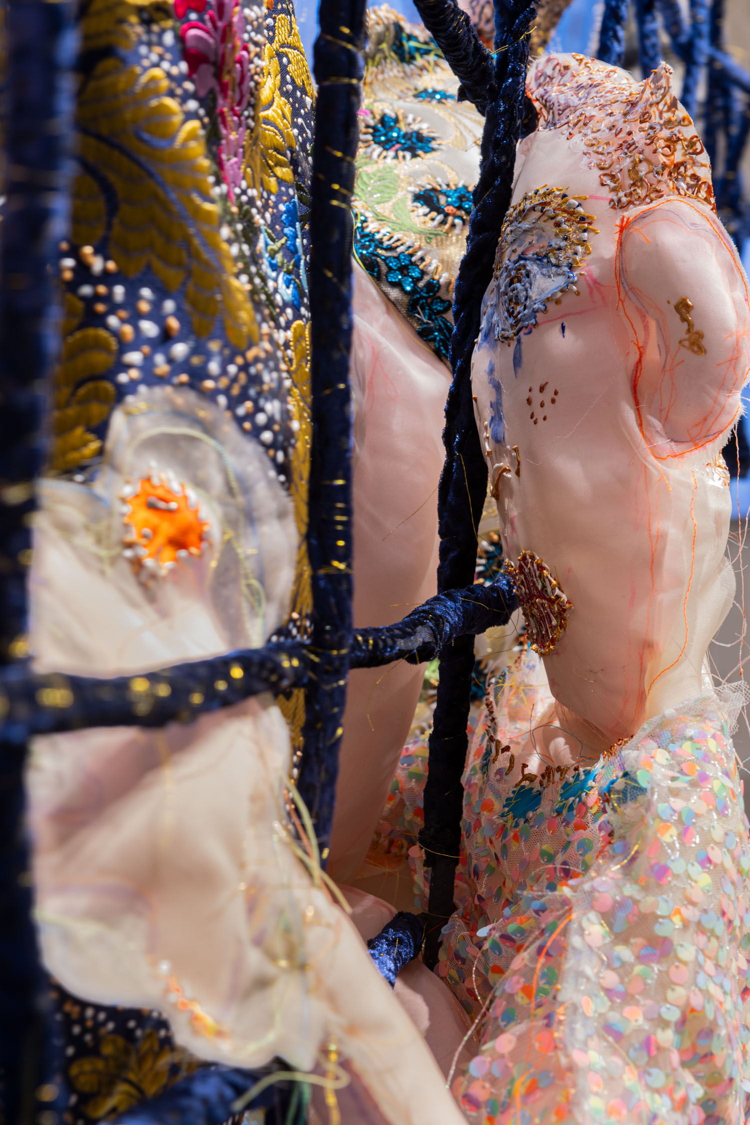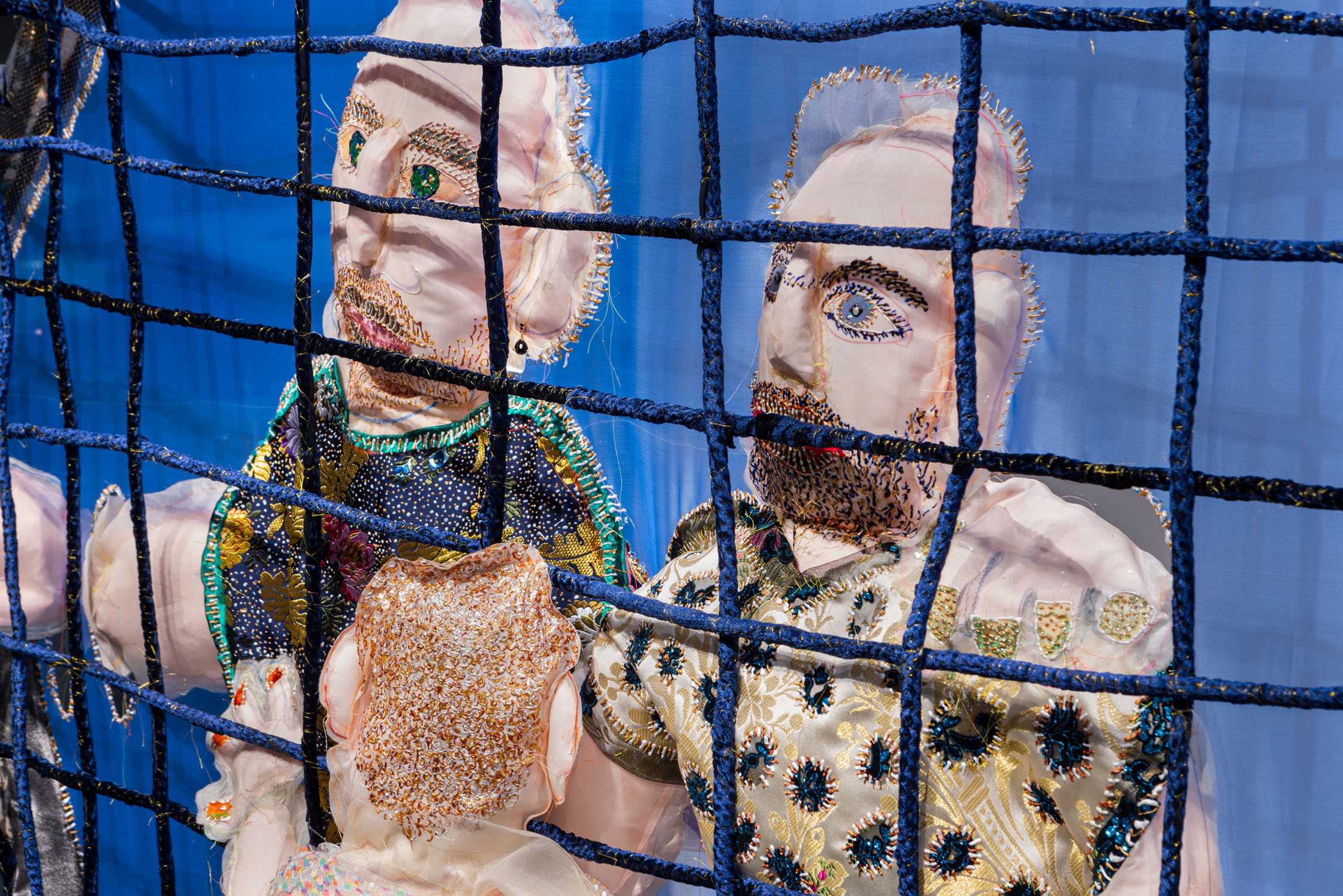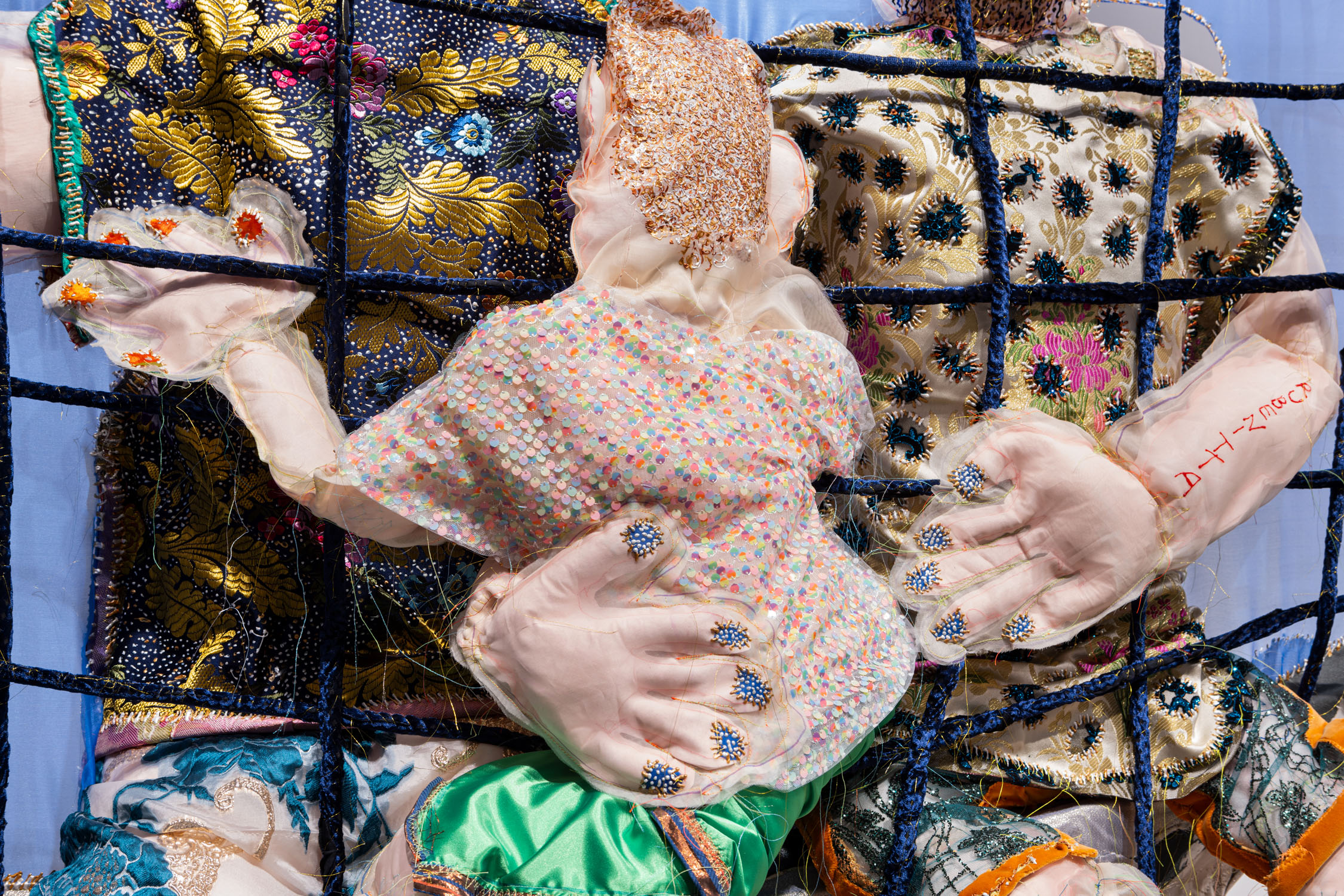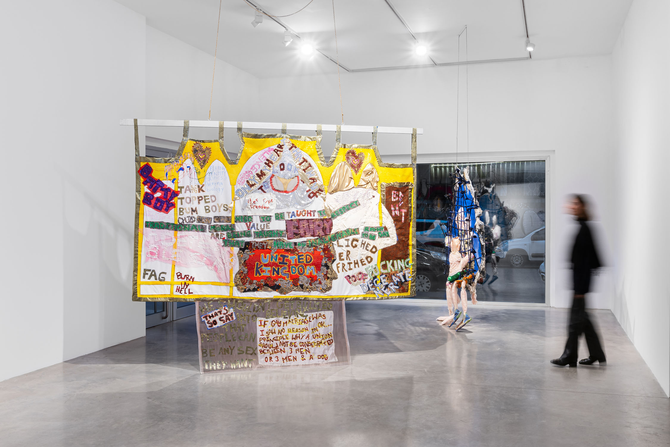 Through a vivid polytheism of fabrics sewn by multiple hands – a powerful metaphor for collaboration, collectivity, memory and continuity – Ruben Montini wants to explore human relationships, the construction of a collective meaning and the interaction between individuality and broader community. By weaving together colours, materials, images, words, slogans of denunciation or of awareness, his art explores the interconnection of opposites and suggests that every aspect of human life is intrinsically linked to the other.