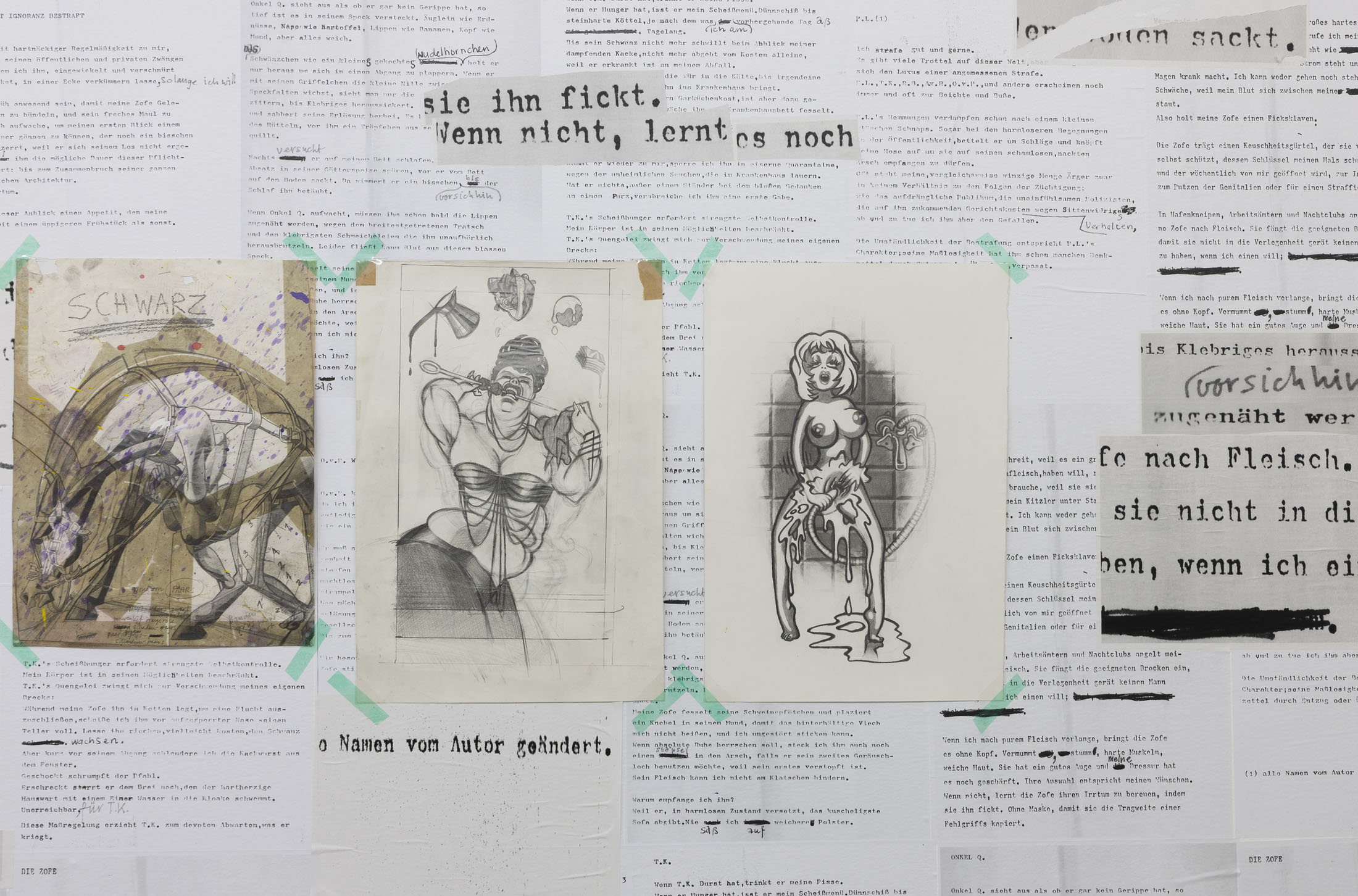 The Depressiva Revolutions combines parts of the Depressiva trilogy with “low-tech” animations from the late 1990s, to which the Berlin band Stereo Total composed the soundtrack. Other parts of the exhibition are screen prints and drawings created from the 1990s to the 2000s, in which van der Linden deals with pornography, fetish and sex work. The former student of the Amsterdam Rietveld Academie combines influences from Constructivism, the Russian avant-garde and Art Nouveau with the aesthetics of acid art and psychedelic posters. This combination of strictly formal, modern and pop-cultural influences can also be found in abstract drawings and prints that are reminiscent of calligraphy and notation and could also be inspired by Disney’s Fantasia, post-war abstraction or Sixties graphics.